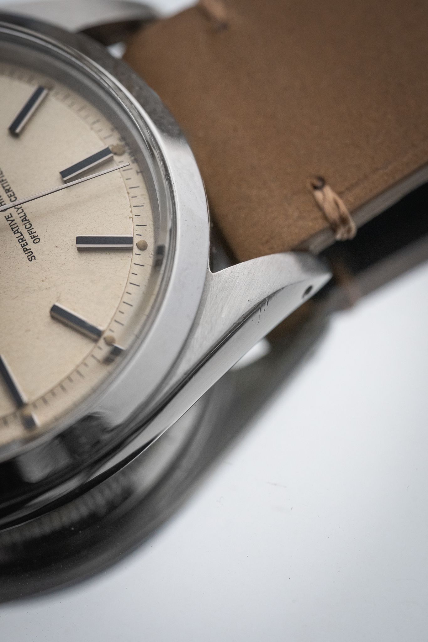 The serial begins with 21xxxx dating this watch to late 1969. The caseback is correctly marked 69.