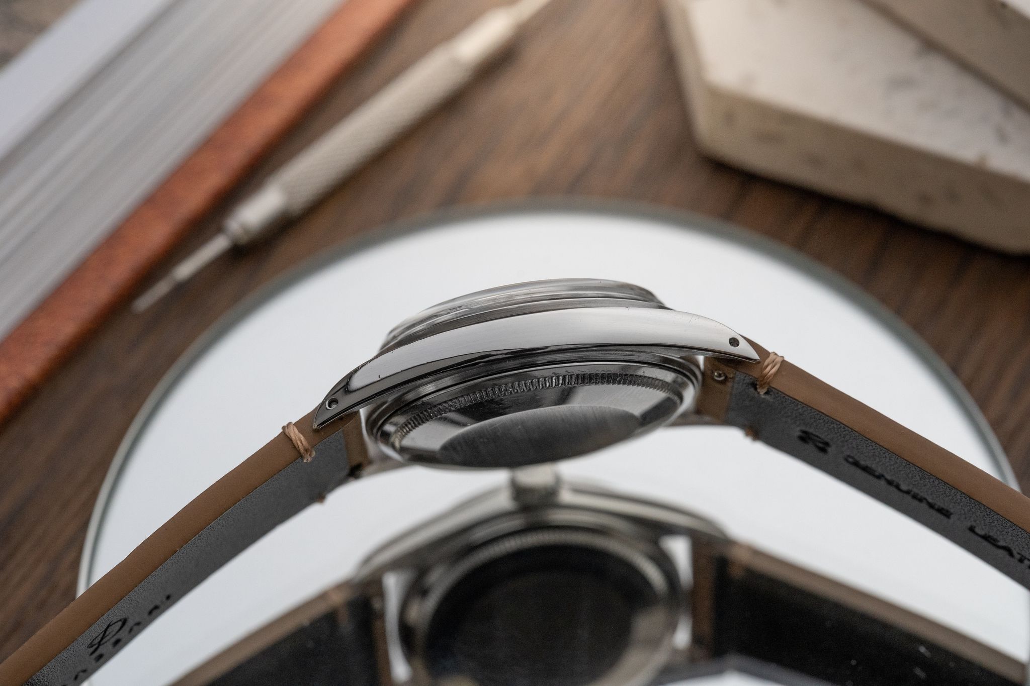 Case: 36 mm stainless steel case which has been polished by our watchmaker back to factory Rolex condition. The lugs are nice and thick