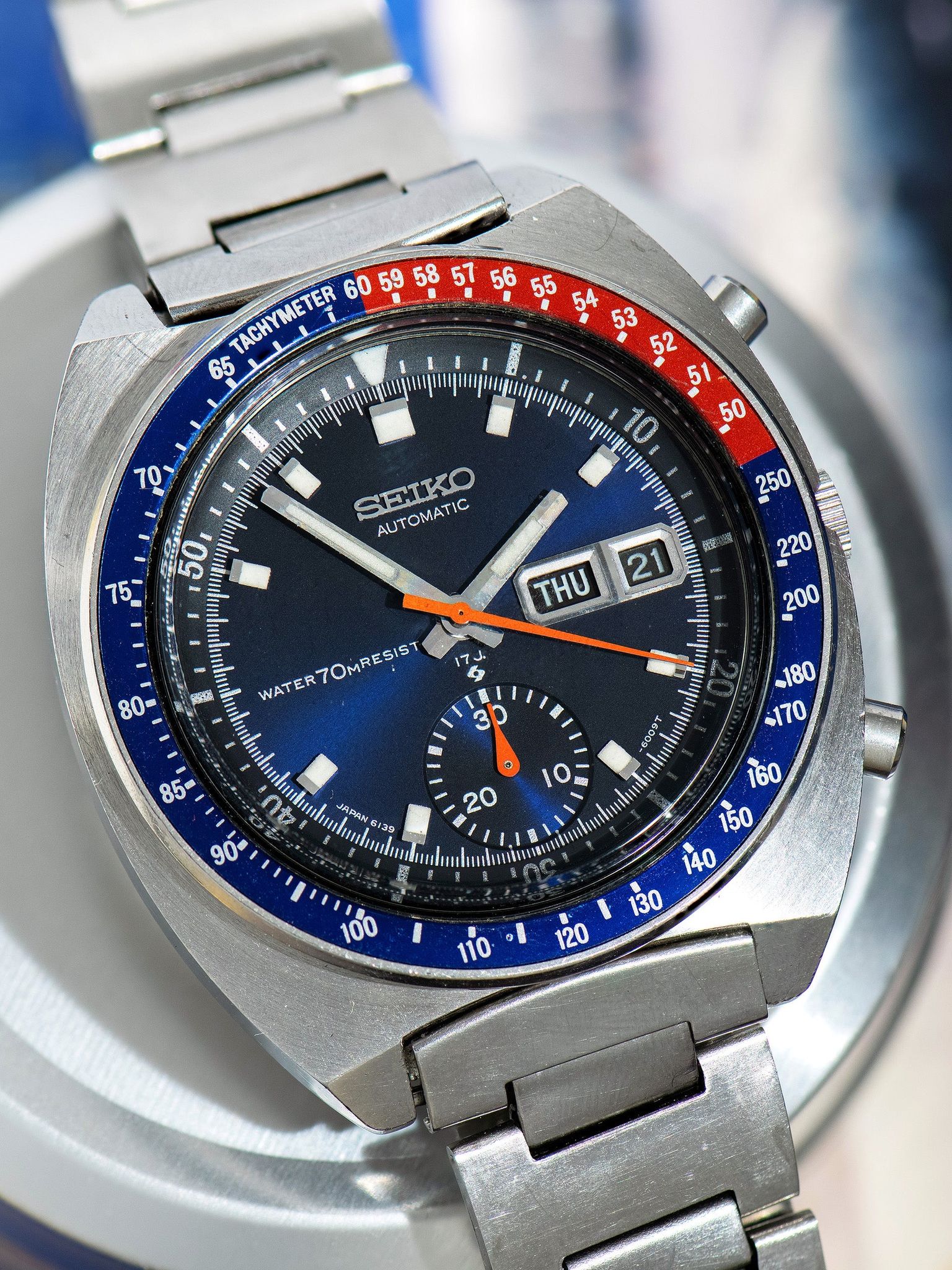 This rare "notch-case" model is in remarkable condition, with its deep blue dial, rich "Pepsi" bezel, and original stainless steel bracelet. You'd never know it's over 50 years old just by looking at it – so, here's to another 50 with one of the coolest watches Seiko has ever made.