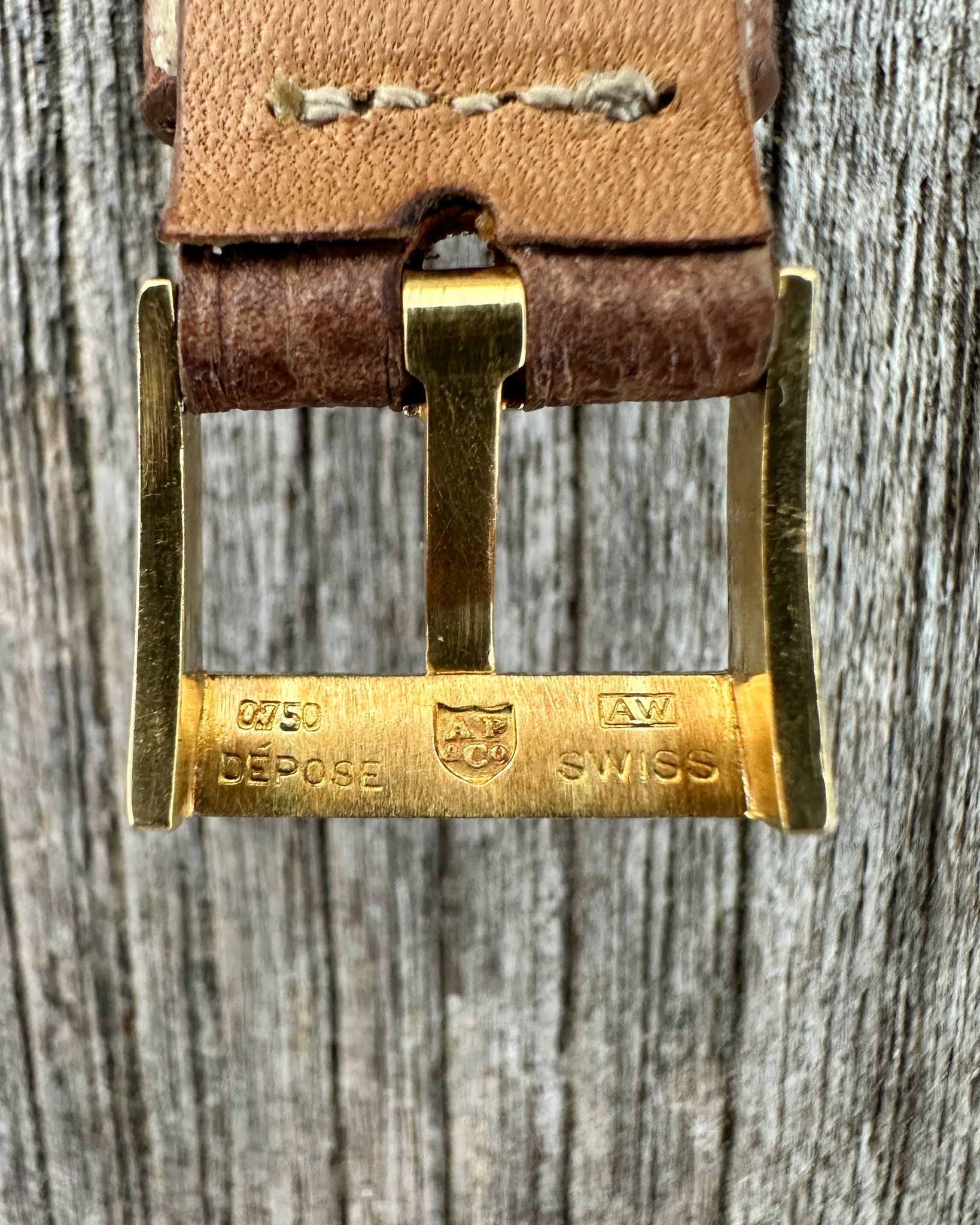 Overall the AP remains in excellent vintage condition, and is a wonderful well preserved example of a seldom seen yellow gold vintage AP Tonneau Extra Thin Dress Watch on strap.
