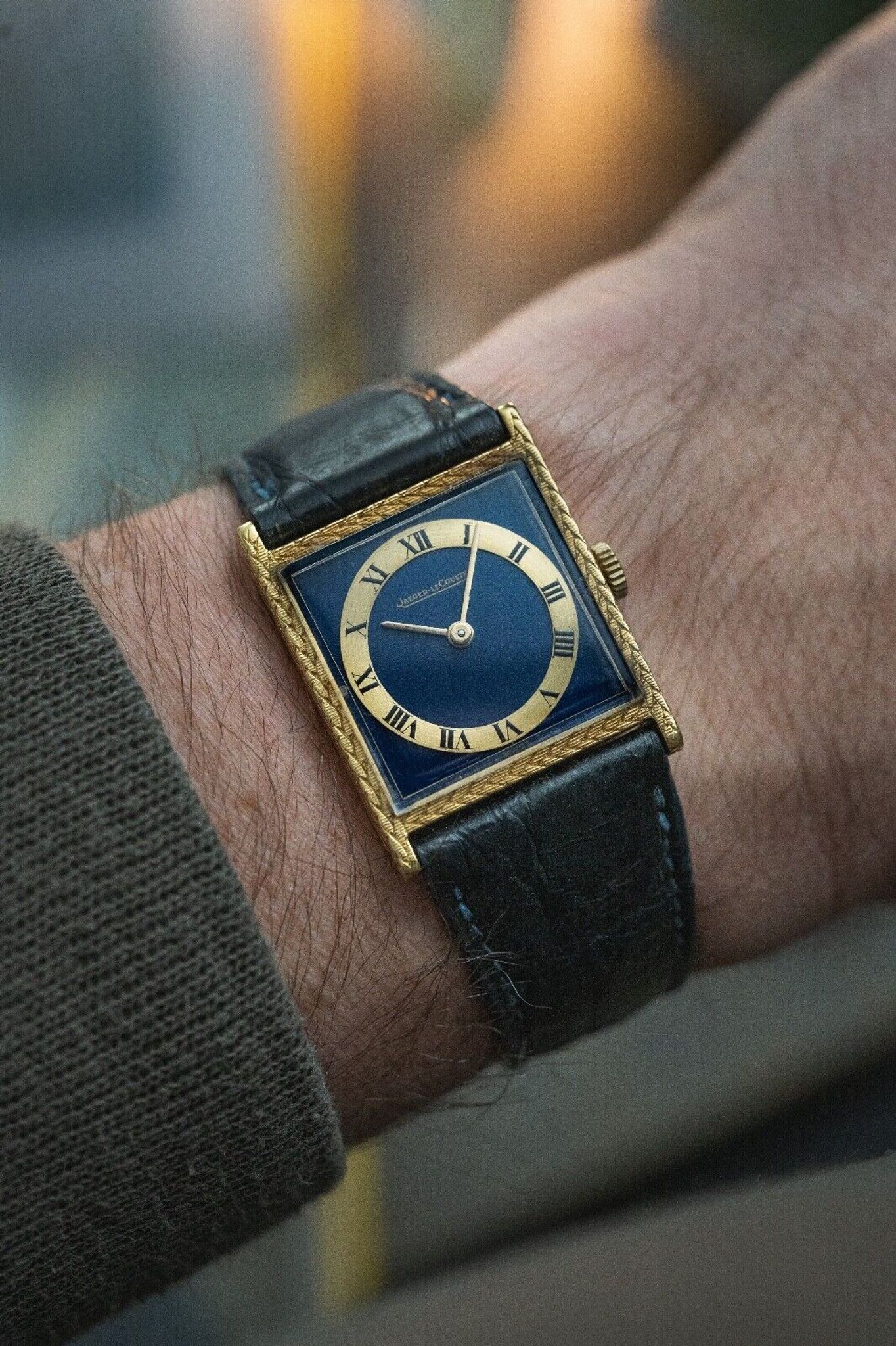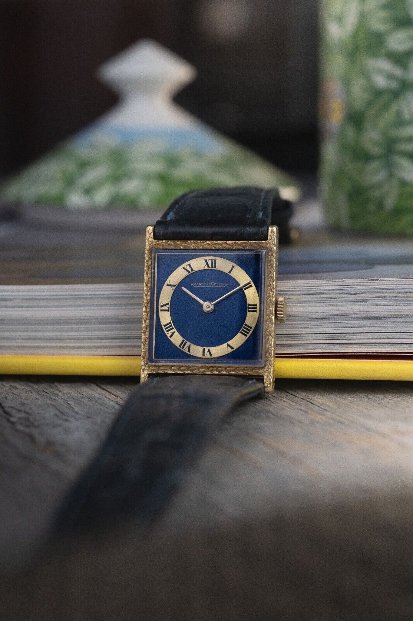 Jaeger-LeCoultre - 1970 Jaeger Lecoultre Tank solid 18k yellow Gold Wristwatch Blue Dial