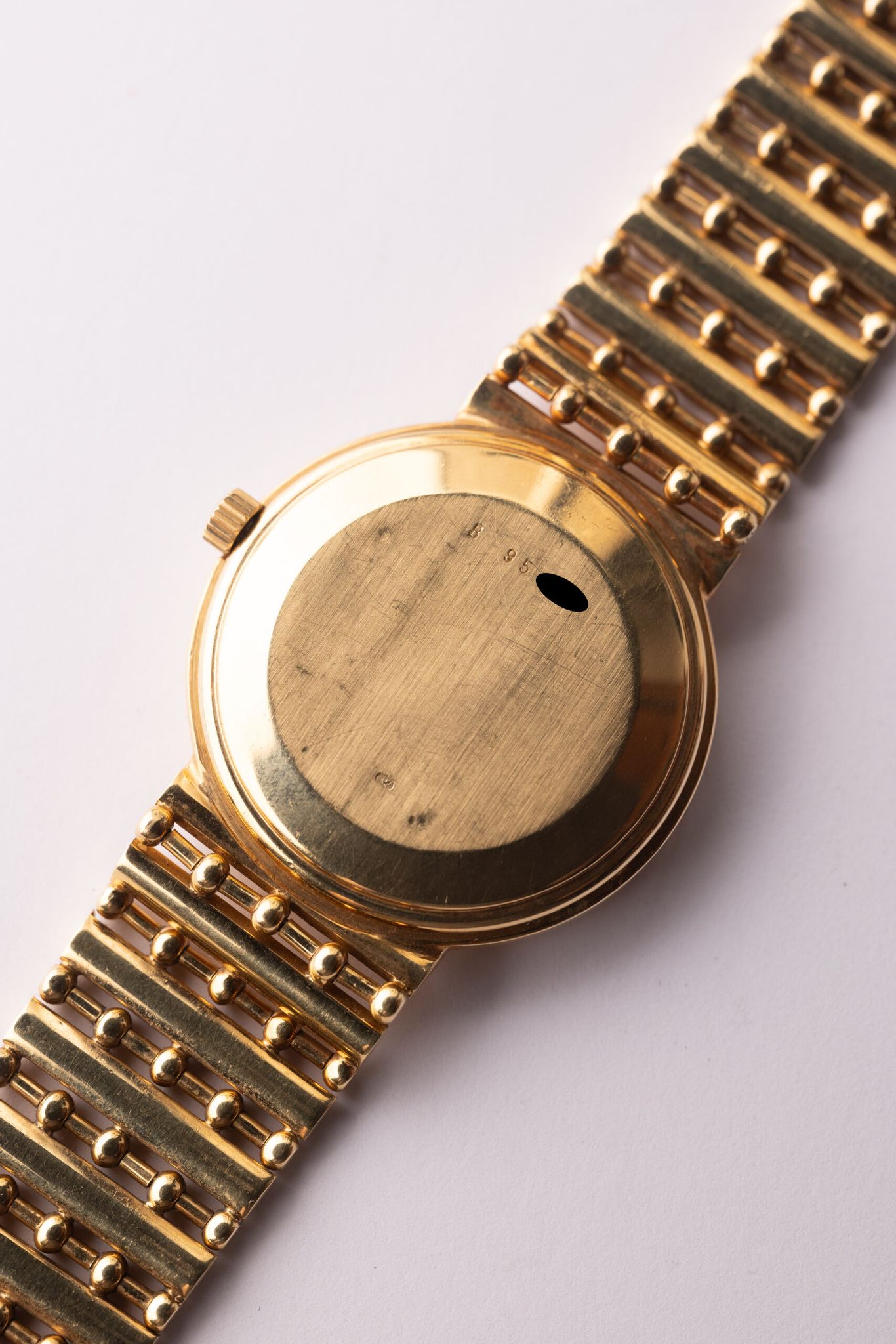 Integrated bracelet Audemars, but not a Royal Oak. 33mms of gold and six o’clock Moon, gold pencil hands and raised batons keep hour; an offering whose ladder-style bracelet compliments 1970’s AP simple dress watch sophistication and design.