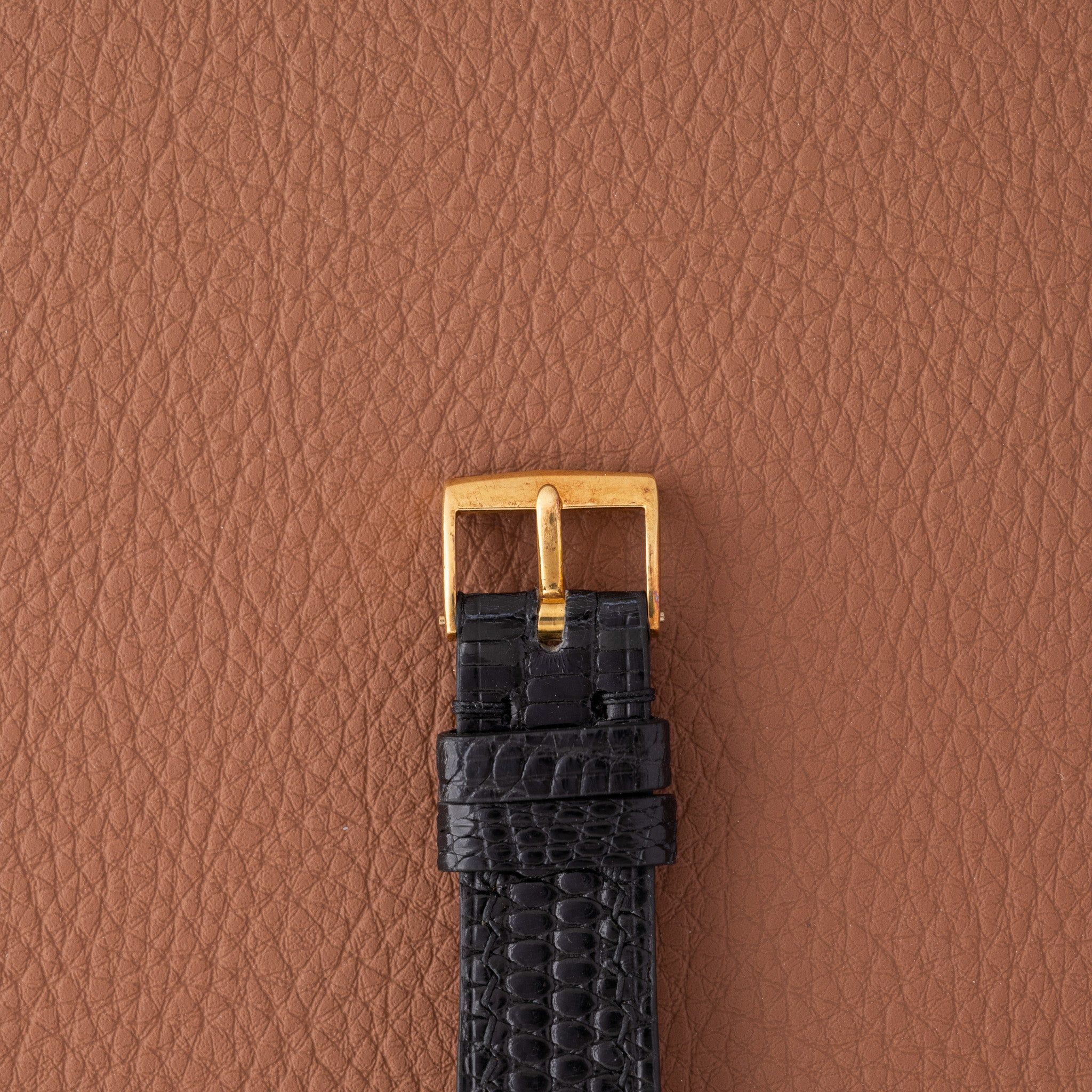 Strap: New lizard strap showing light wear from storage.