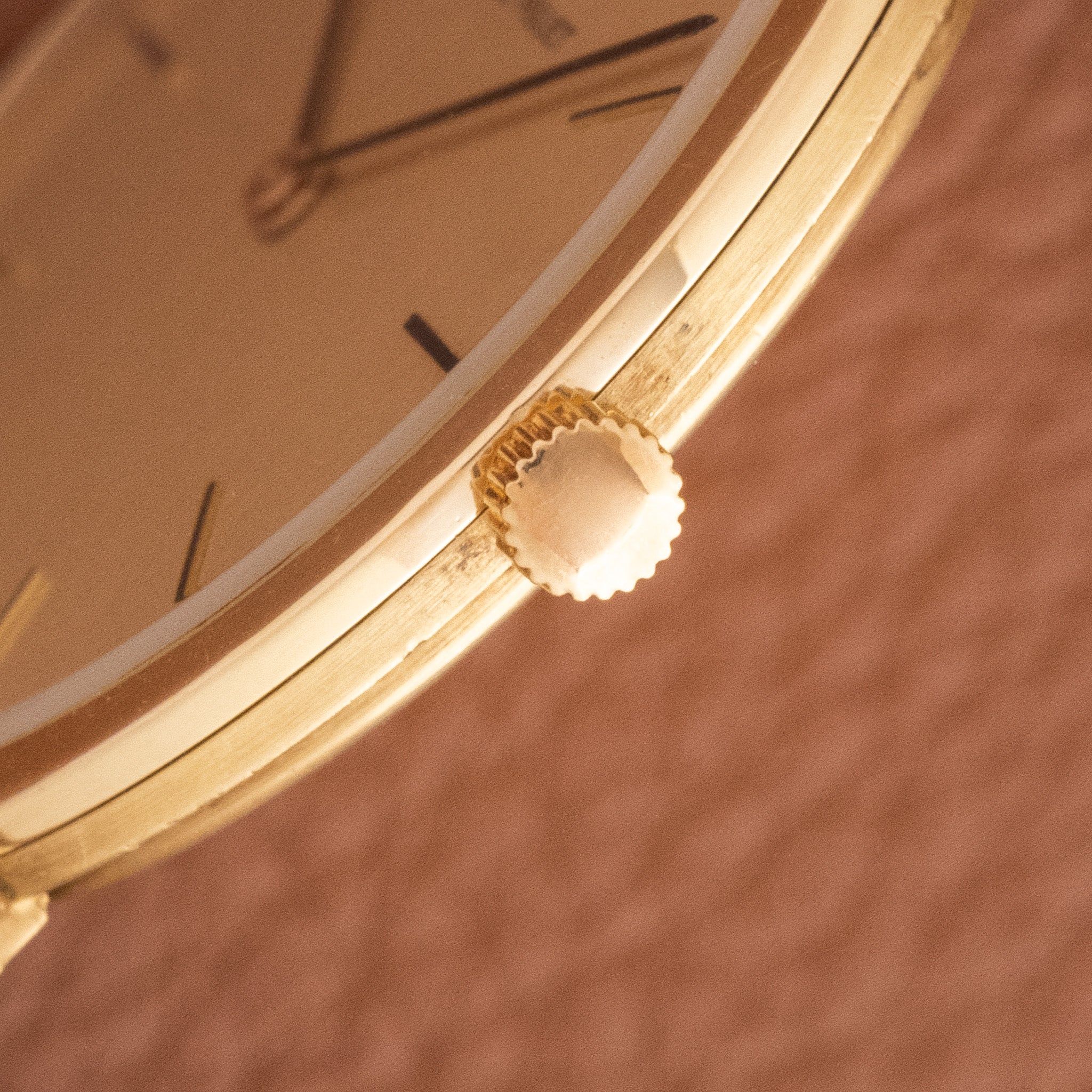 Dial: Original brushed gold dial with light wear near the outer edge; nearly perfect to the naked eye.