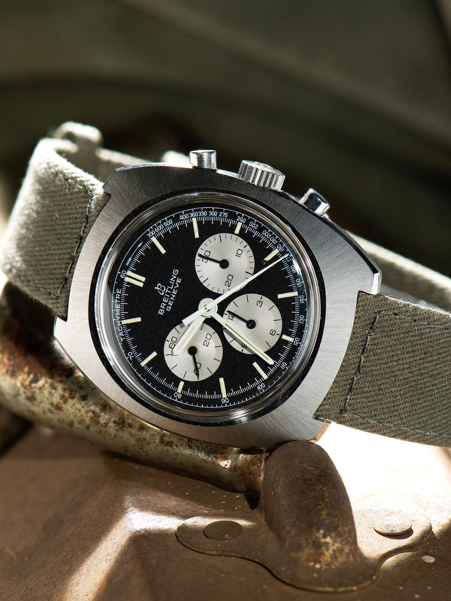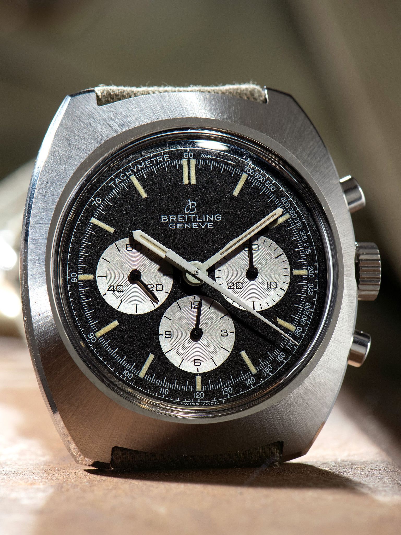 Fast-forward a few decades, and by the 1970s, Breilting had an array of chronographs, all suiting different applications with vastly different appearances. This ref. 9757 comes from this 70s era, and features a utilitarian aesthetic with a broad tonneau case and technical dial.