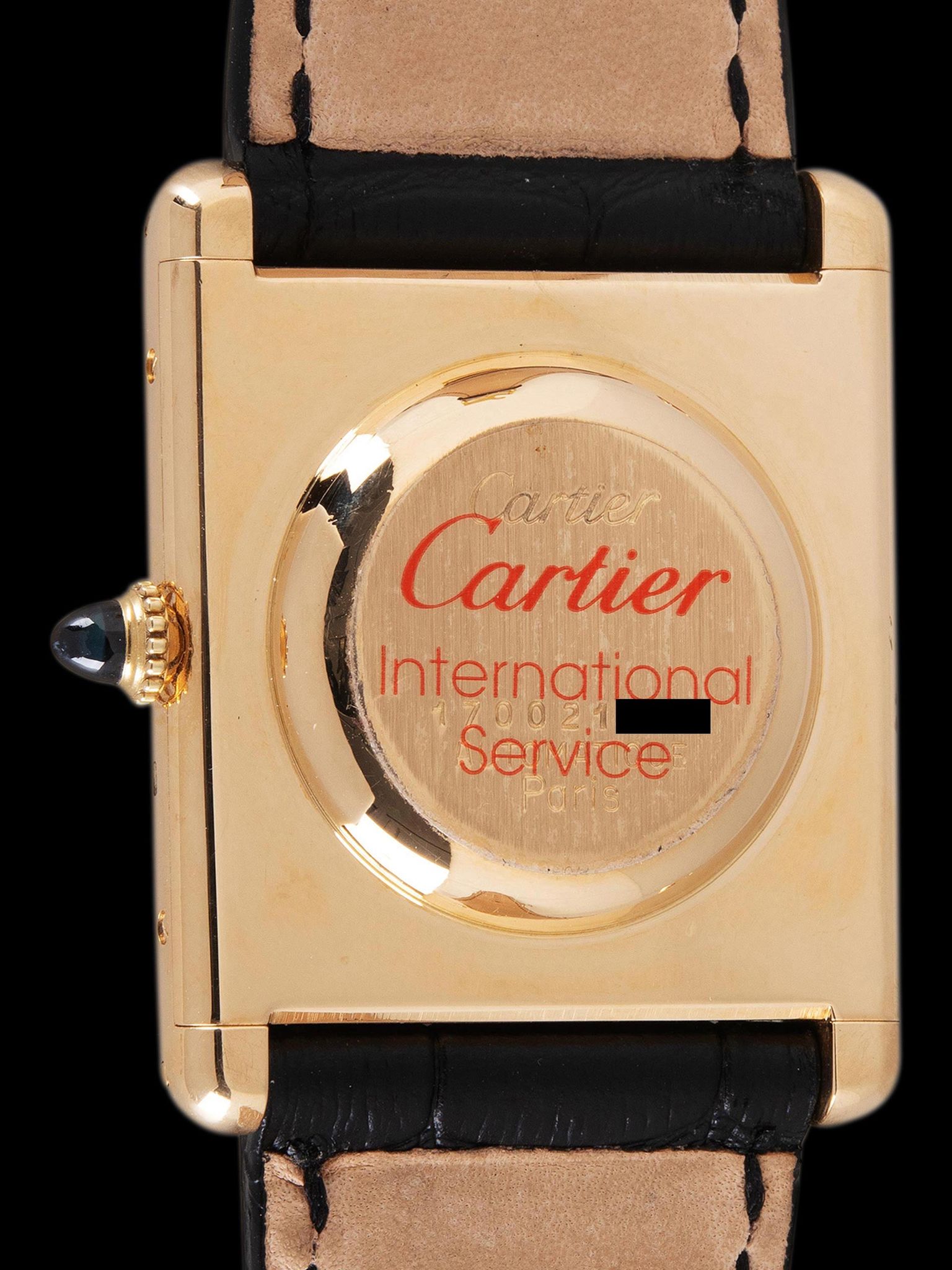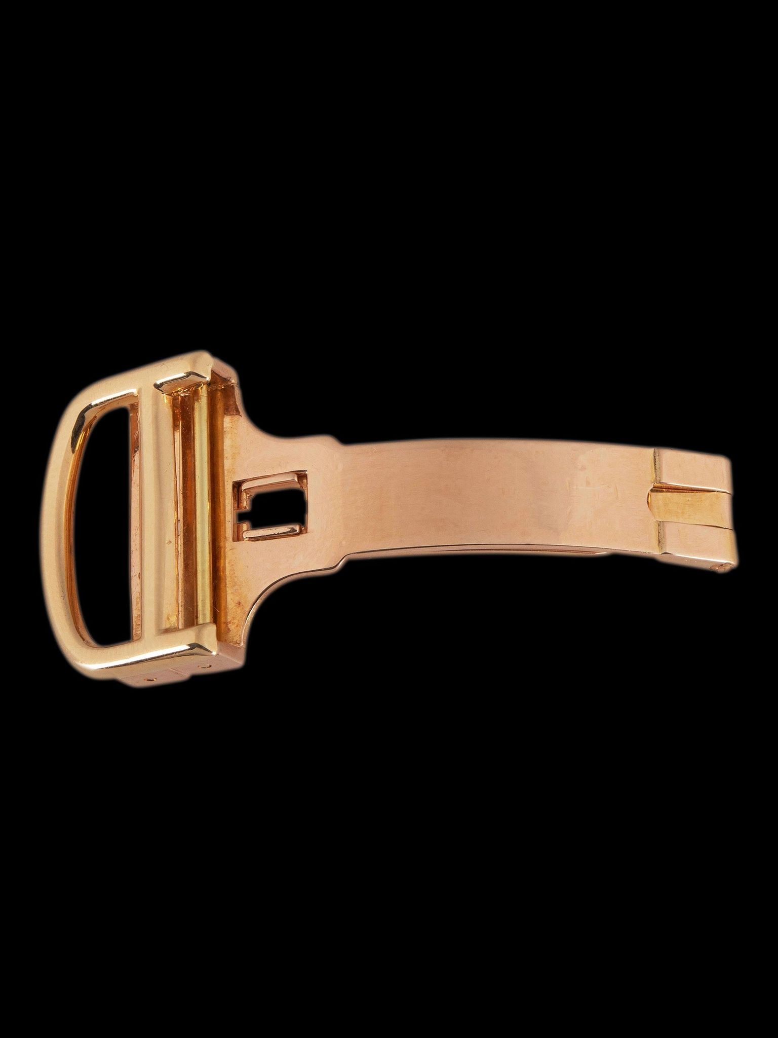 The watch comes with a separate 18K yellow gold Cartier deployant clasp. The watch is keeping time perfectly, backed by a 1-year warranty on accurate timekeeping.