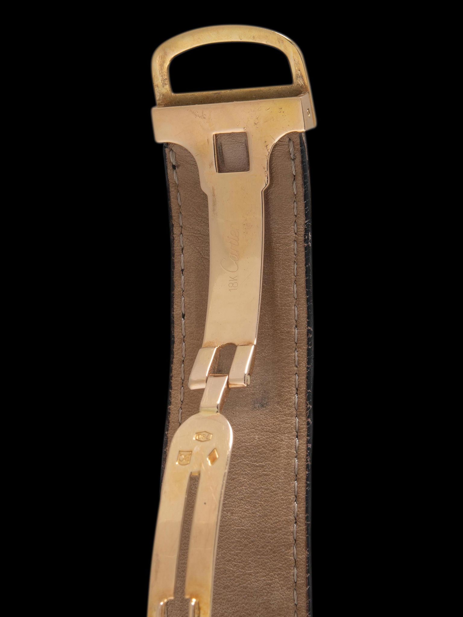 The watch comes with a separate 18K yellow gold Cartier deployant clasp. The watch is keeping time perfectly, backed by a 1-year warranty on accurate timekeeping.