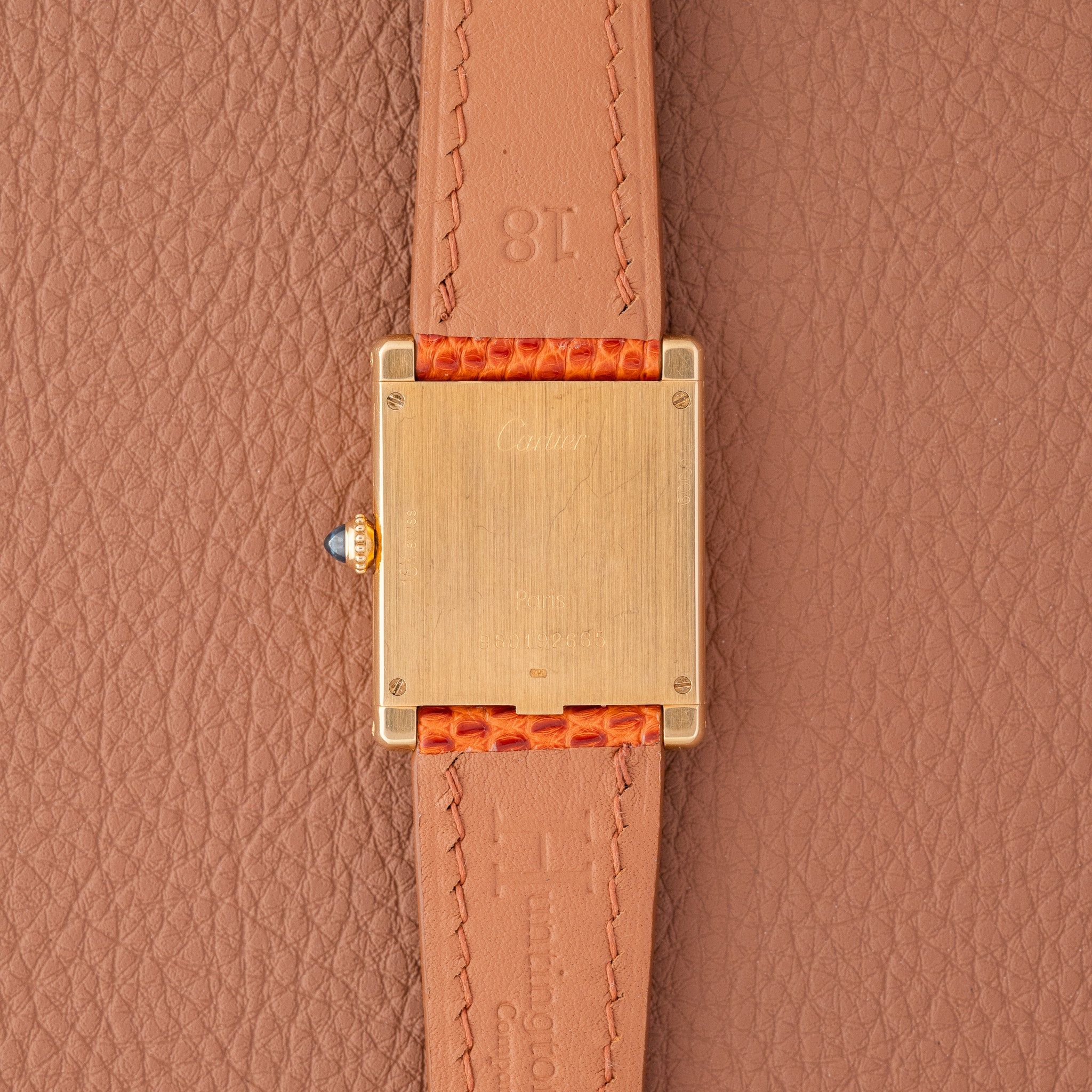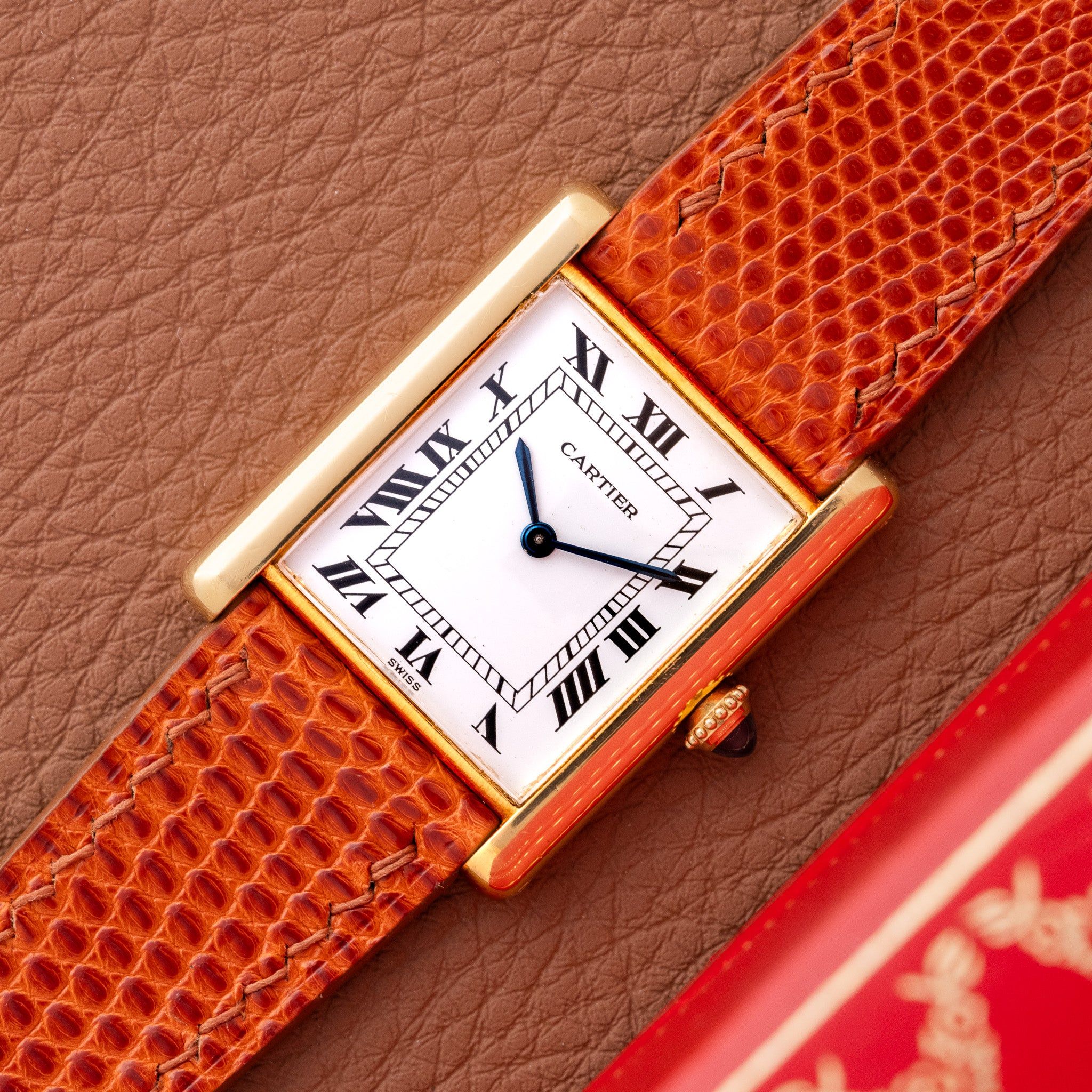 Buckle: Original gold-plated Cartier-signed buckle in excellent condition.