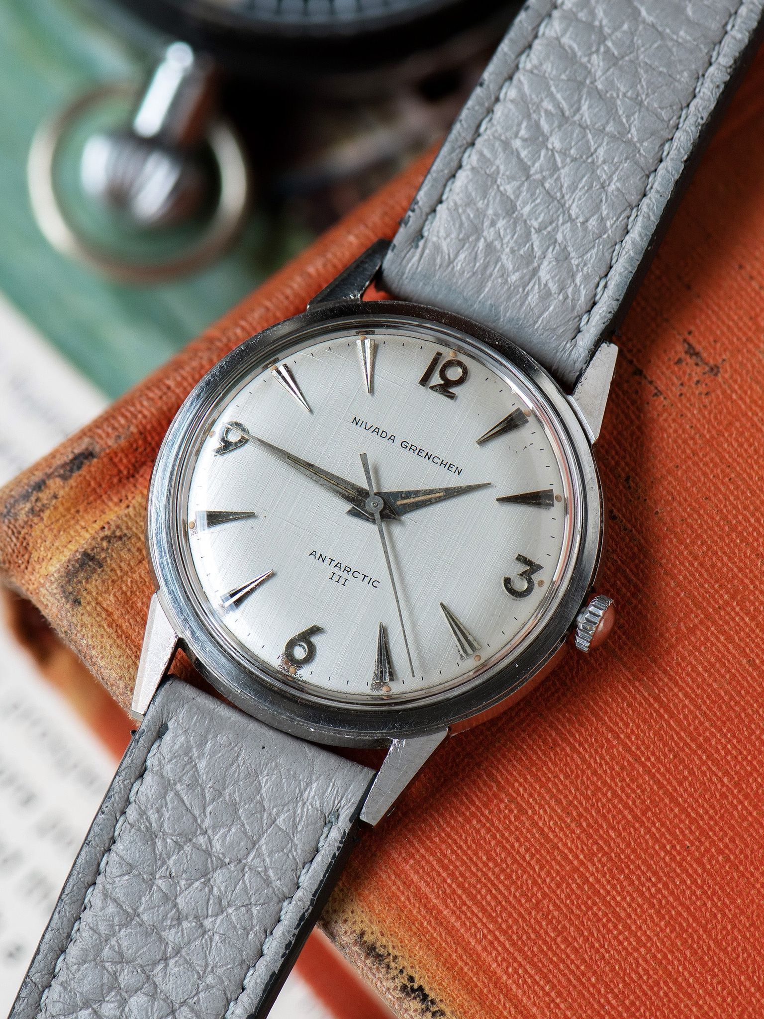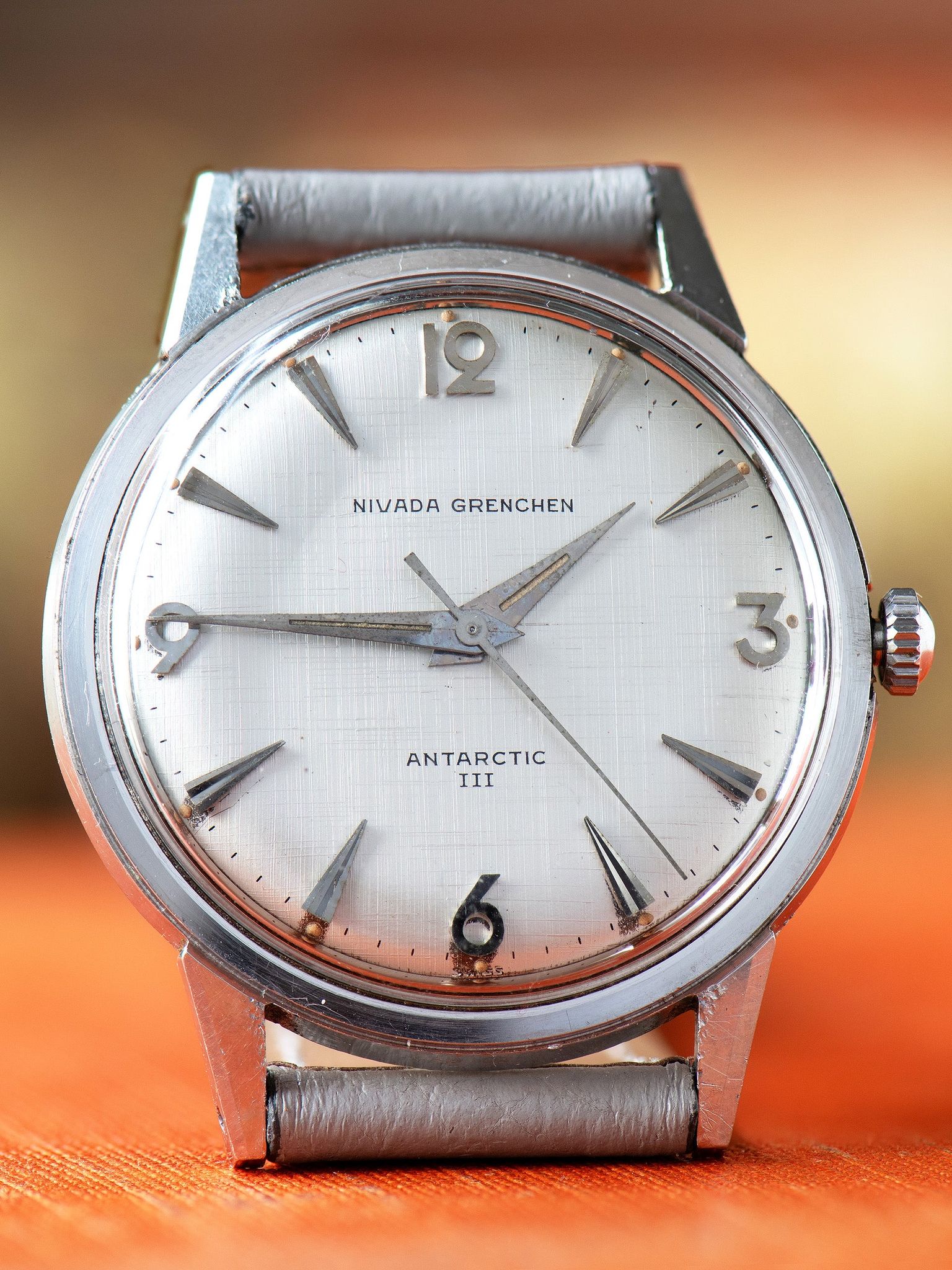 This particular model is part of what is colloquially known as the Roman Numeral series—hence the "III" appended to the Antarctic name on the dial. The Antarctic III models were a slightly more formal option compared to some of the other variants, with a larger dial, thin bezel and lugs, as well as its distinctive linen dial. While it's mostly restrained and classic in design, the giant, eye-catching rounded deco numerals certainly add a classy midcentury feel. This watch shows off all the classic hallmarks in stunning fashion, showing very little wear on the case or the dial. It's a timeless watch with a unique history that could be dressed up or down and worn just about anywhere. Even the Antarctic.