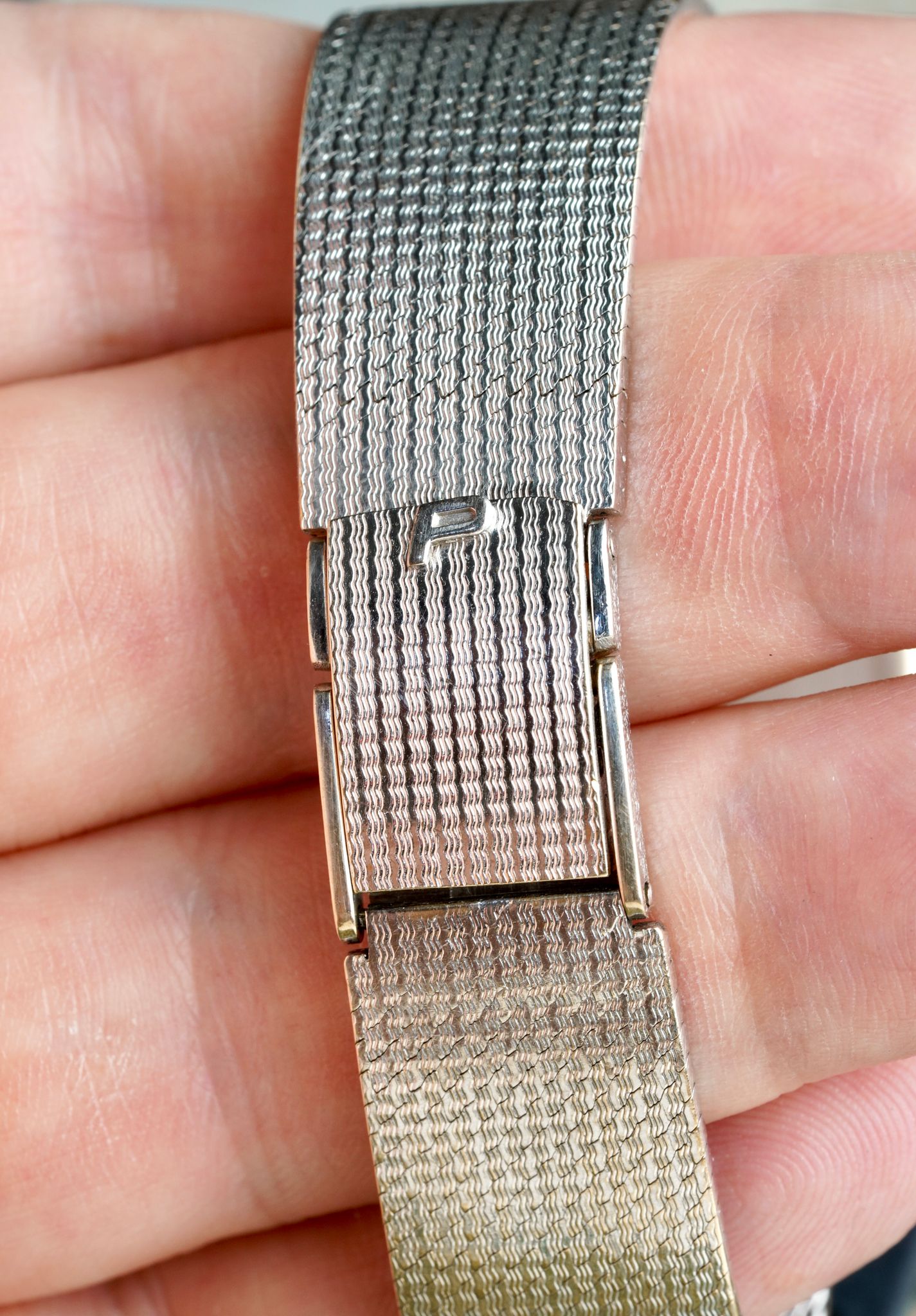 Its white gold Milanese bracelet is sized to fit a 7.1 inch comfortably. This watch is running well and keeping accurate time.