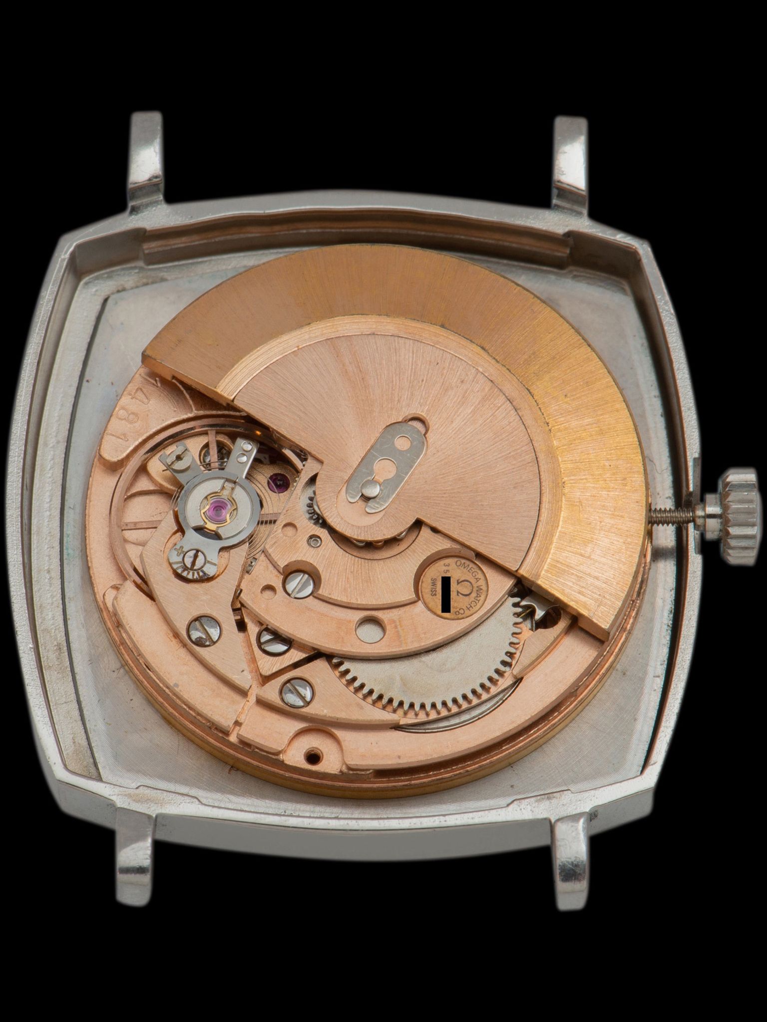 The ref. 162.0042 features a 35-millimeter case with a bulging square shape. The mix of curvature within the rigidity of the square creates a totally unique look that finds it just as easy to navigate casual wear as it does dressing up. The watch comes supplied on an Omega 1037 'beads of rice' bracelet with 609 end pieces that retains 20 links that show light stretch and will fit up to a 7-inch wrist. The watch is powered by the caliber 1481, a self-winding movement developed between Omega and Tissot in the early 70s.