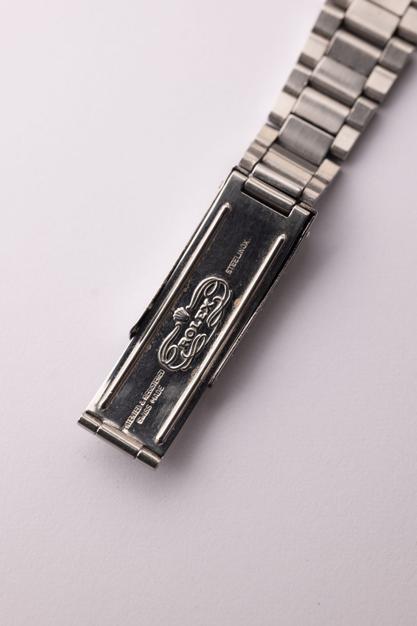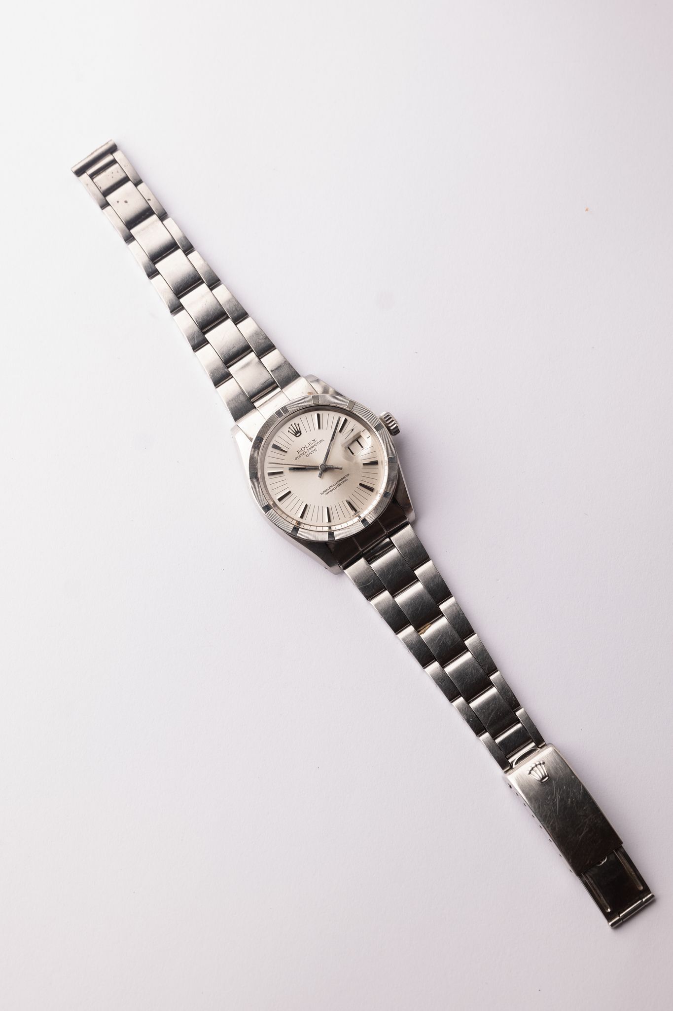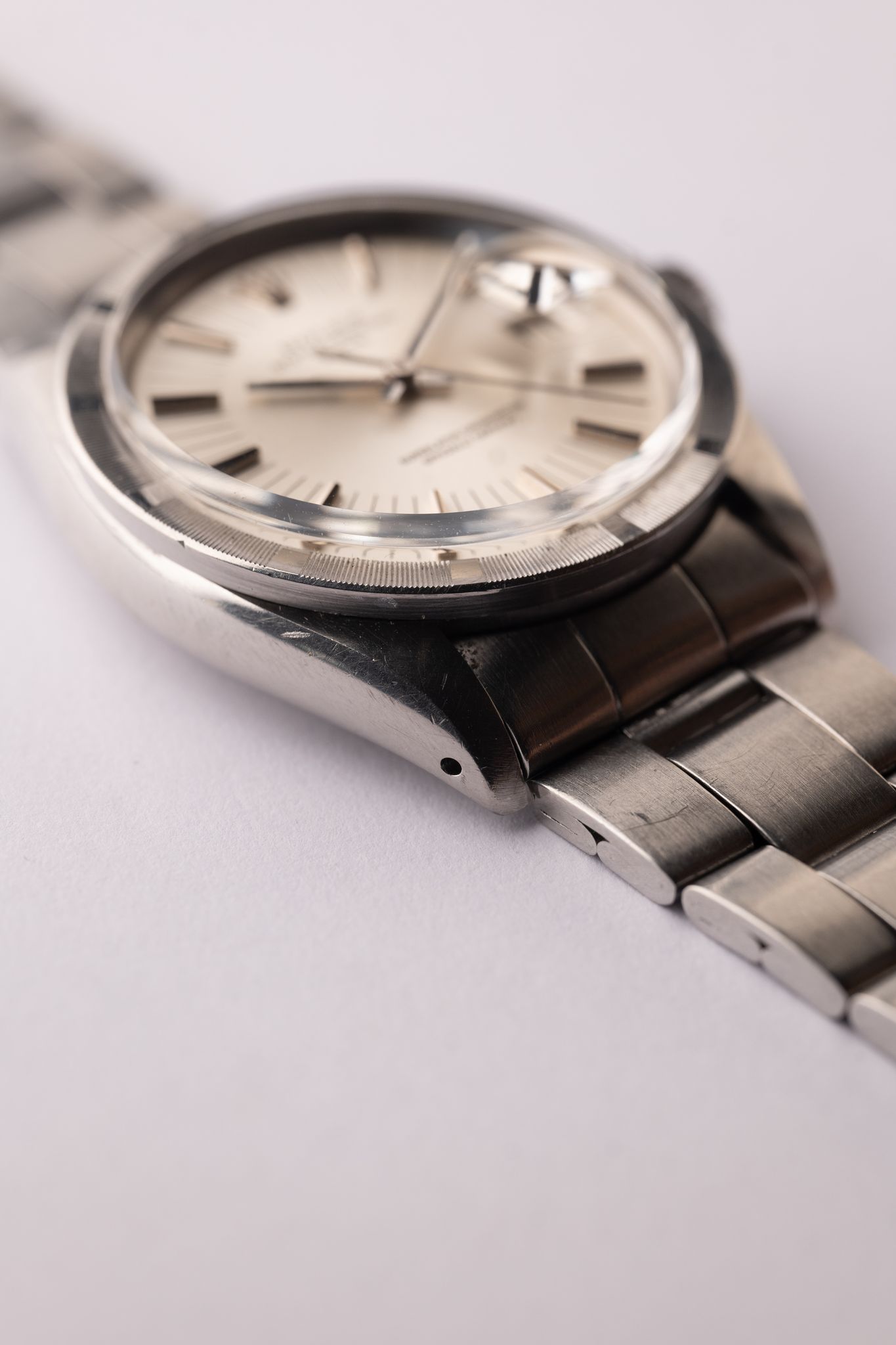 Description: This 1501 is featured with a radial dial which is rarely seen on the Oyster Perpetual, this model is further elevated by its engine-turned bezel. And together, these details create a standout piece among the 1500 references. The watch is in excellent condition, with thick lugs throughout.