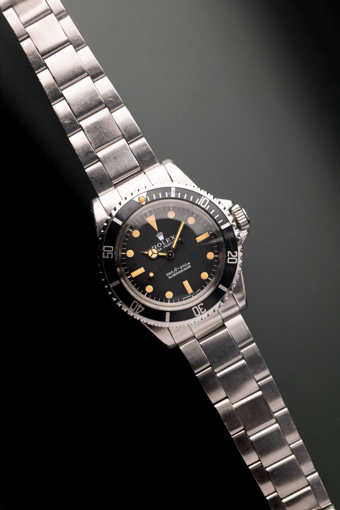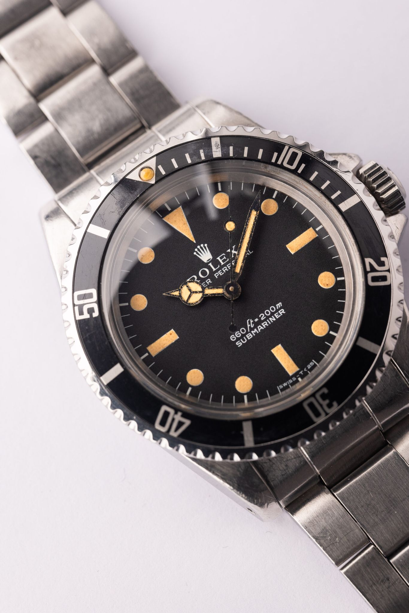 An excellent unpolished early 1970’s 5513 Serif dial Submariner whose lume has taken a soft pumpkin hue.