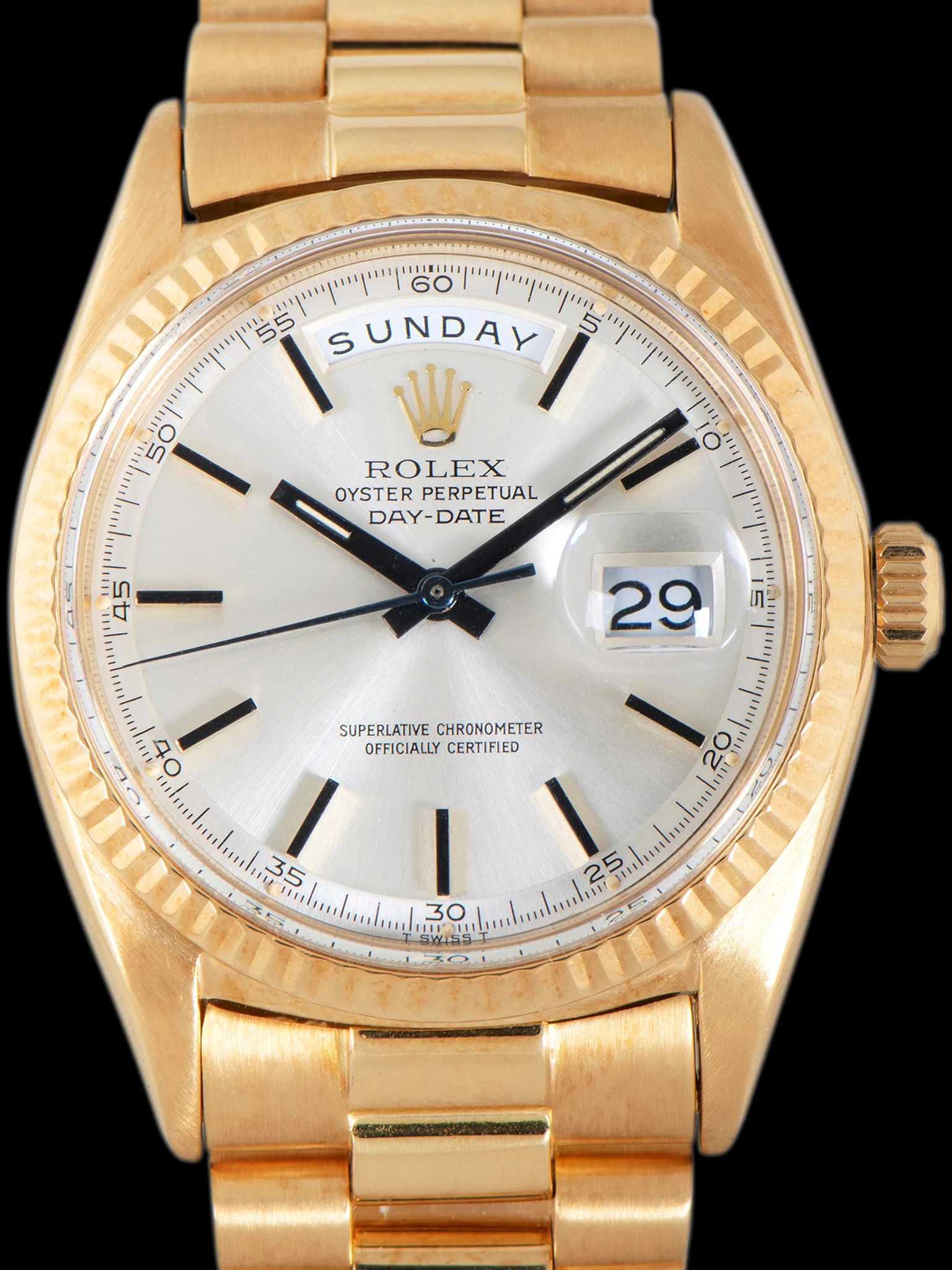 1972 Rolex Day-Date 18K YG (Ref. 1803) Silver "Minute Track" Dial W/ Black Enamel Markers & Hands