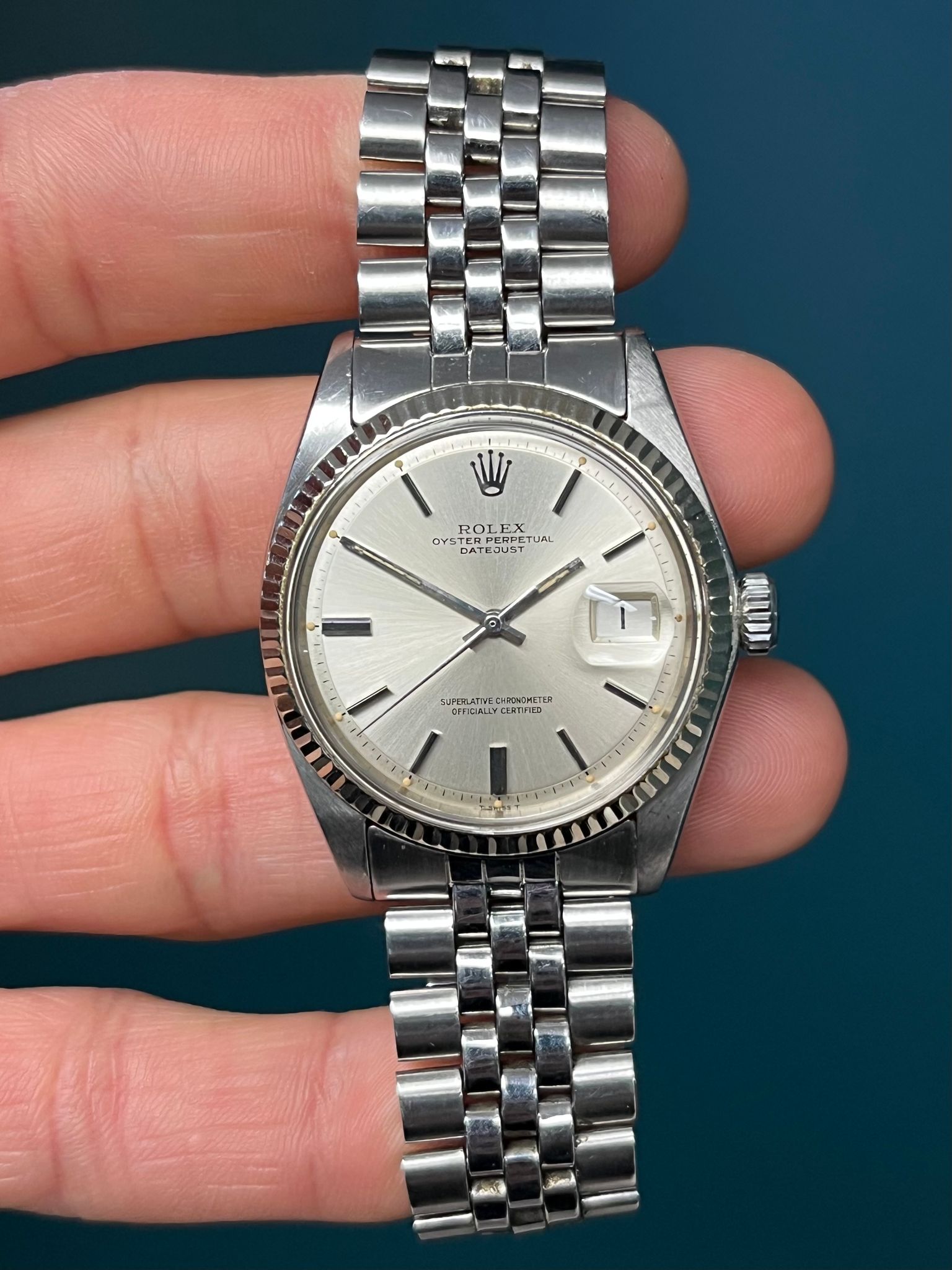The Vintage Rolex 1601 Date just is an iconic watch known for its classic design, precision, and historical significance. With a stainless-steel case, a distinctive fluted bezel, and a reliable automatic movement, this 36mm timepiece is a versatile choice suitable for both men and women. The watch's date function, with the signature Cyclops lens, adds to its practicality and aesthetic appeal. It's a piece of horological history, dating back to the early 1970s and early 1980s, showcasing Rolex's enduring commitment to craftsmanship and innovation.