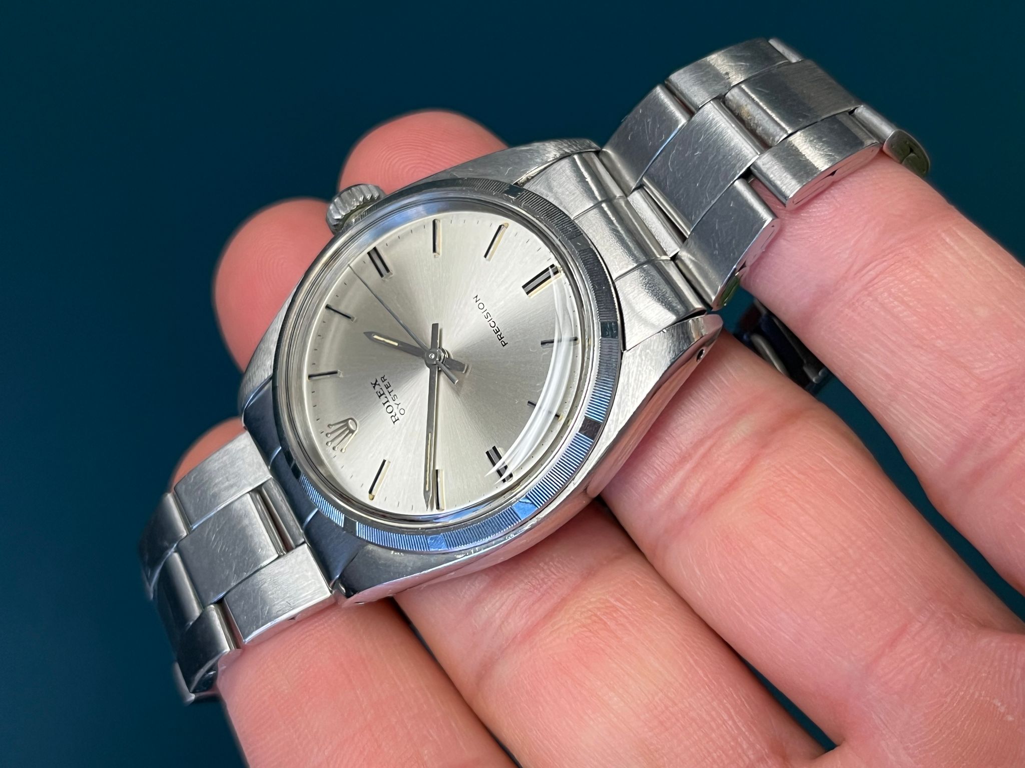 Today's example comes to us as a vintage gem! The dial is excellent showing no wear, the case has thick sharp lugs. The 7835 folded link oyster bracelet is fully linked and shows no stretch.
