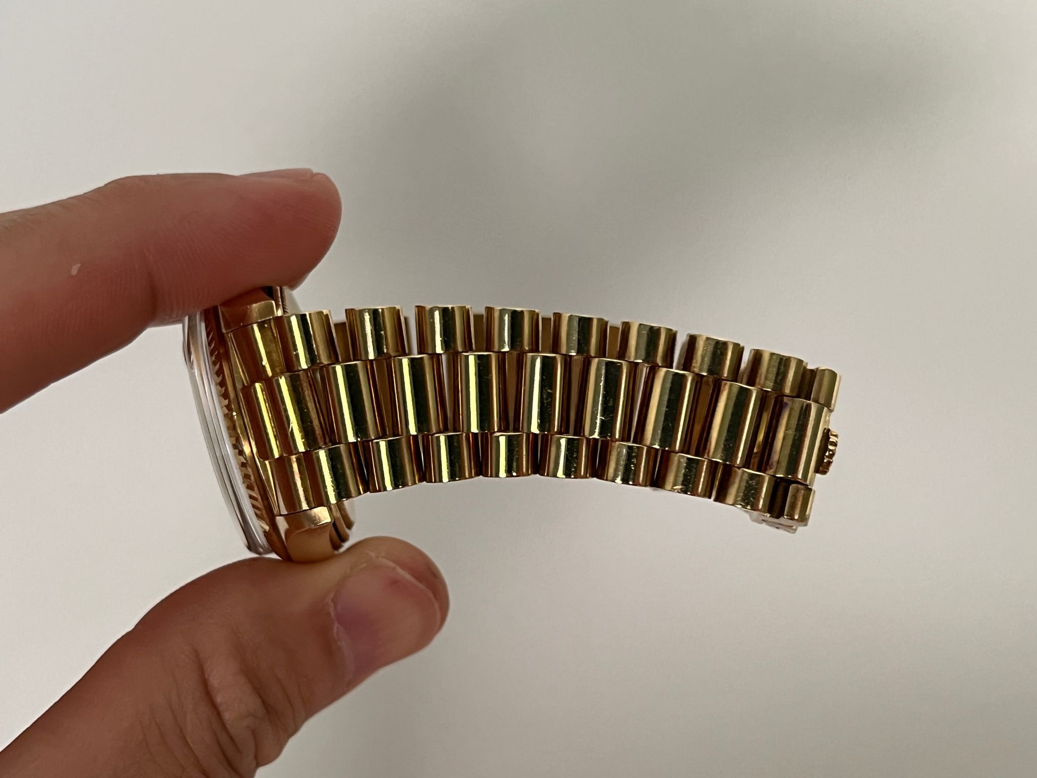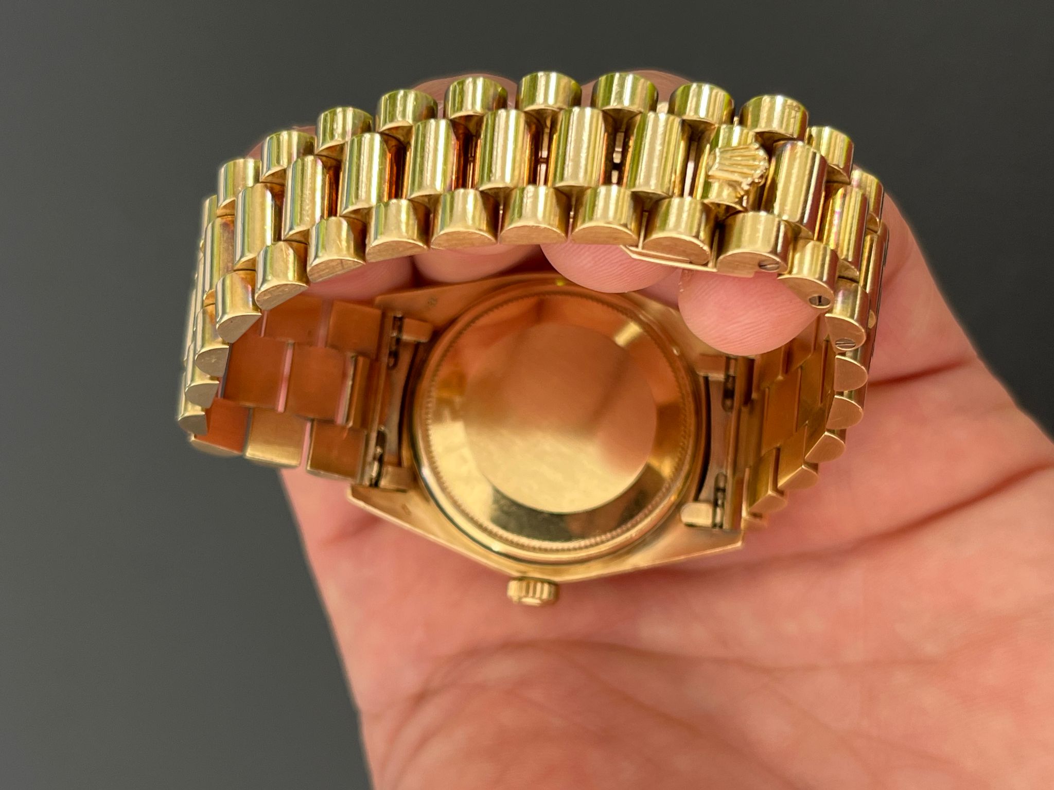 Today's example comes to us in excellent preowned condition. For being 50+ year old timepiece, it still carries its charm and aesthetic appeal. The Ivory Pie Pan dial is mint with full tritium hr plots. The case lugs are thick and healthy. The bracelet has 6 removable screws and shows only minimal stretch. Here is an excellent vintage president preserving its charm and character throughout 5 strong decades.