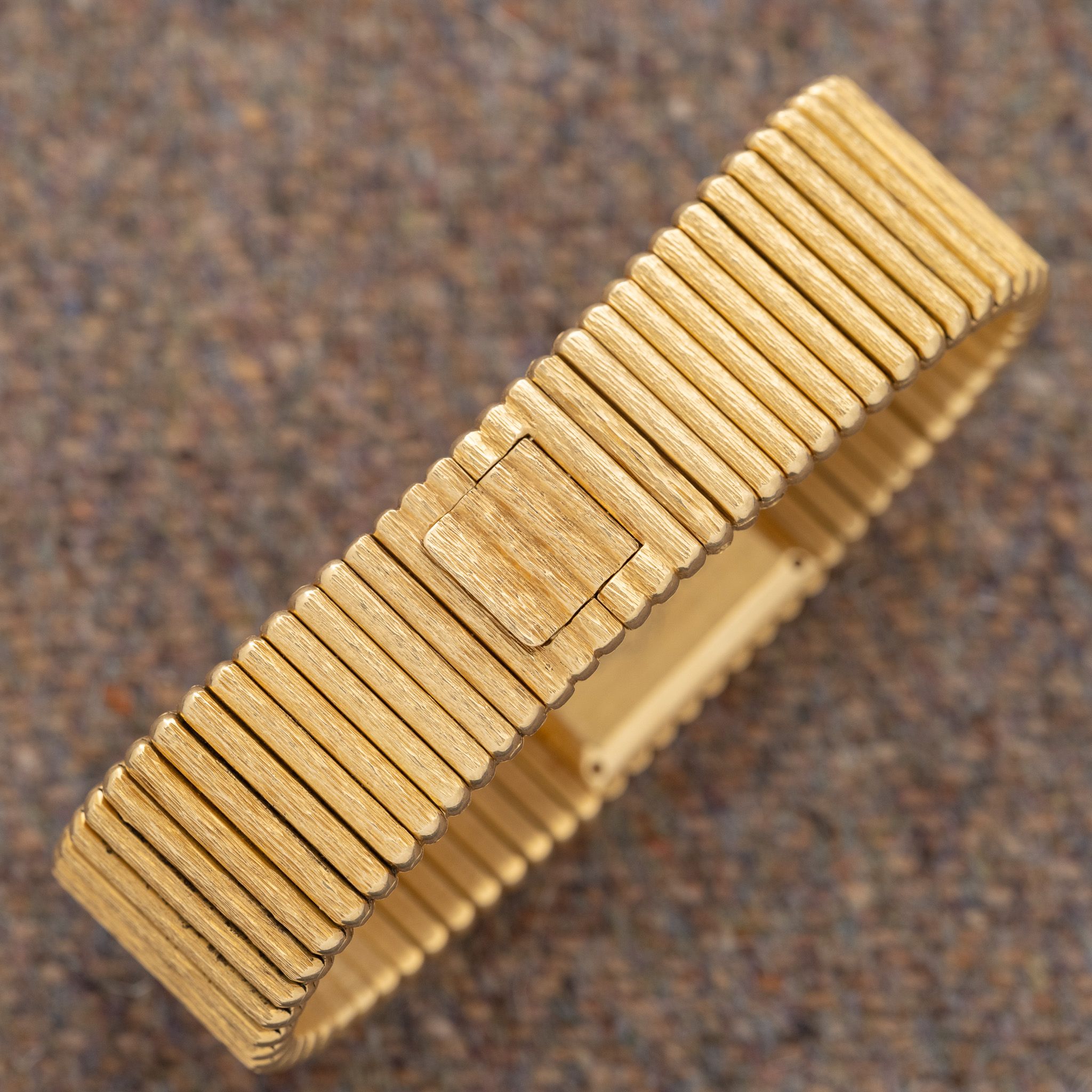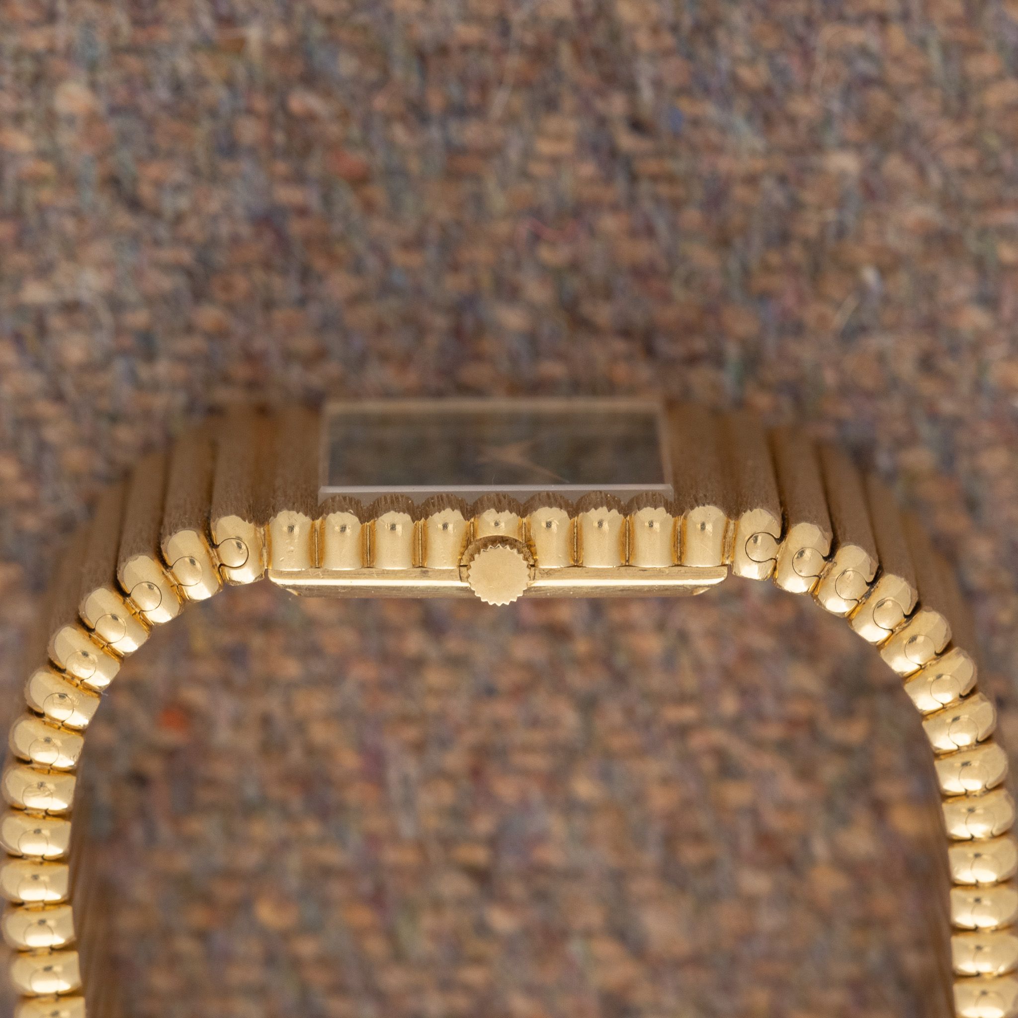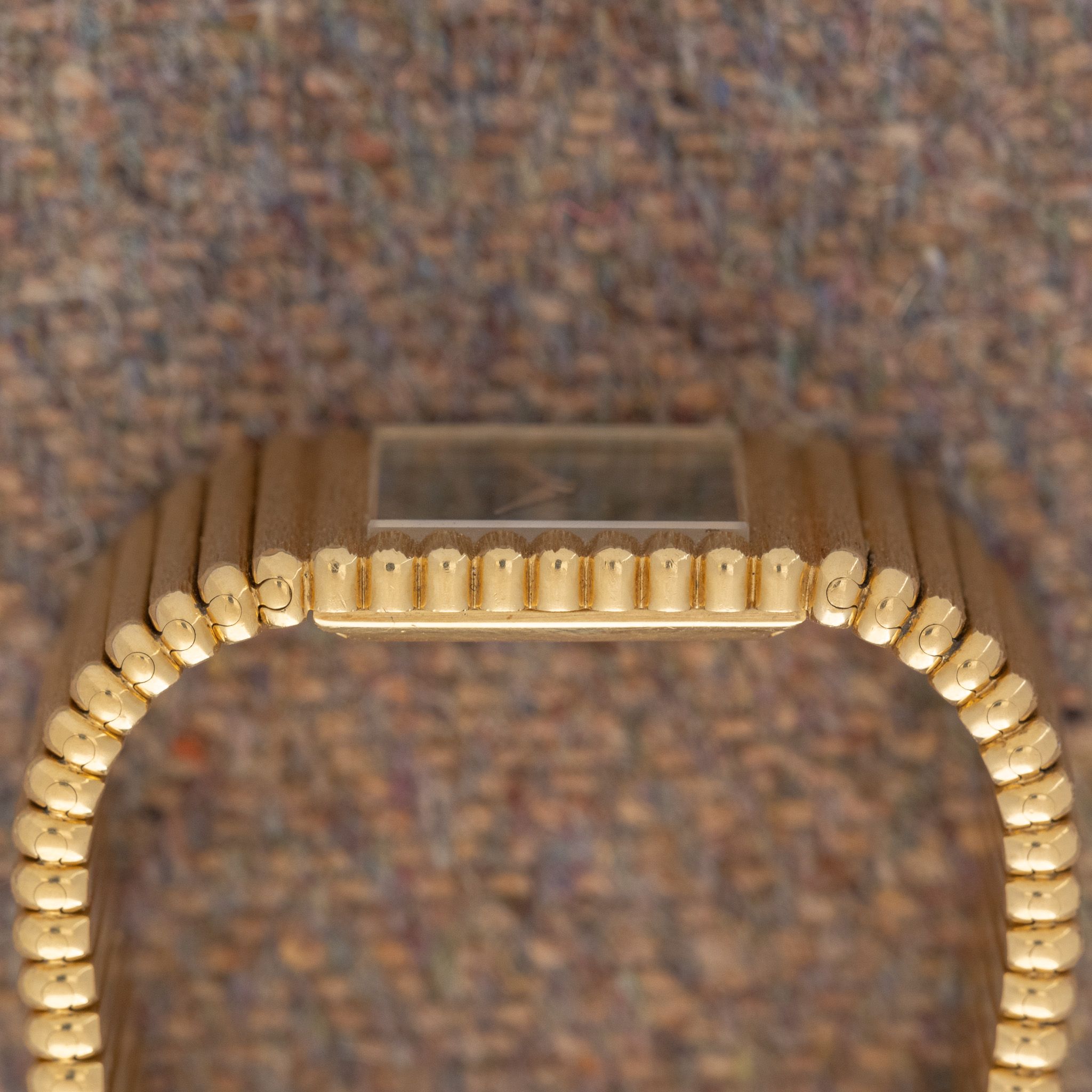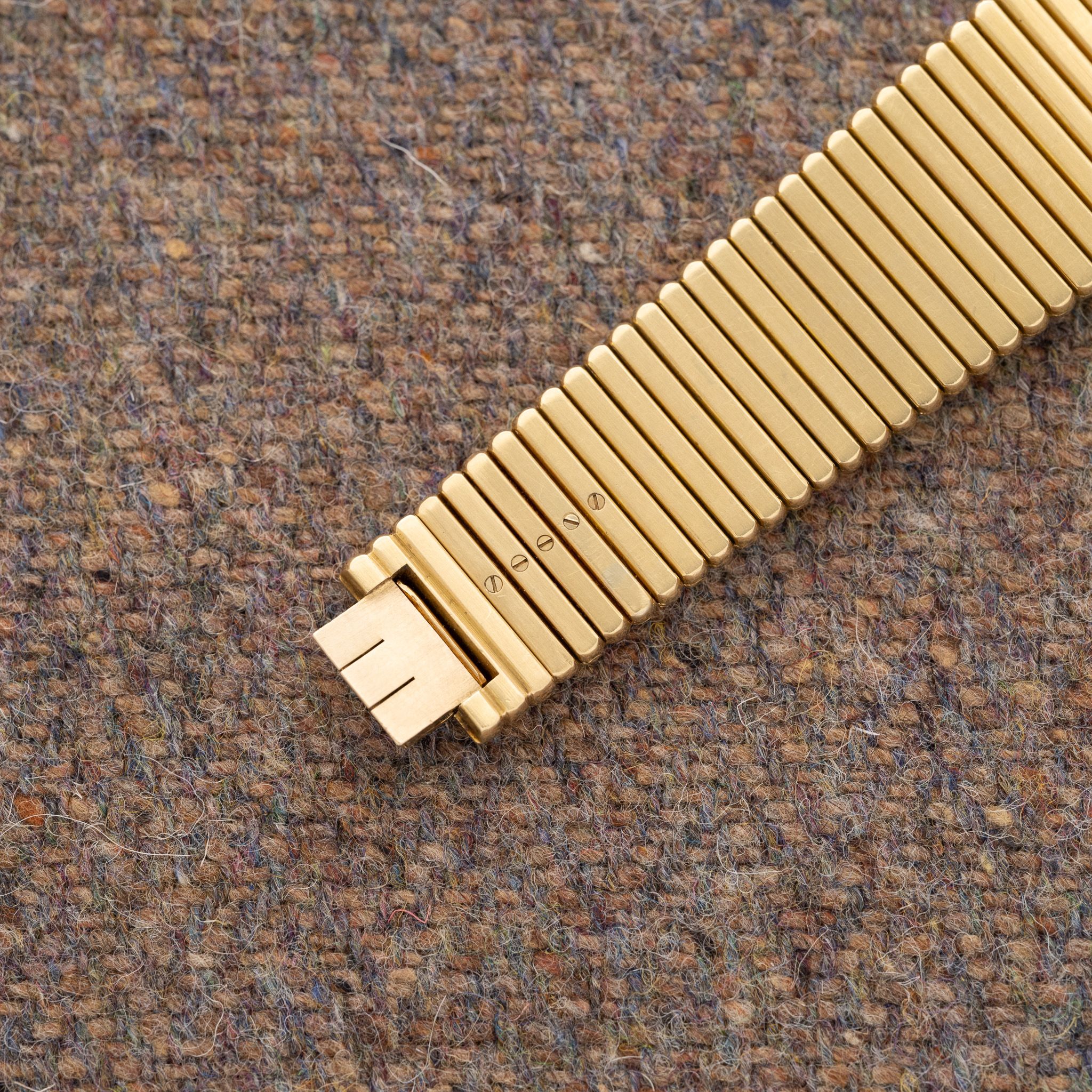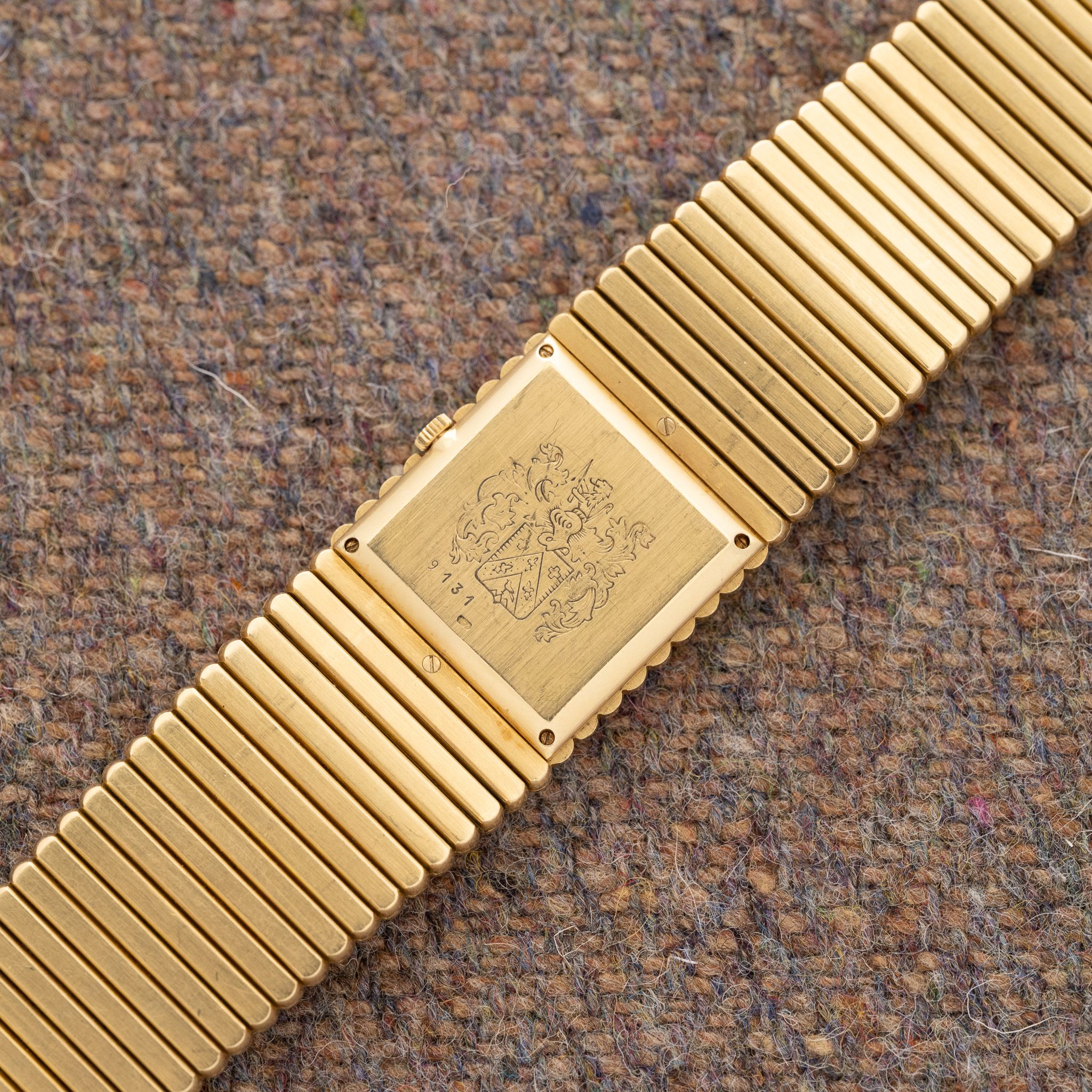Case: Unpolished 25mm 18K yellow gold case.