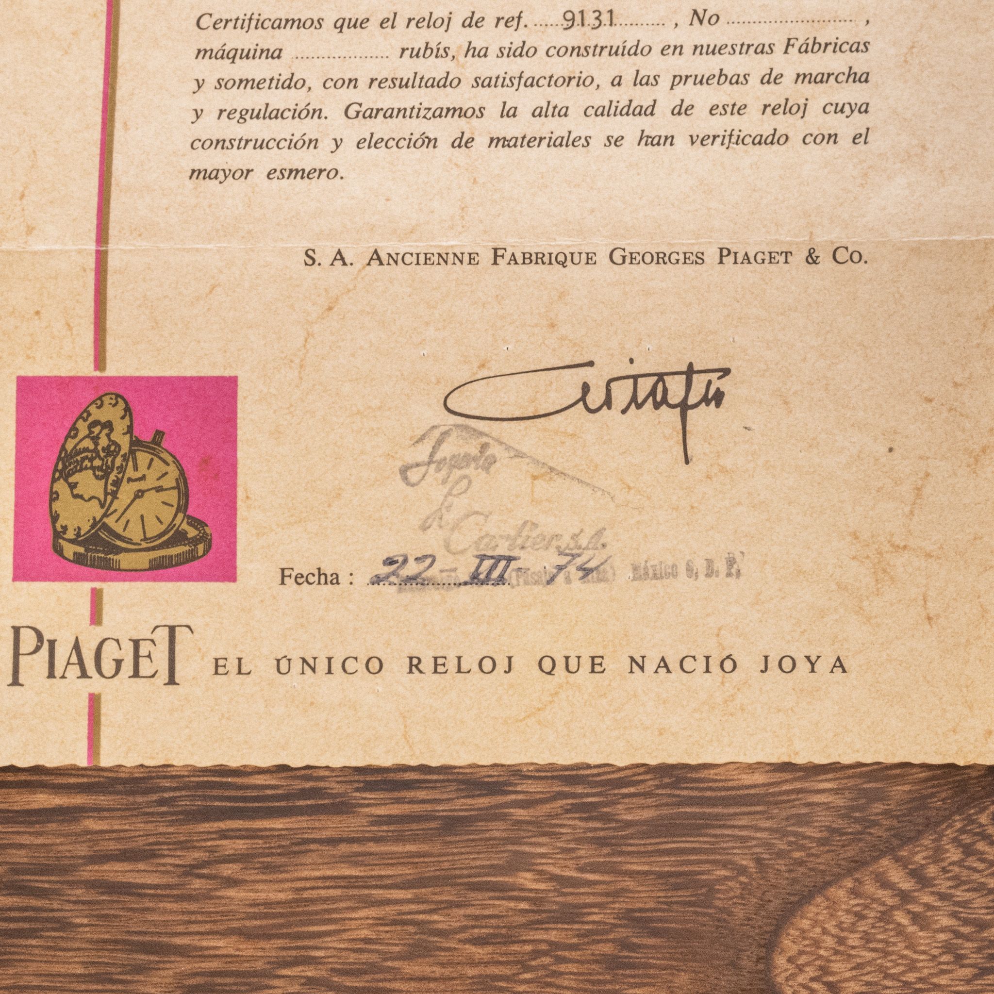 Piaget - 1974 Piaget Jade Dial Emperador Ref. 9131 - Unpolished - Complete Set - Rare Cartier-Signed Papers