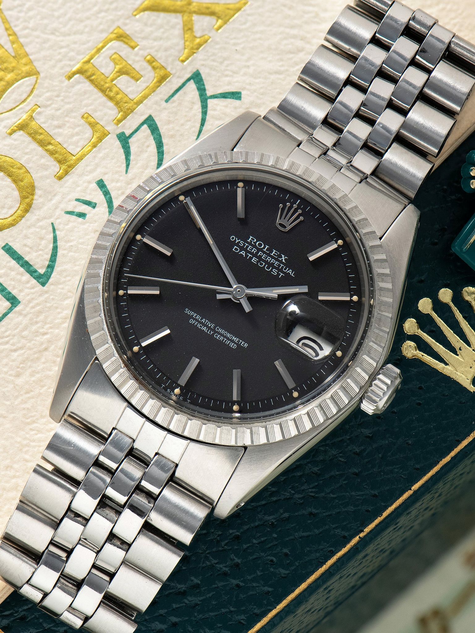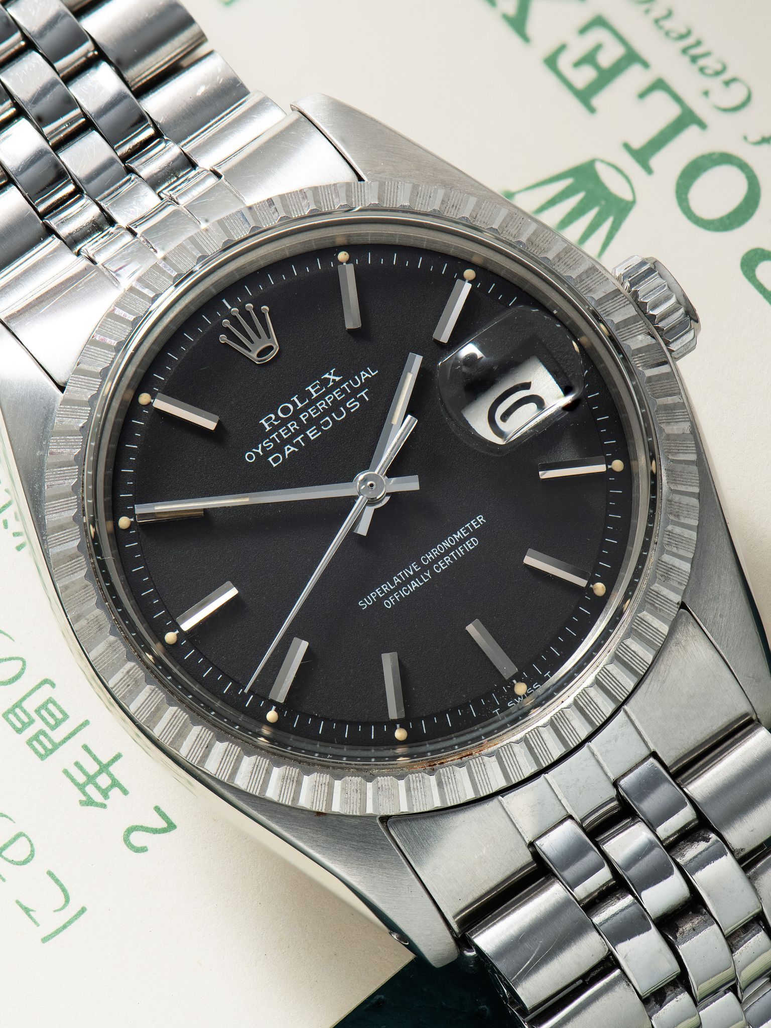 The matte black "pie-pan" dial is an absolute favorite amongst collectors when discussing the Rolex Datejust, though it can be exceptionally elusive. Often talked about and rarely seen this matte black dial Rolex ref. 1603 Datejust is an exceptional example, ready and suited for any occasion.
