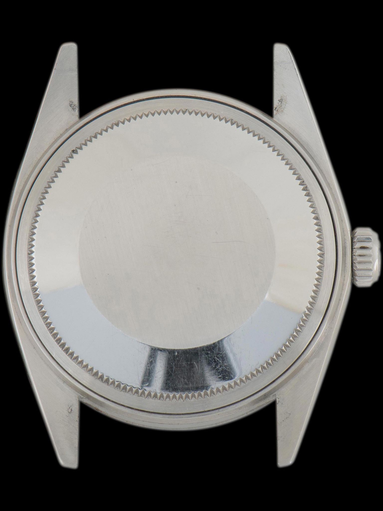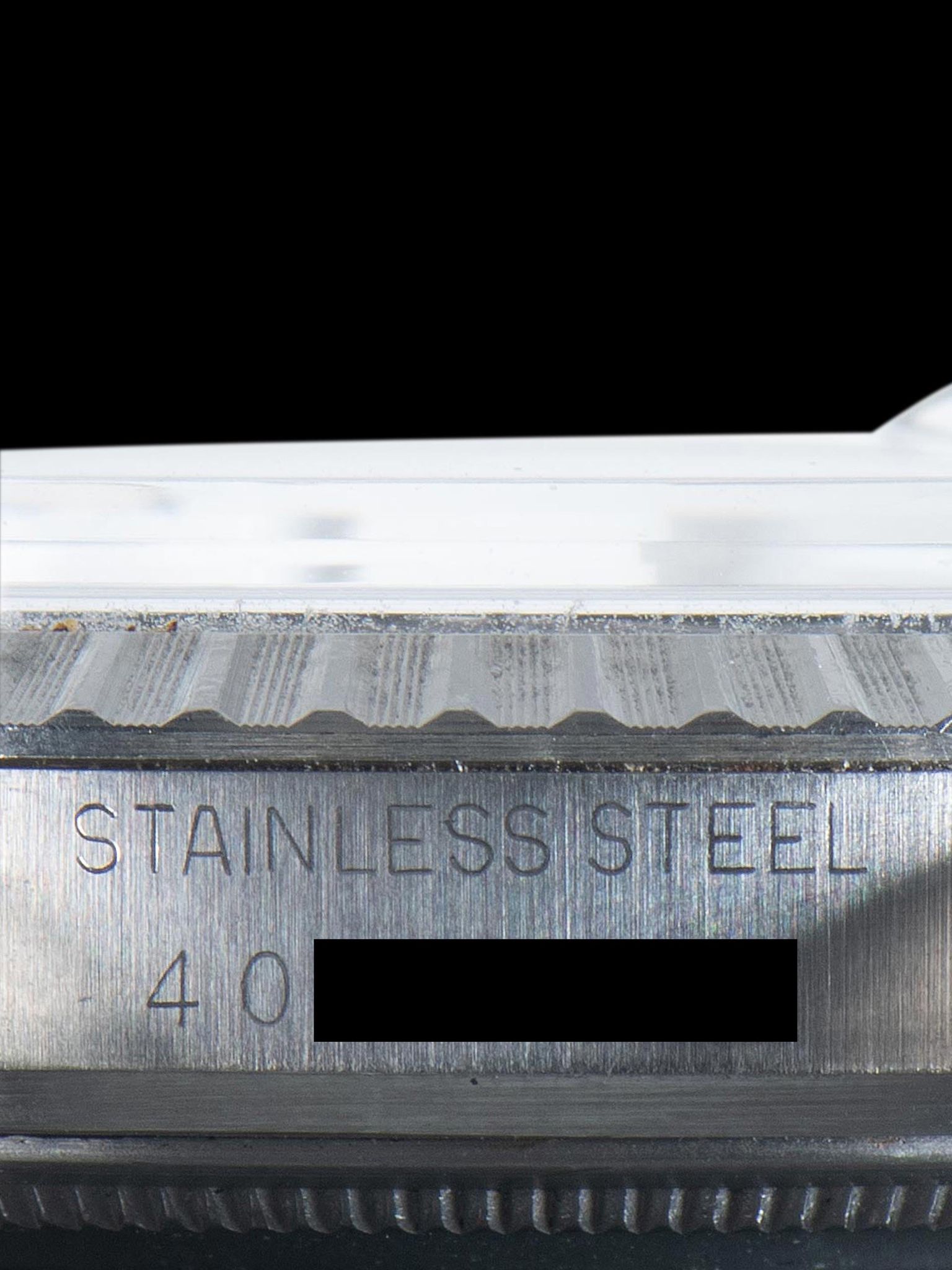 The seldom seen and beautiful matte black dial is in flawless condition, showing no age or damage. The tritium lume plots have achieved a charming creamy patina and exhibit no degradation under UV light inspection. The original tritium hands match the dial perfectly and exhibit no degradation. The metallic date wheel is original with "open" 6's and 9's.