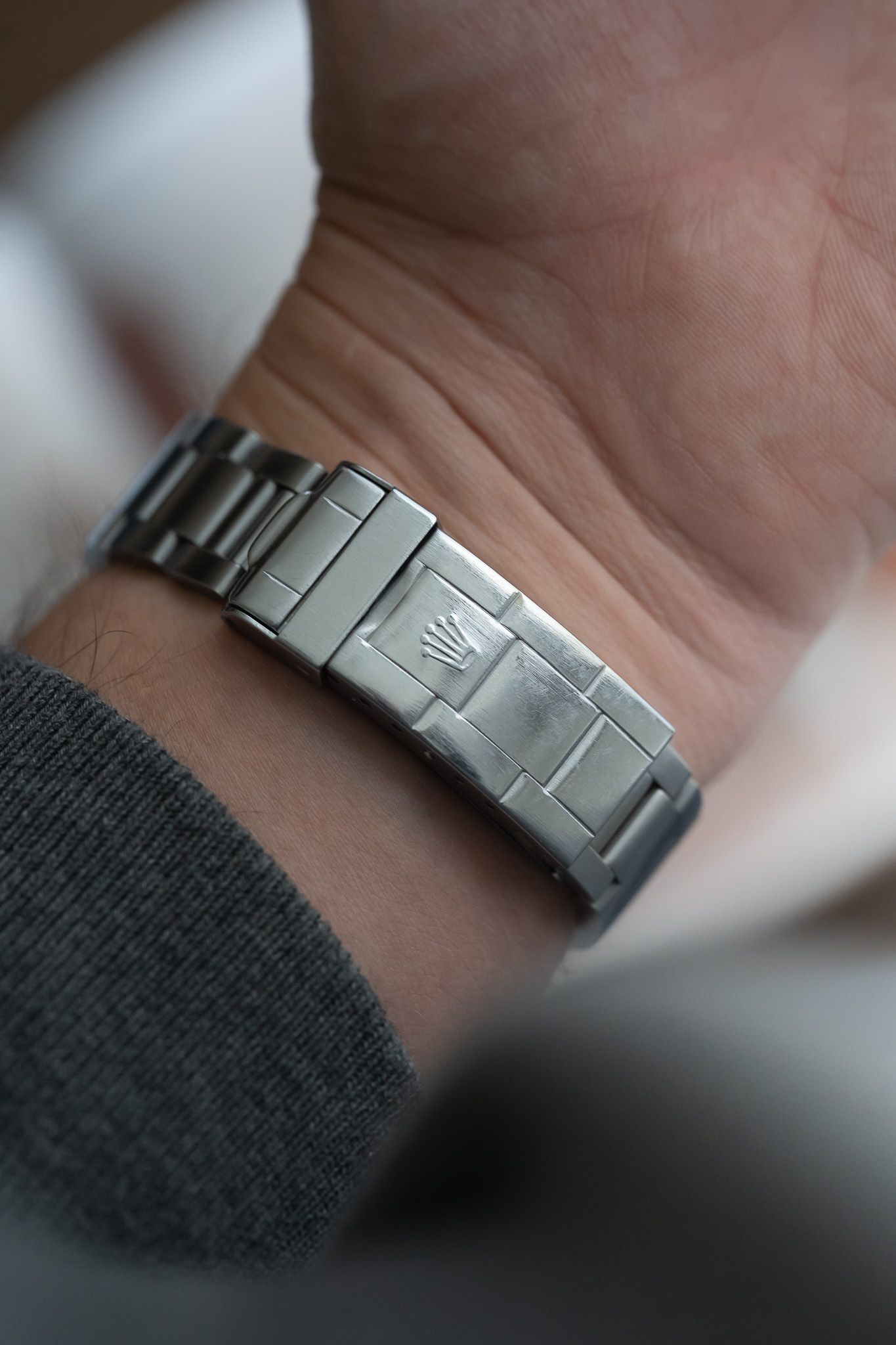 Bracelet/Strap: Stainless Steel 93150 bracelet with 588 endlinks which is in attractive condition and shows light signs of previous wear with no major distractions. The bracelet has little stretch. The bracelet is marked 1/76 correctly dating this bracelet to 1976. The Rolex crown logo on the clasp is sharp. The bracelet will fit an 8 inch wrist