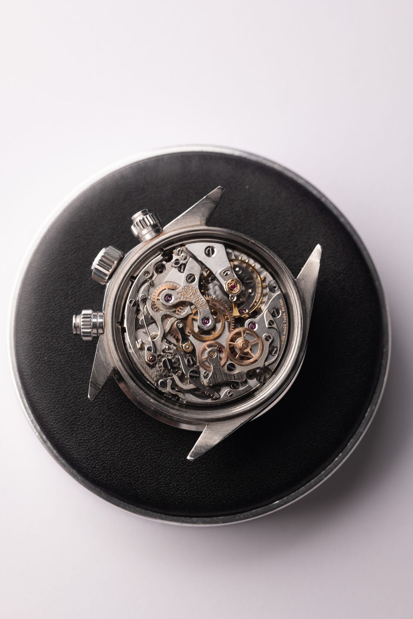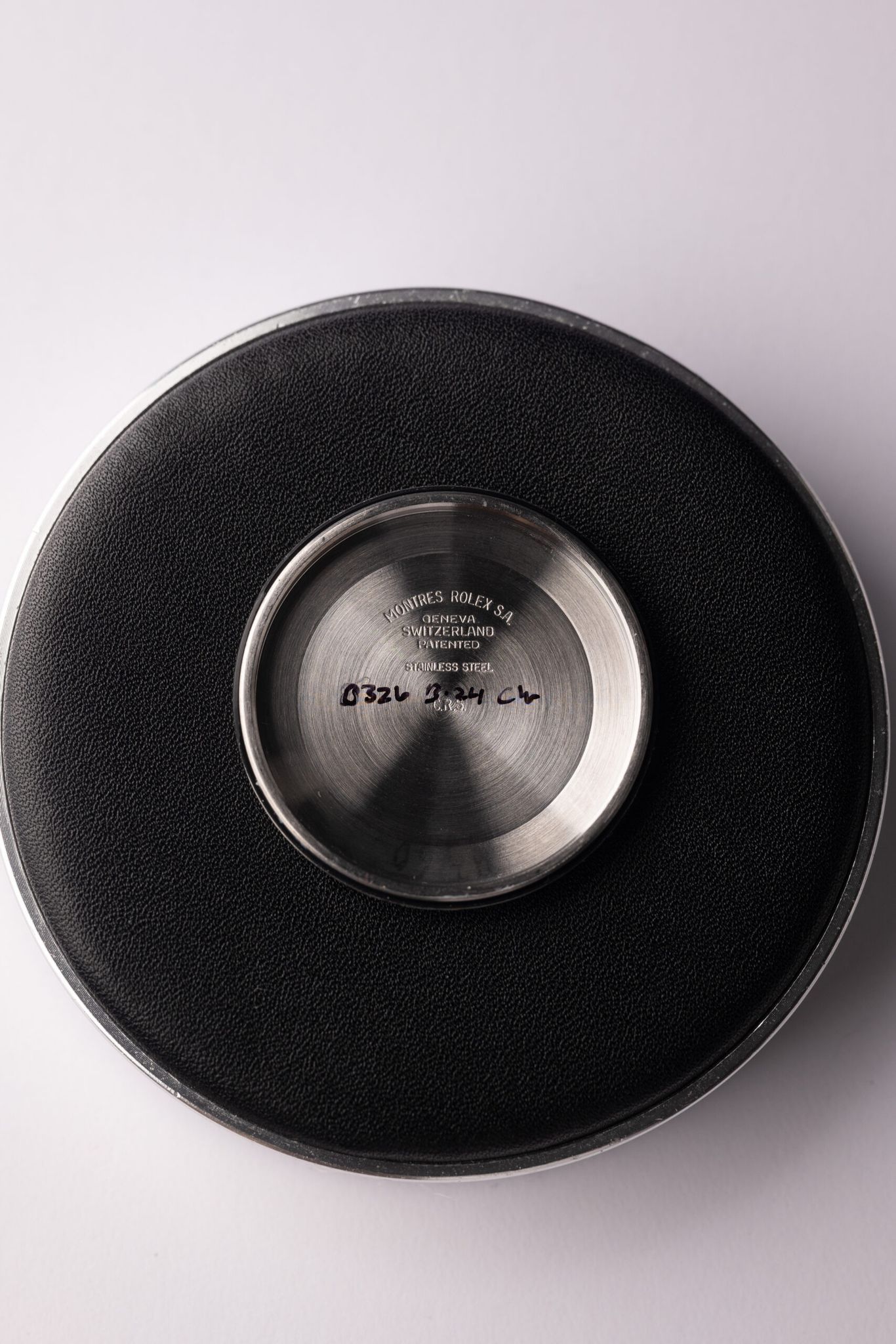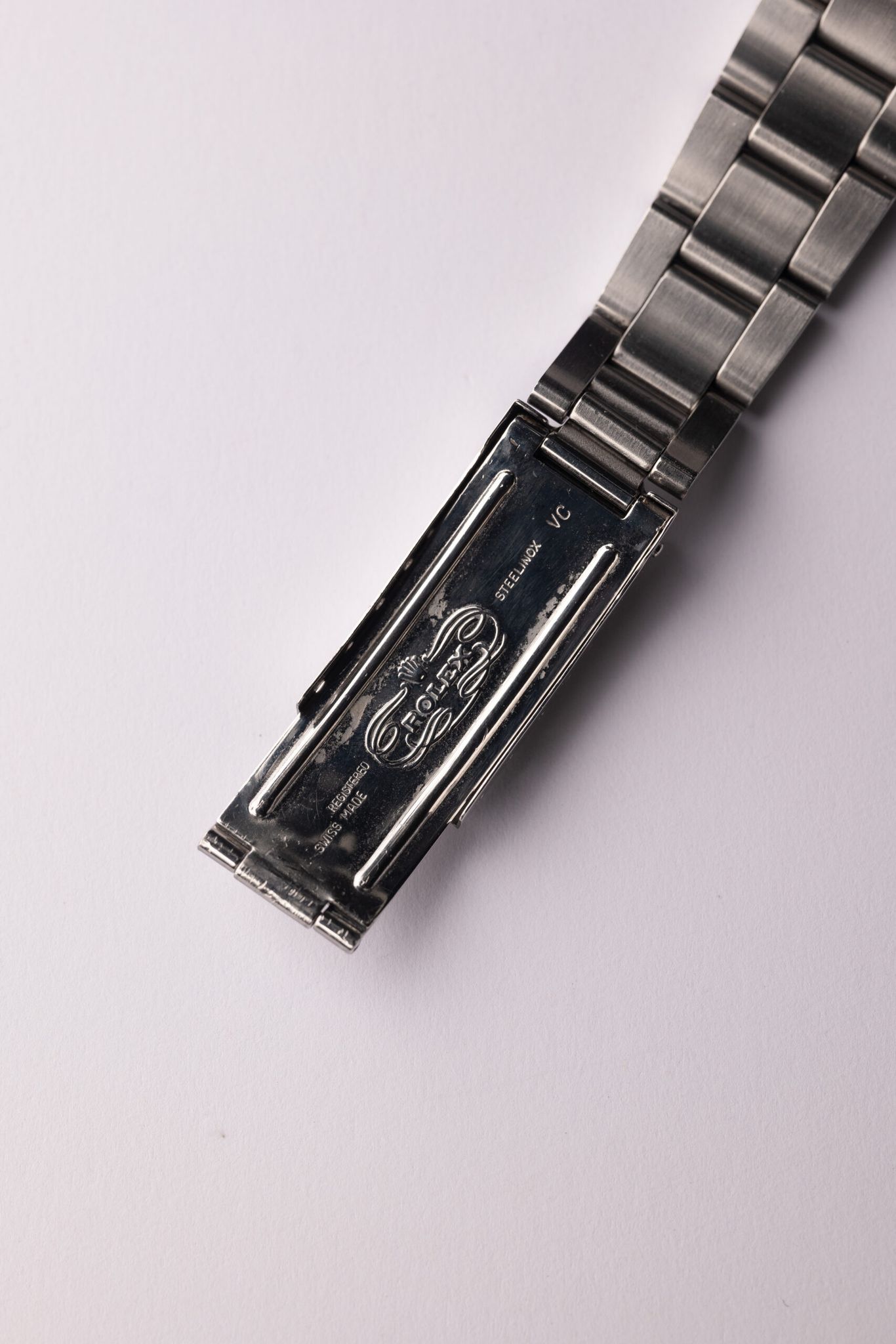 With the signature “Big Red” text, black acrylic tachometer bezel, and chunky screw down pushers, the 6263 is considered the blueprint for all modern Daytonas. Rolex made many variants of the 4-digit Daytonas from the Pre-Daytona Dato-Compax to exotic Paul Newman dials, but this Big Red, black with silver contrasting sundials, is the version that we associate with the marquee. This cosmograph comes excellent with long, thick lugs. These pushers have been replaced with service parts as the original gaskets were a problematic source of water intrusion. Partial lume loss at 3 and 5 o’clock is common, but this watch is an otherwise fantastic find.