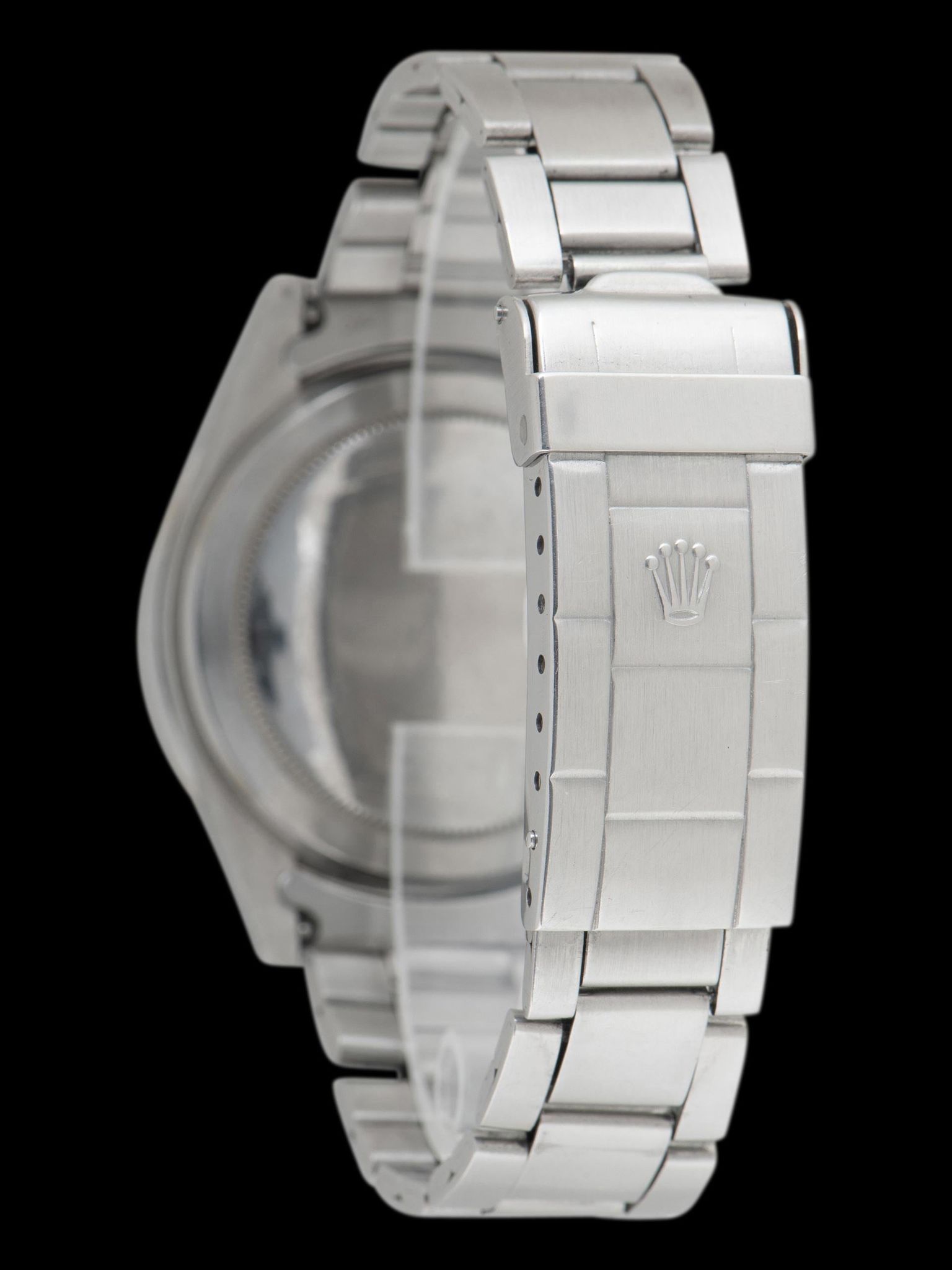 The strong case retains thick and symmetrical lugs that exhibit minimal signs of previous use and minimal evidence of previous polishing present. The original Mk III "fat font" bezel insert is in exceptional condition featuring a deep grey color with no notable signs of use while retaining the tritium pearl which matches the dial patina nicely. The original Rolex 9315 folded-link Oyster bracelet with 380 end pieces retains 12 links that show light stretch and will fit up to a 7 1/2-inch wrist.