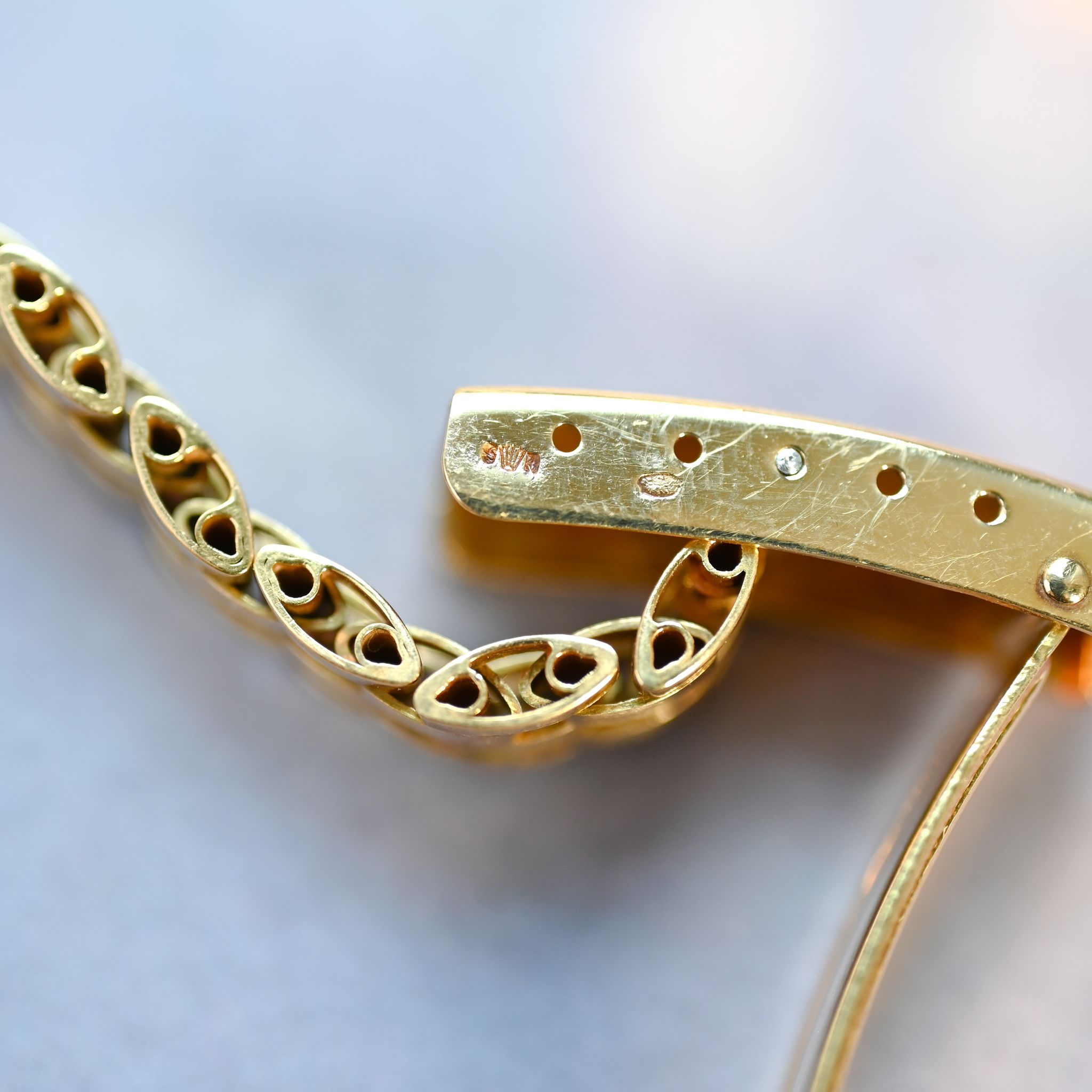 The hallmarks visible on the caseback represent an owl, and on the buckle, a weevil, a sign that this piece was imported into France for its original sale.