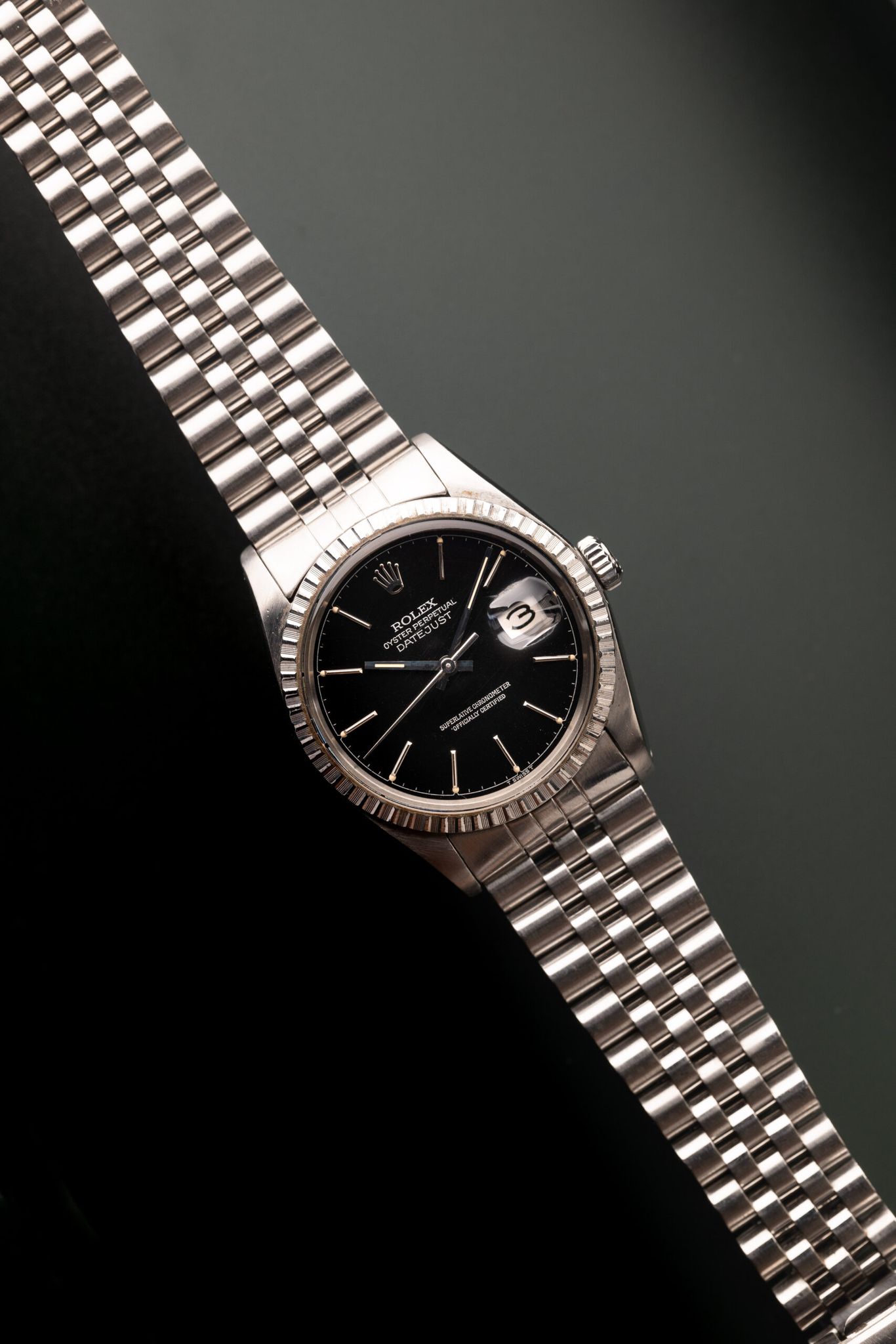Cal. 3035 animated, Rolex’s first quickset date, the Datejust’s everyday ease-of-wear is made easy-to-use. Dial of black, batons at hour, wrapped in Jubilee. A fine watch that pairs well with any occasion.
