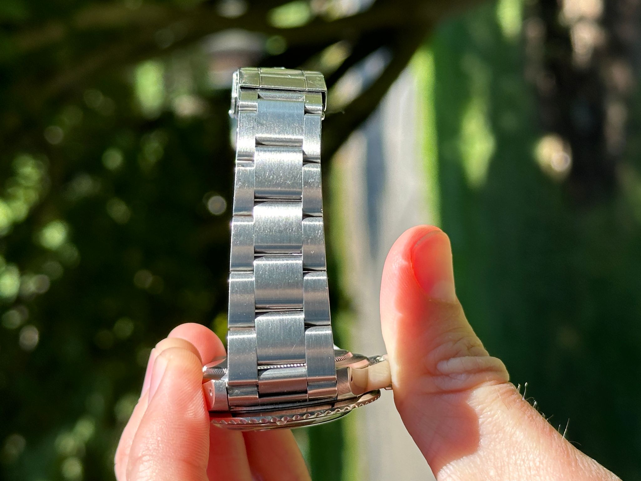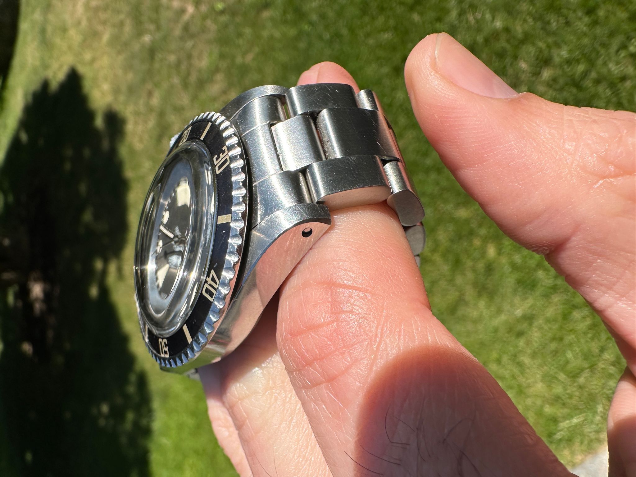 The numerals and hashes on the Mk III bezel insert have aged to a honey color, which pairs nicely with the subtle warmth of the dial.