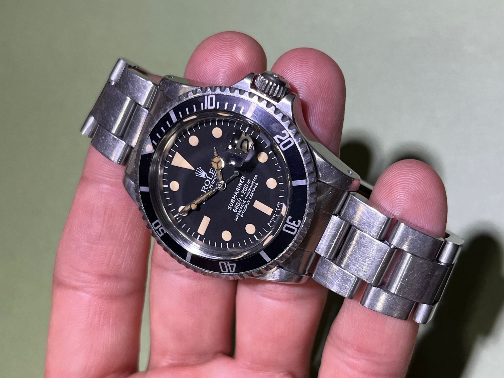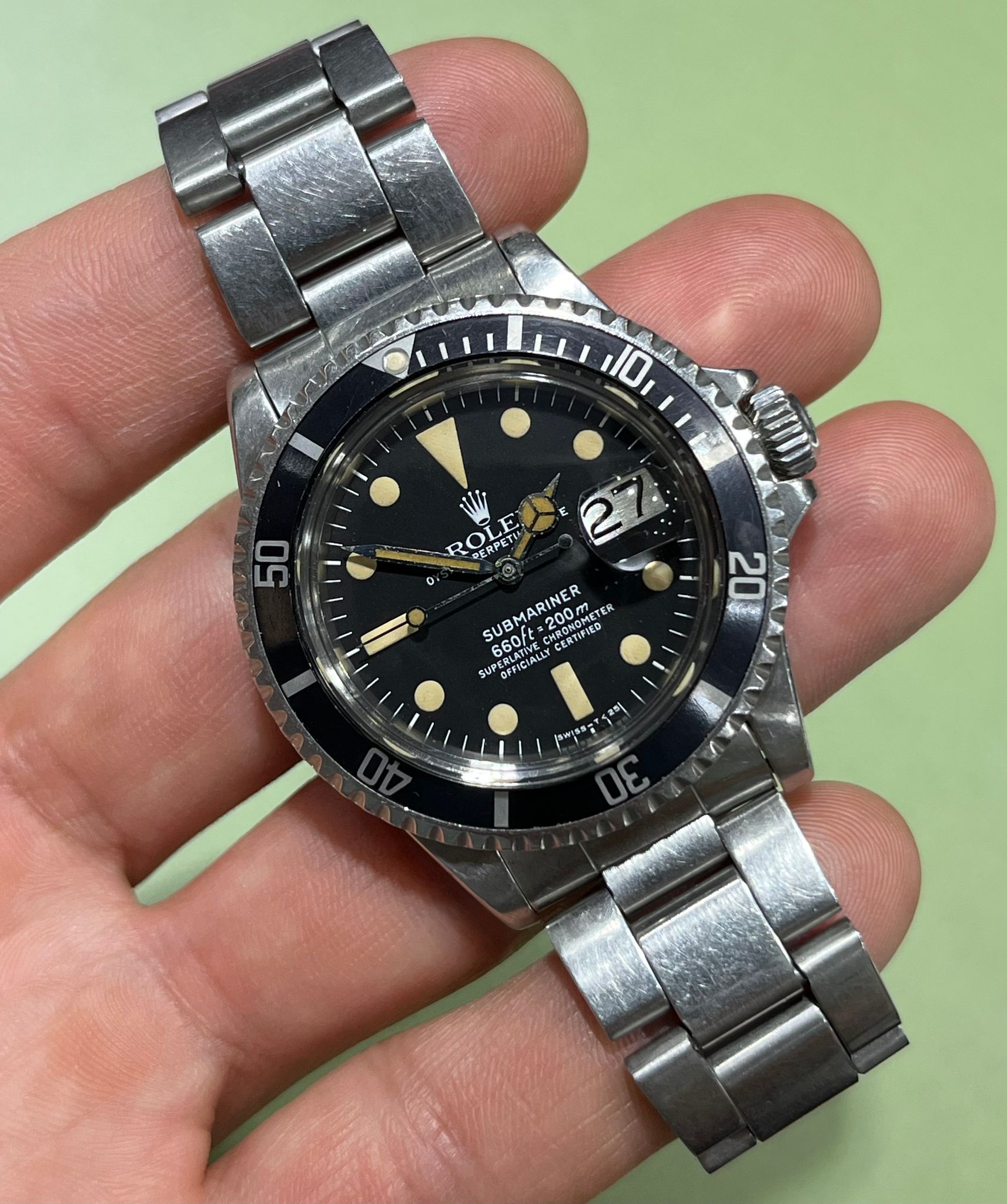 Today's example comes to us with an excellent MK1 dial with nice thick hour plots and excellent patina. The case is thick with even lugs. The insert shows light to minimal wear and has its matching pip. The hands are a shade darker and the bracelet has 11 links total along with its diver extension and show minimal stretch. This set is accompanied by its Serpico and Laino dealer punched papers.