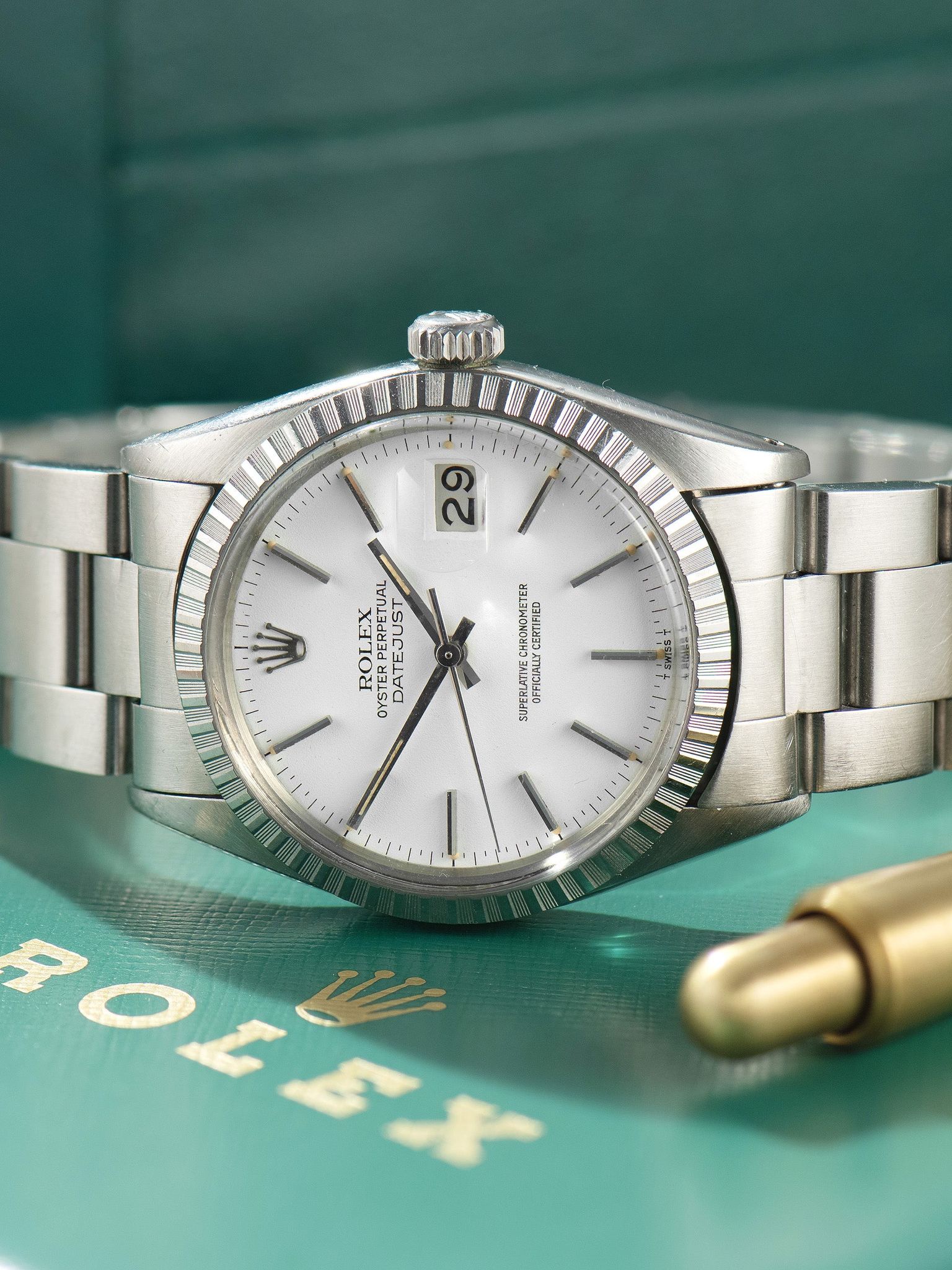 One of the largest evolutions for the Rolex Datejust model lineup was at the end of the 1970s with the introduction of the first "flat dial" Datejust. These models introduced upgraded bracelets, and the movement was vastly upgraded to the Rolex cal. 3035 quick-set movement. These Datejust variations are often referred to as being transitional as they still feature the more classic acrylic crystals and tritium lume, whilst housing many advancements.