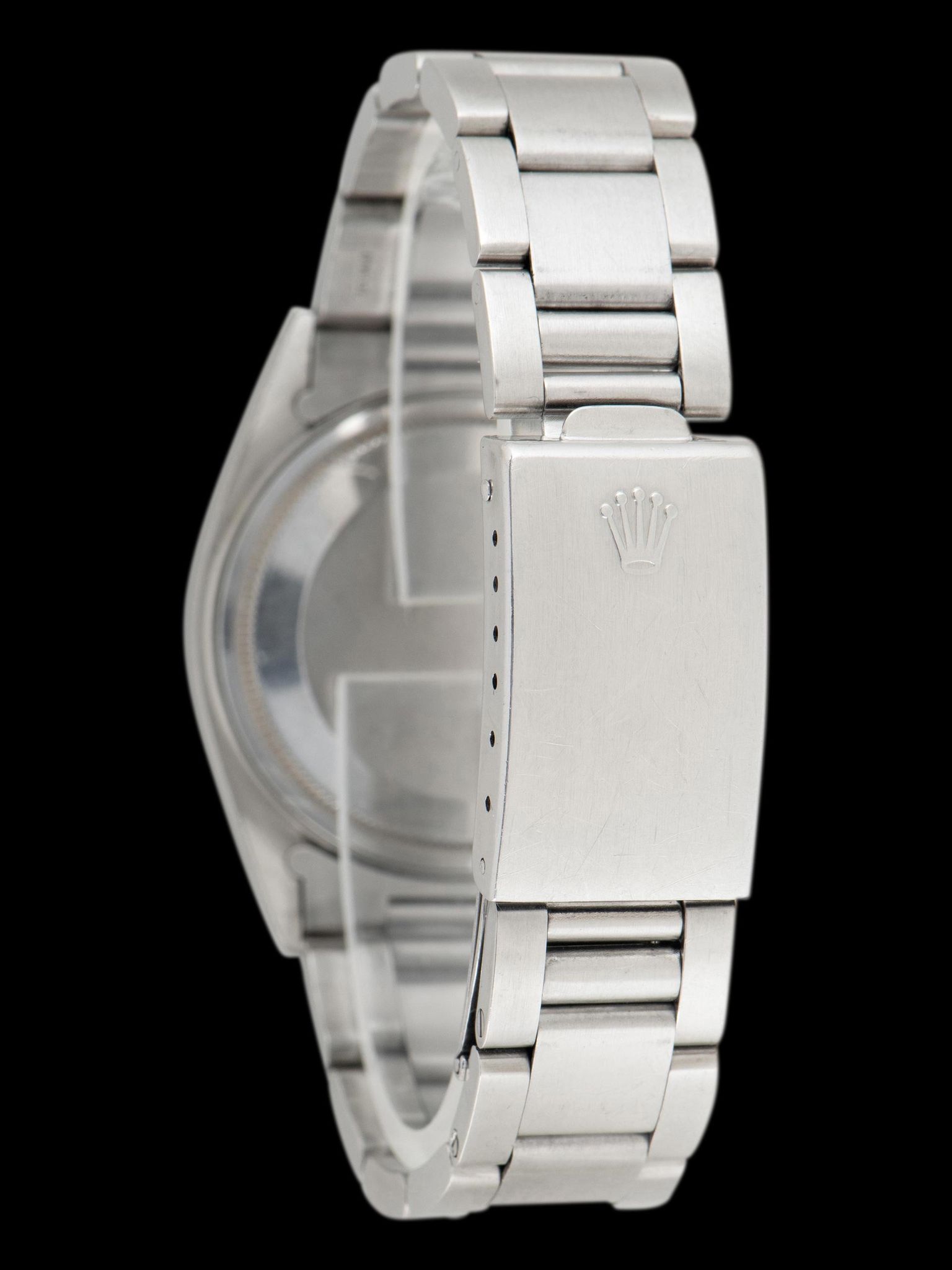 The strong case retains thick and symmetrical lugs that show gentle wear with minimal evidence of being previously polished present. The stainless steel engine-turned bezel features crisp edges and finishing with light signs of use present. The Rolex 78360 Oyster Bracelet with 558 end pieces is era-correct and was sourced with the watch. The bracelet retains 12 links that show light stretch and will fit up to a 7 1/4-inch wrist.