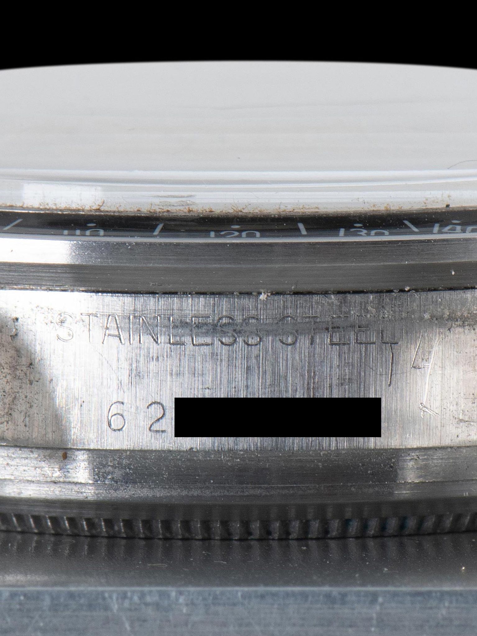 The impressive case retains very thick, crisp, and symmetrical lugs, exhibiting only nominal evidence of being previously polished, with light signs of use. The Mk III bezel is excellent, with no cracks or signs of delamination present. The Mk II screw-down pushers are original to the watch. The original Rolex 78350 Oyster bracelet with 571 end pieces retains 11 links that show nominal stretch and will fit up to a 6.75-inch wrist.