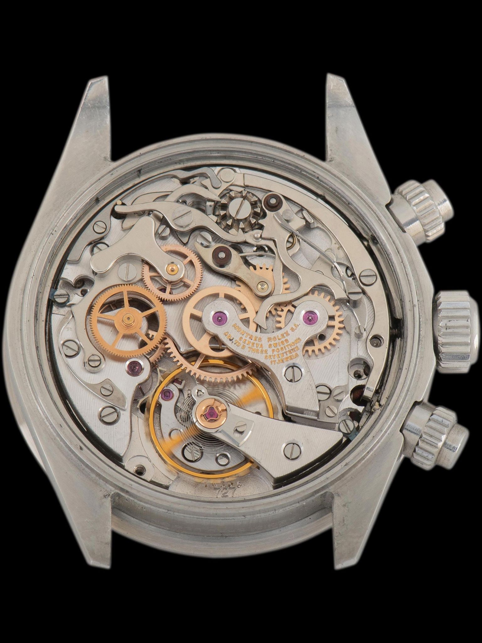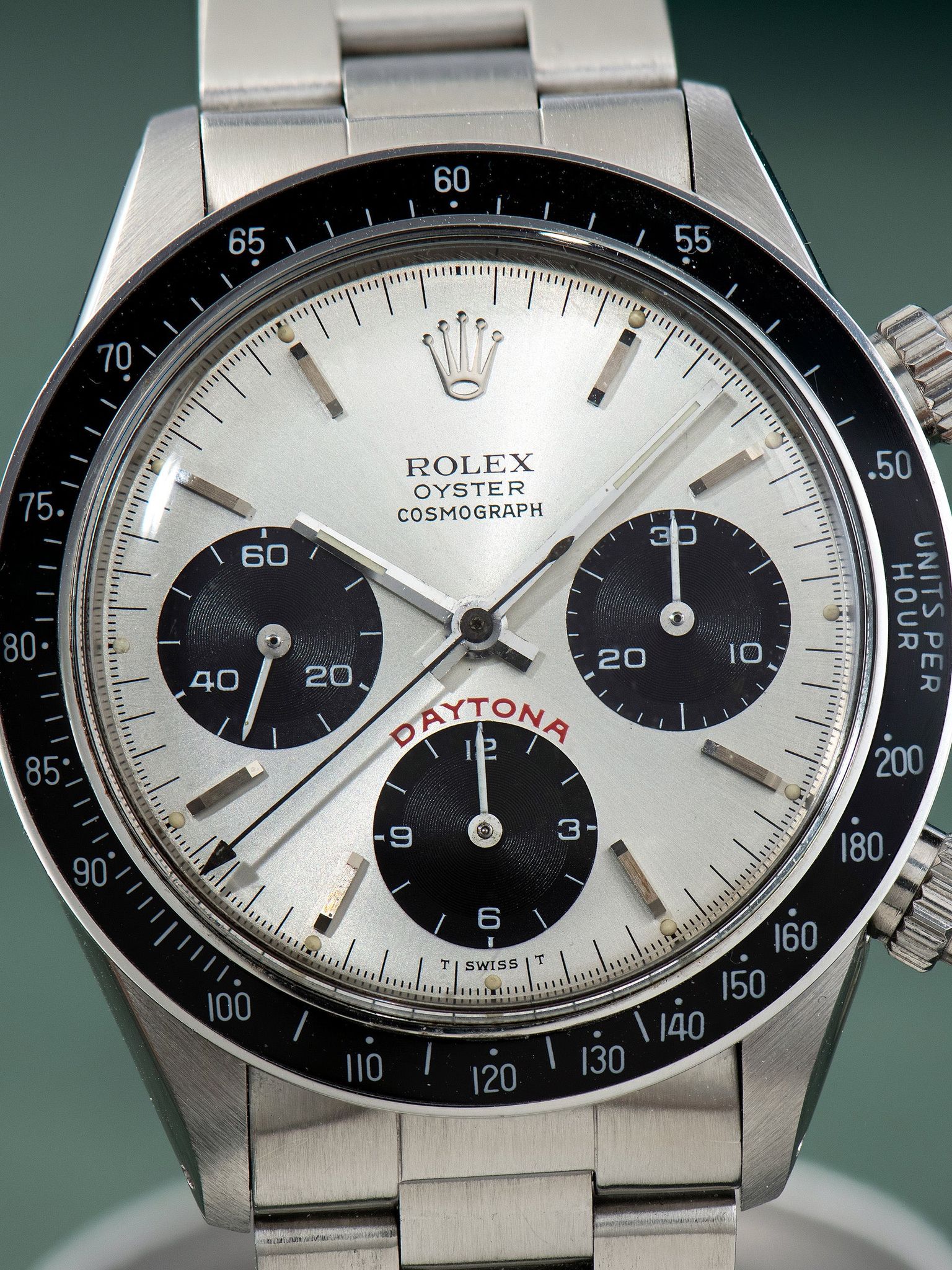 The Daytona saw its first major update in late 1969 when Rolex decided to bring its Oyster technology to the Cosmograph. Accompanying the "Oyster" text on the dial, the case crown was upgraded to a 7mm trip-lock crown, and the most significant upgrade was the introduction of the screw-down chronograph pushers, which is a function we still see today in the modern Daytona offering from Rolex. While the case size of this new model was the same as its predecessor at 36mm, the larger crown and more robust pushers greatly increase the watch's wrist presence.