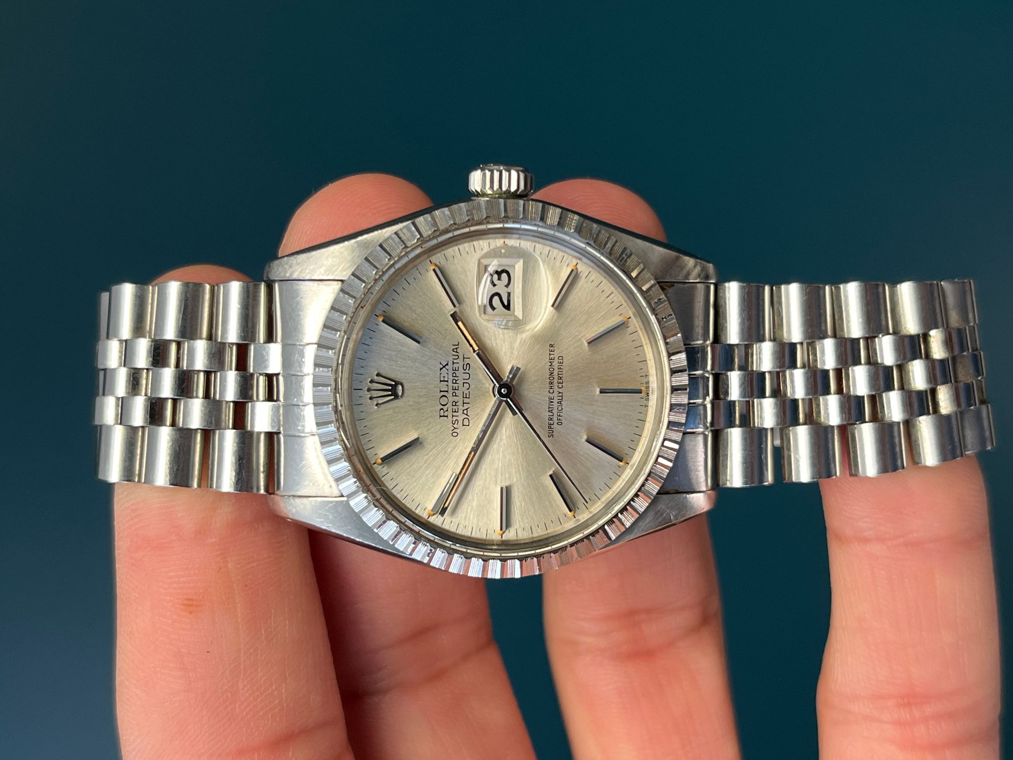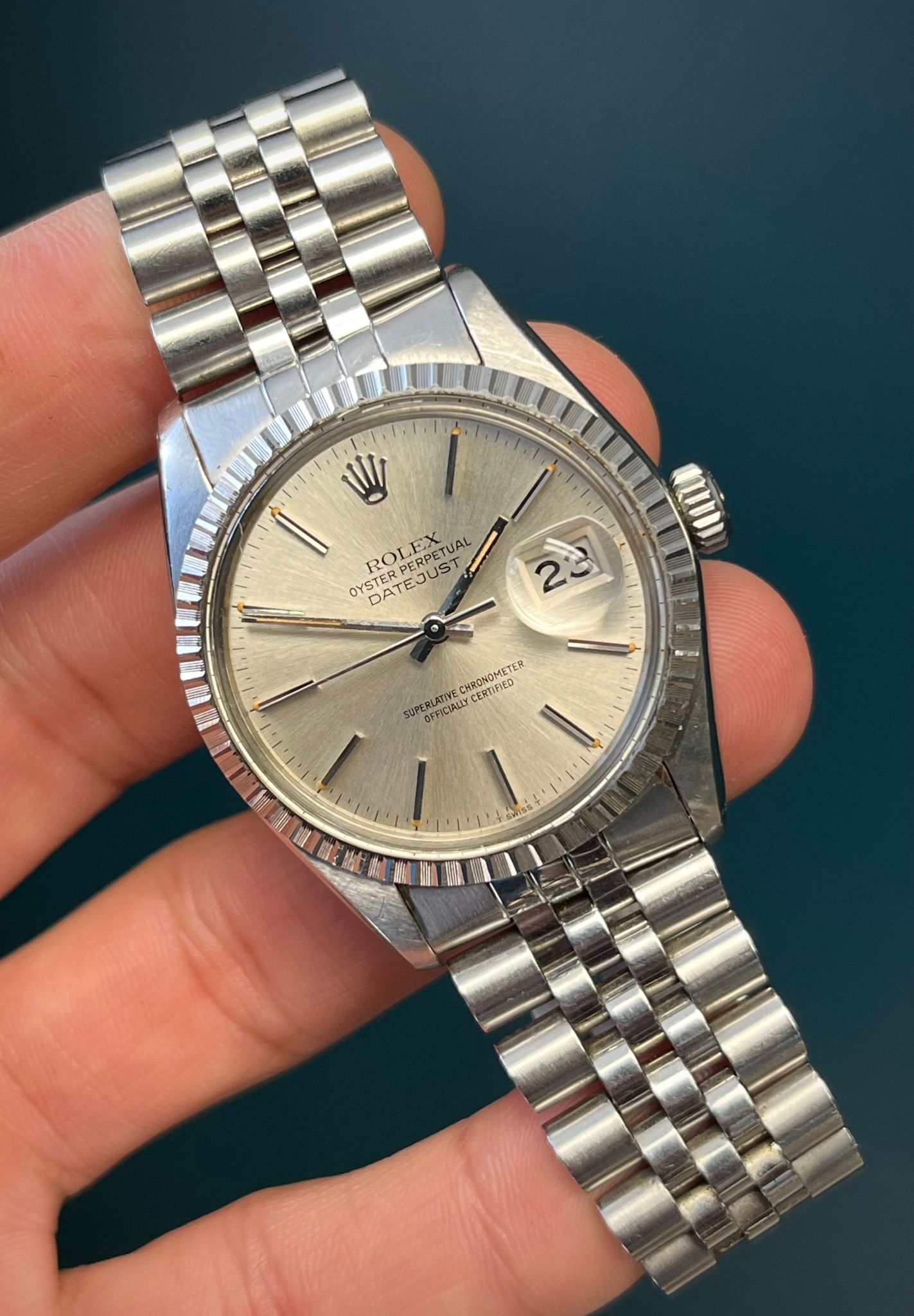 The Vintage Rolex Datejust Reference 16030 is a timeless embodiment of Rolex's enduring legacy of elegance and precision. This distinguished timepiece features a 36mm stainless steel case paired with a sophisticated engine-turned bezel, offering a unique blend of durability and refined aesthetics. The classic silver dial is adorned with luminous hour markers and the iconic date window at 3 o'clock, magnified by Rolex's signature Cyclops lens for enhanced readability. Powered by the reliable automatic Caliber 3035 movement, the Reference 16030 ensures exceptional accuracy and a smooth, quickset date function. The stainless steel Jubilee bracelet adds a touch of vintage charm while providing superior comfort and style. Perfect for both collectors and those new to luxury watches, the Vintage Rolex 16030 is a symbol of timeless sophistication and impeccable craftsmanship.