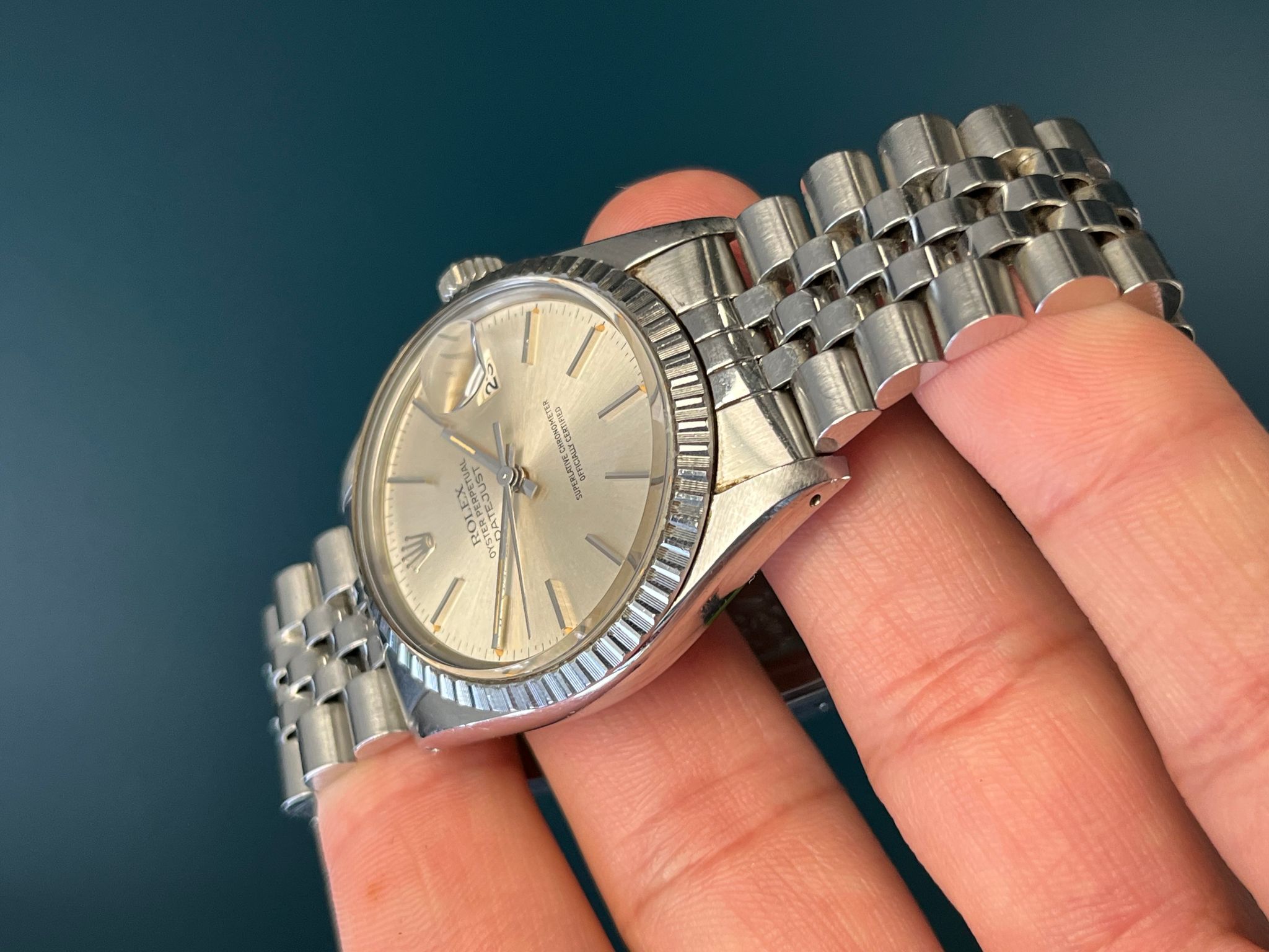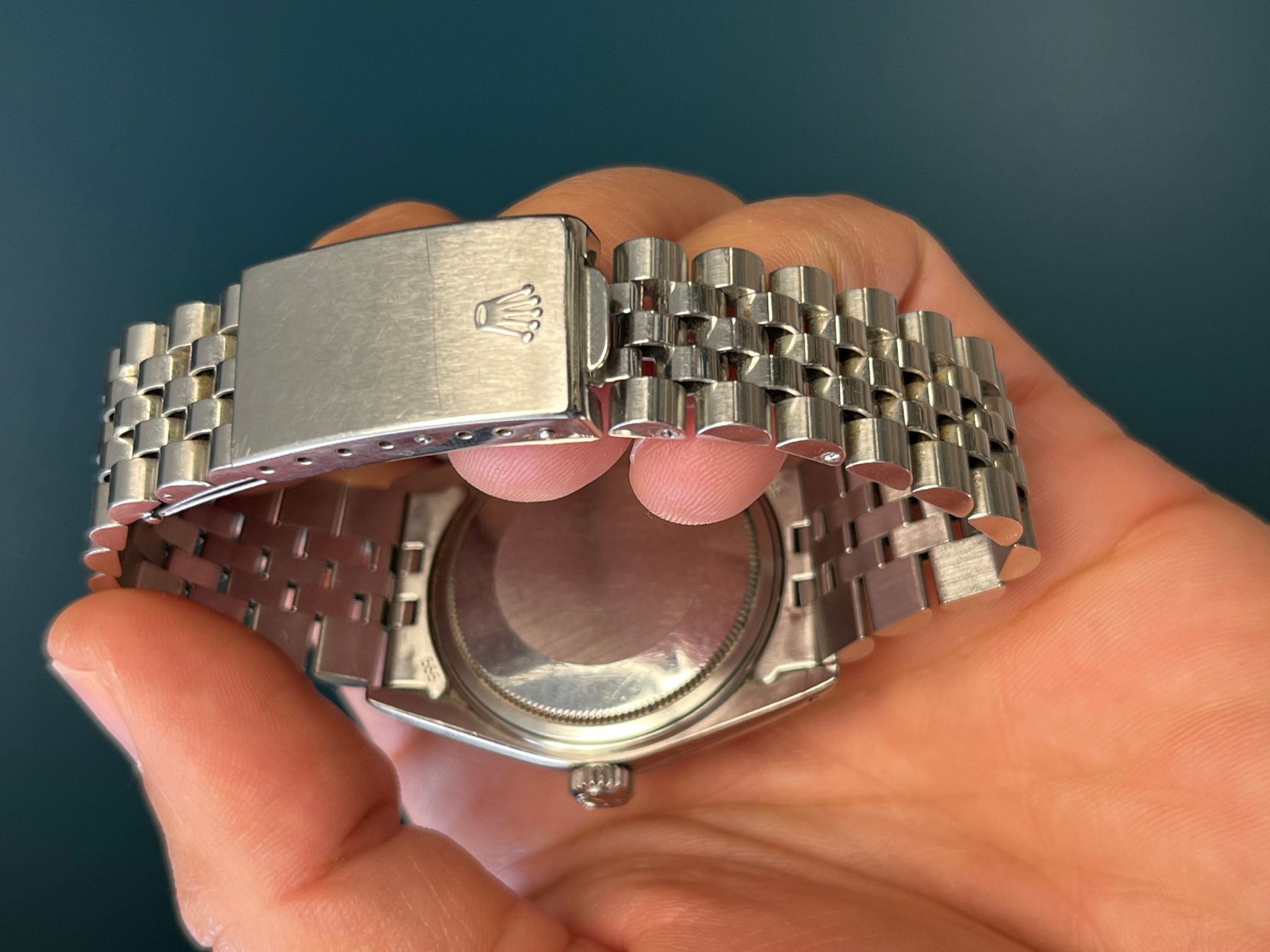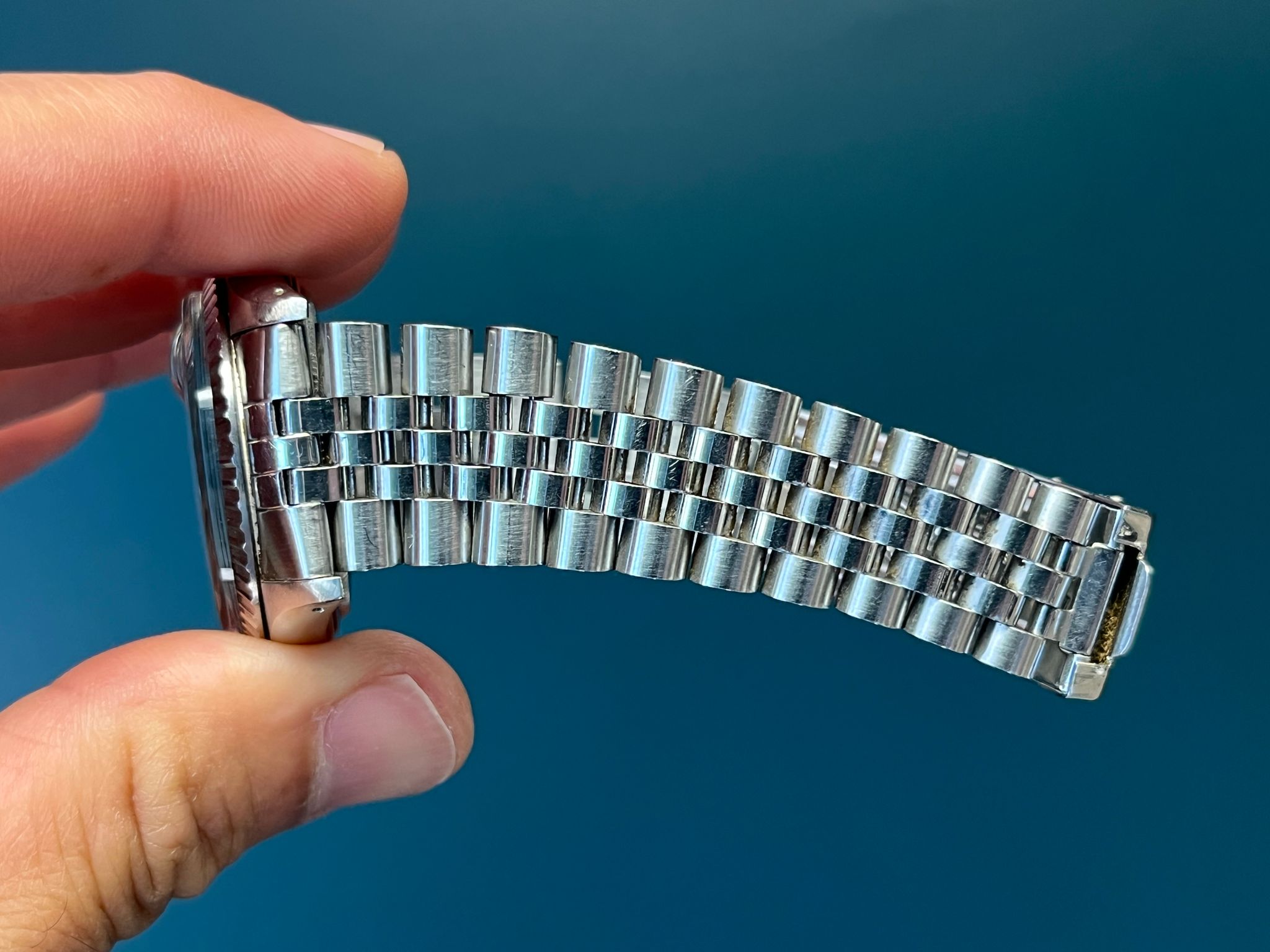 Today's example comes with an excellent silver sunburst dial with thick matching hr plots and hands. The case is excellent and has thick lugs. The bracelet is long with 4 removable links and shows minimal to no stretch. An excellent example, with a great look, at a good price!
