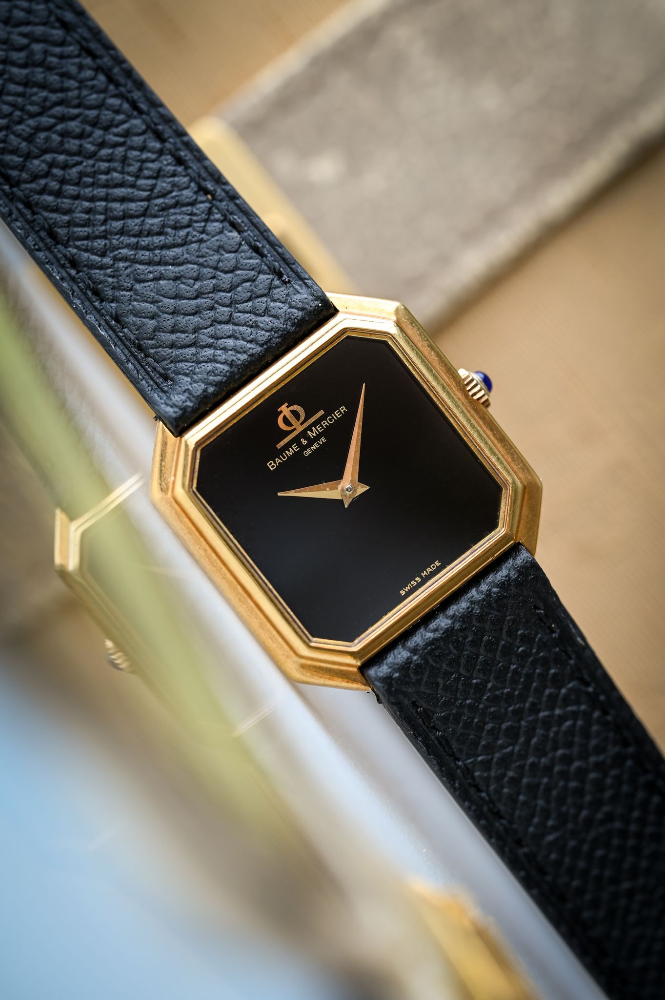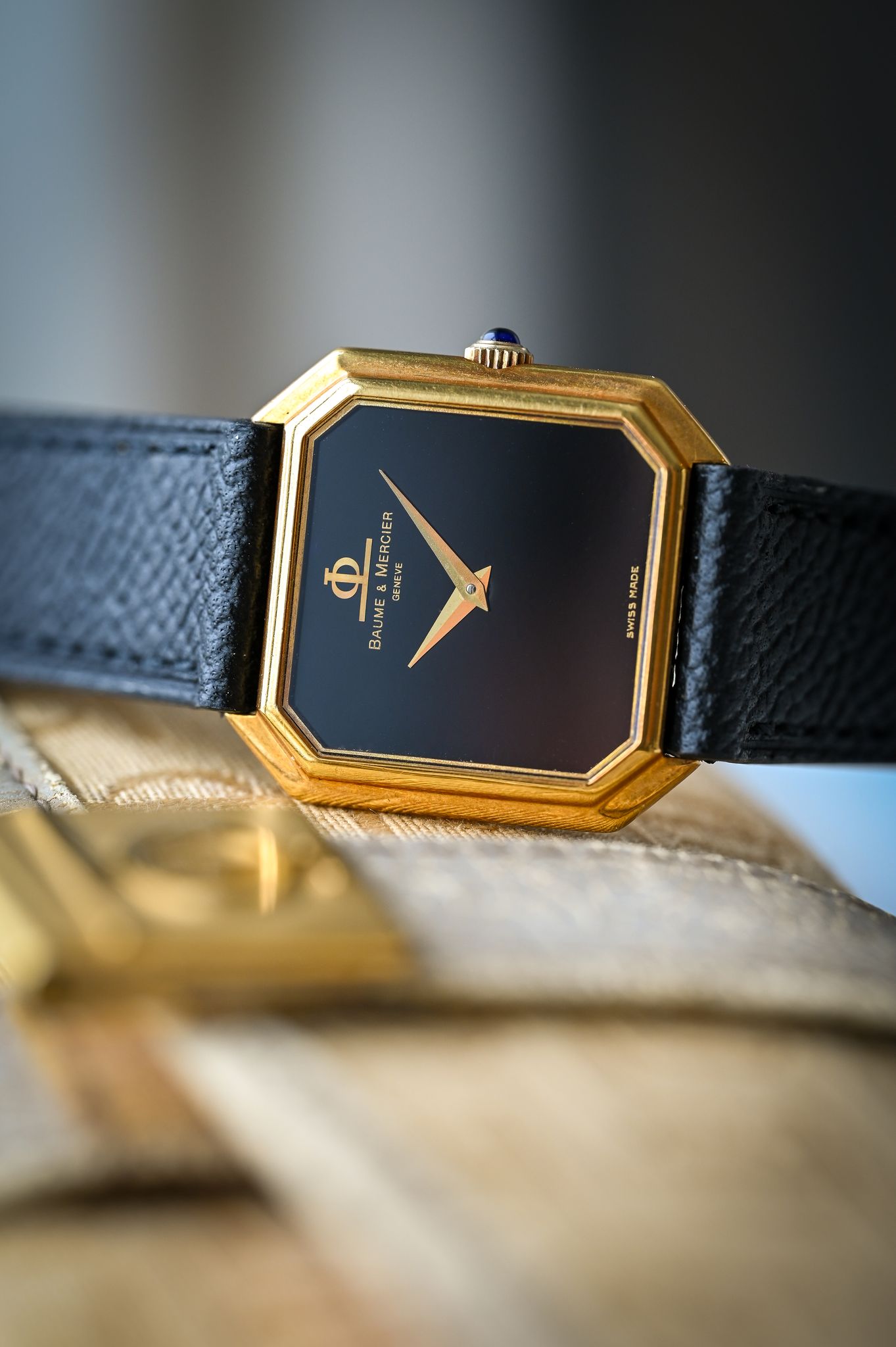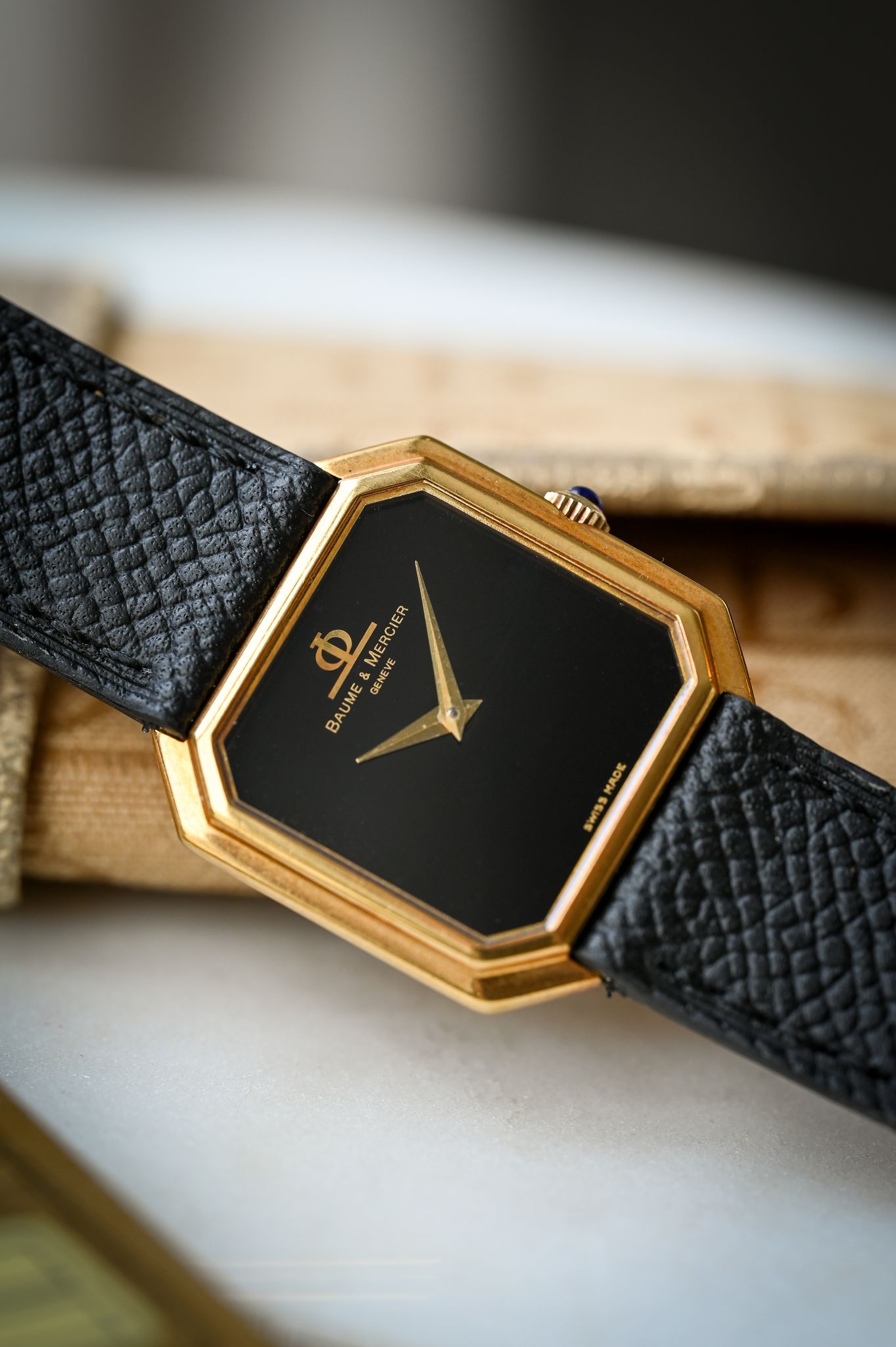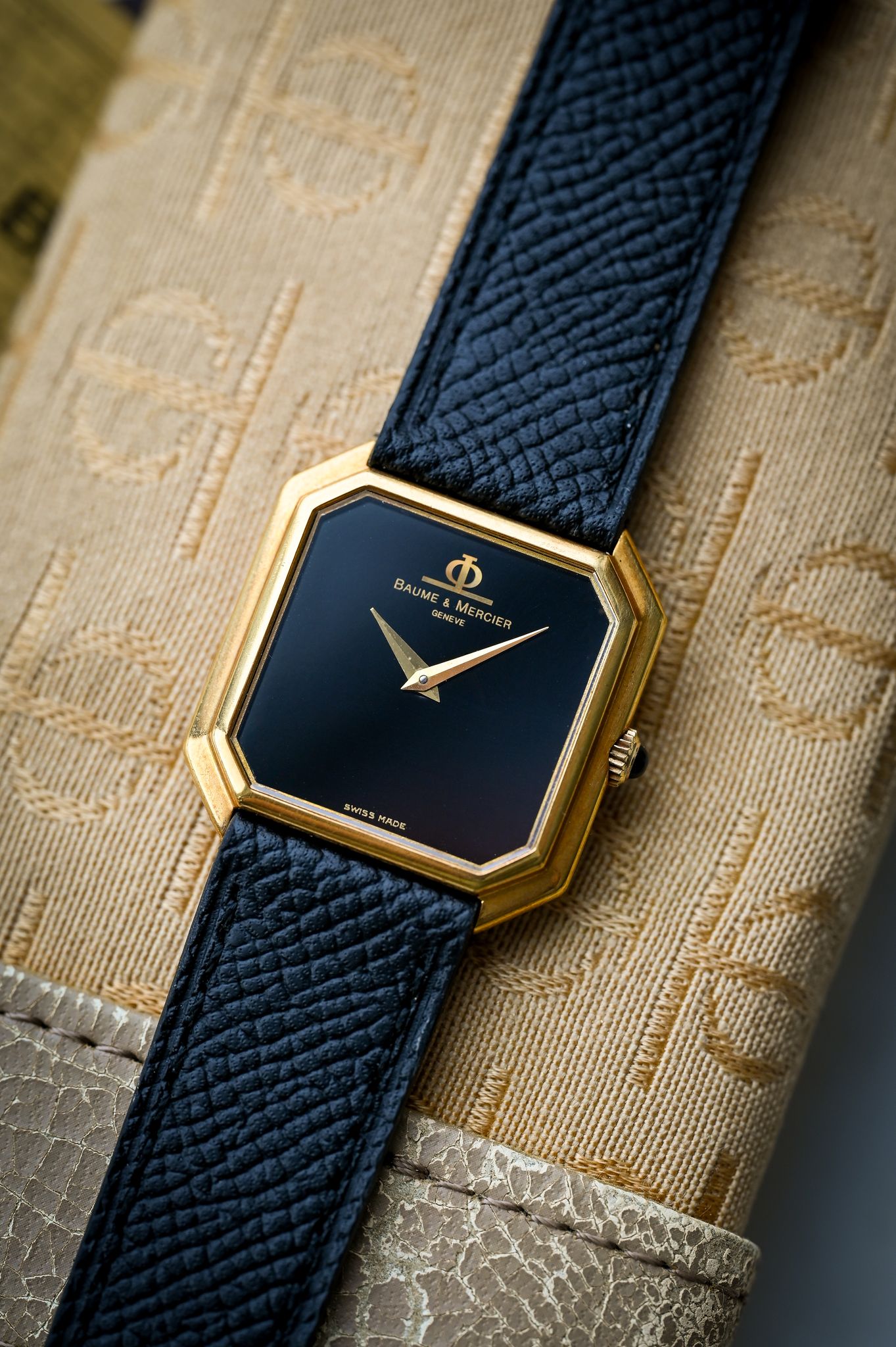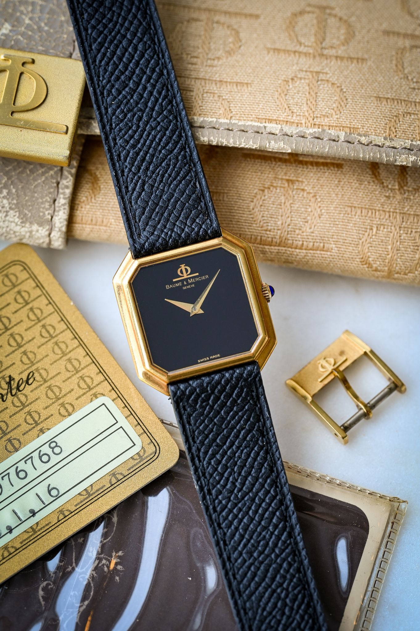 Buckle/Clasp: Original 18k yellow gold Baume et Mercier buckle.