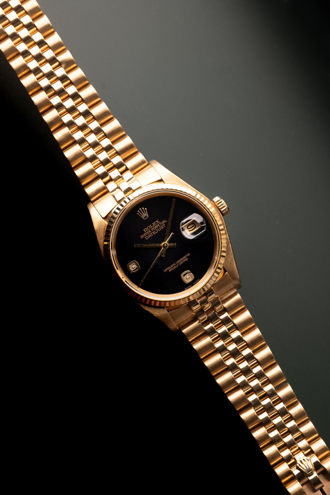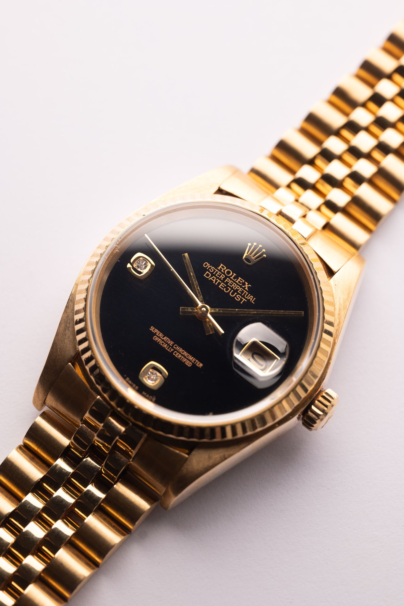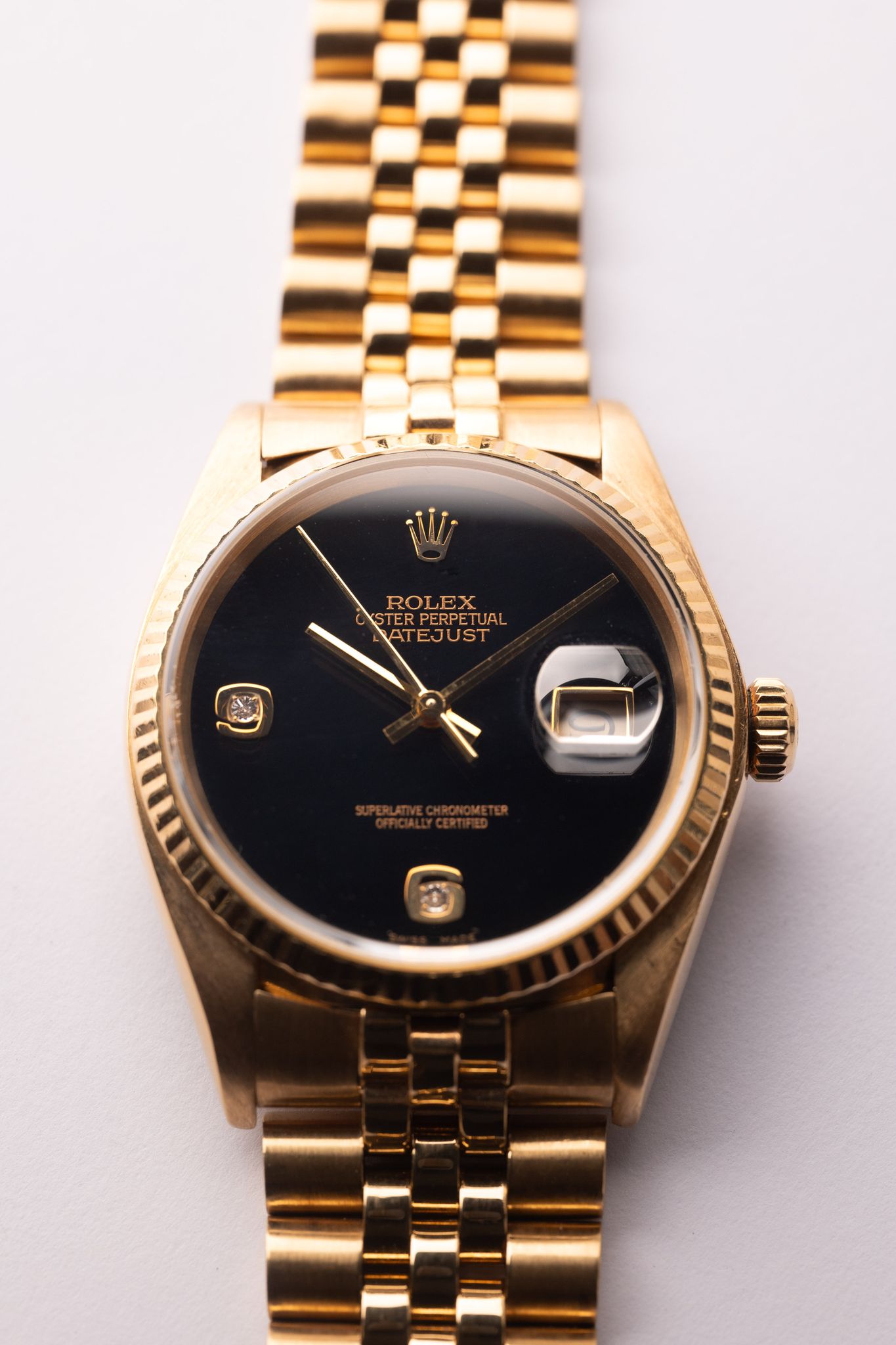 Rolex - 1980 Rolex 16018 Yellow Gold Onyx Diamond Dial Datejust