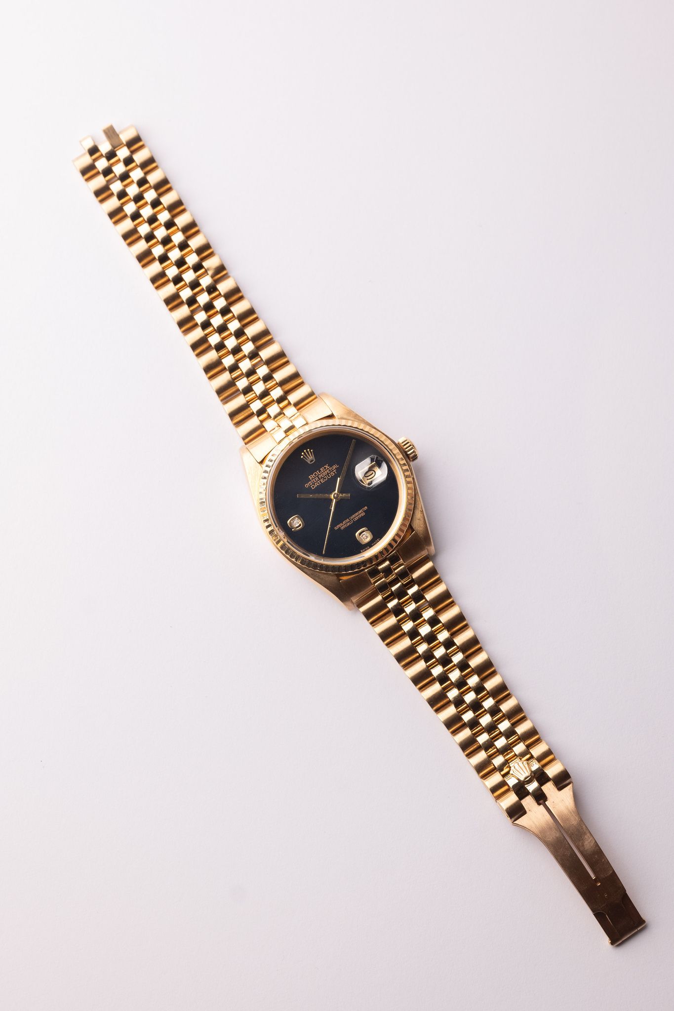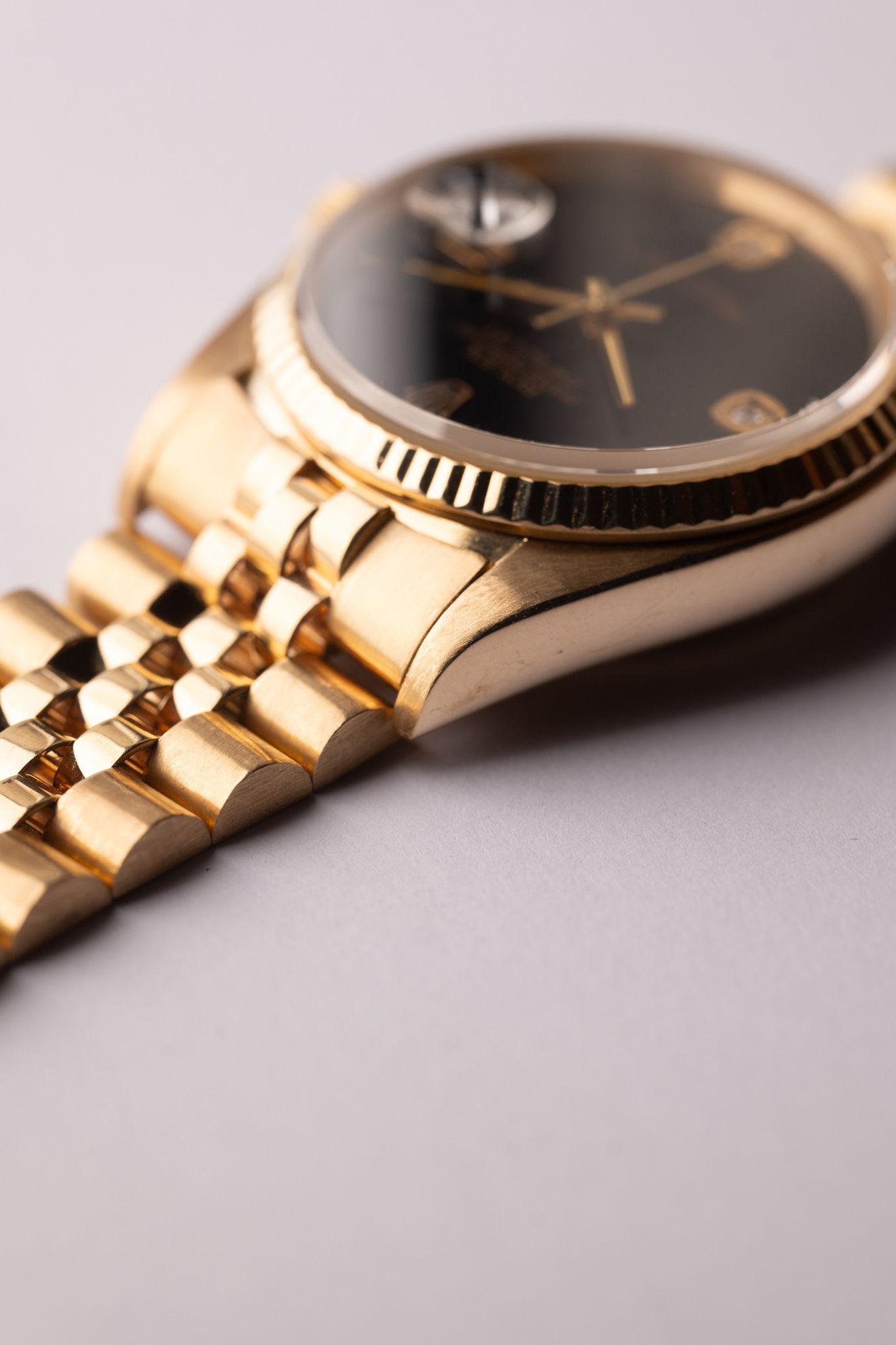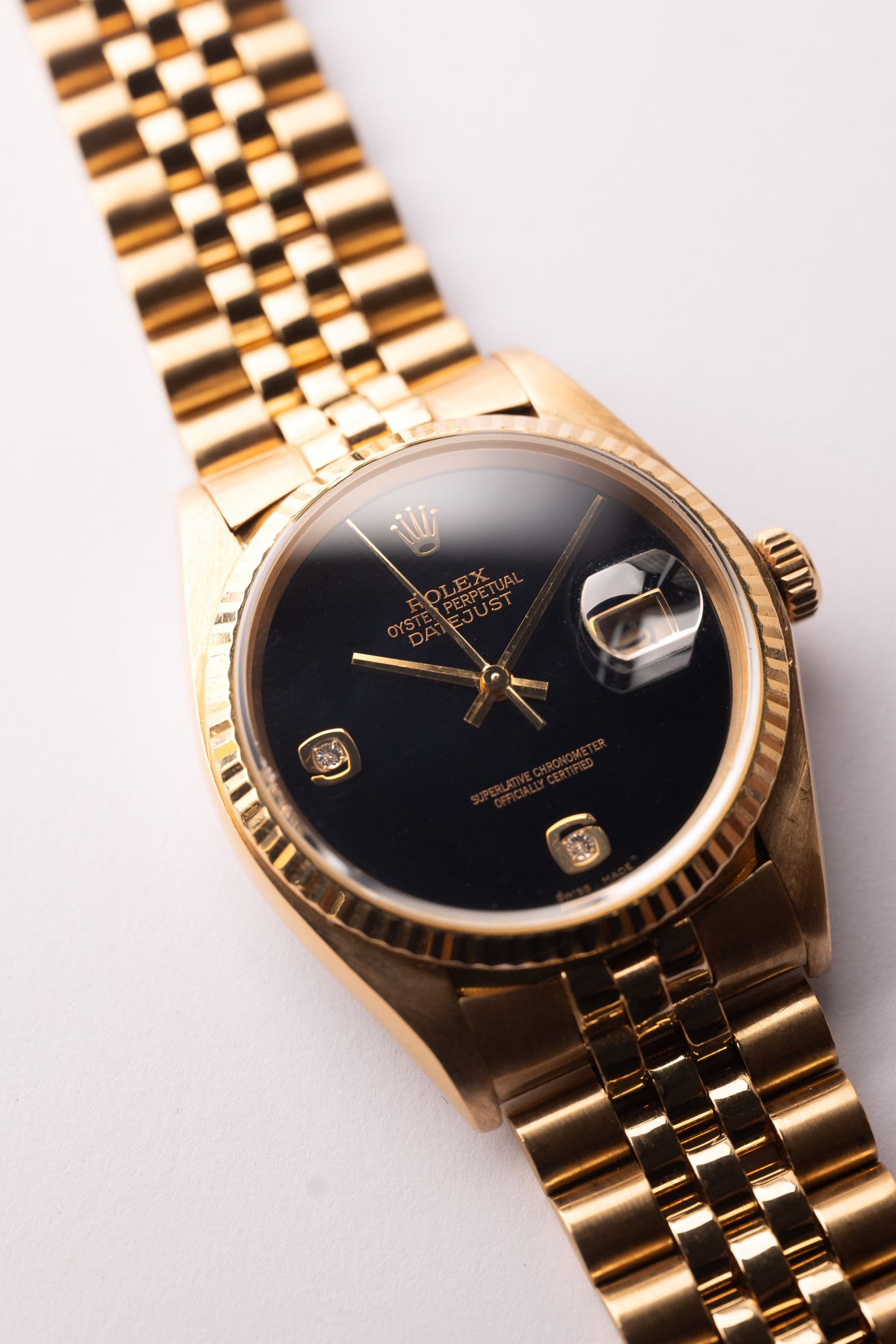 Rolex - 1980 Rolex 16018 Yellow Gold Onyx Diamond Dial Datejust