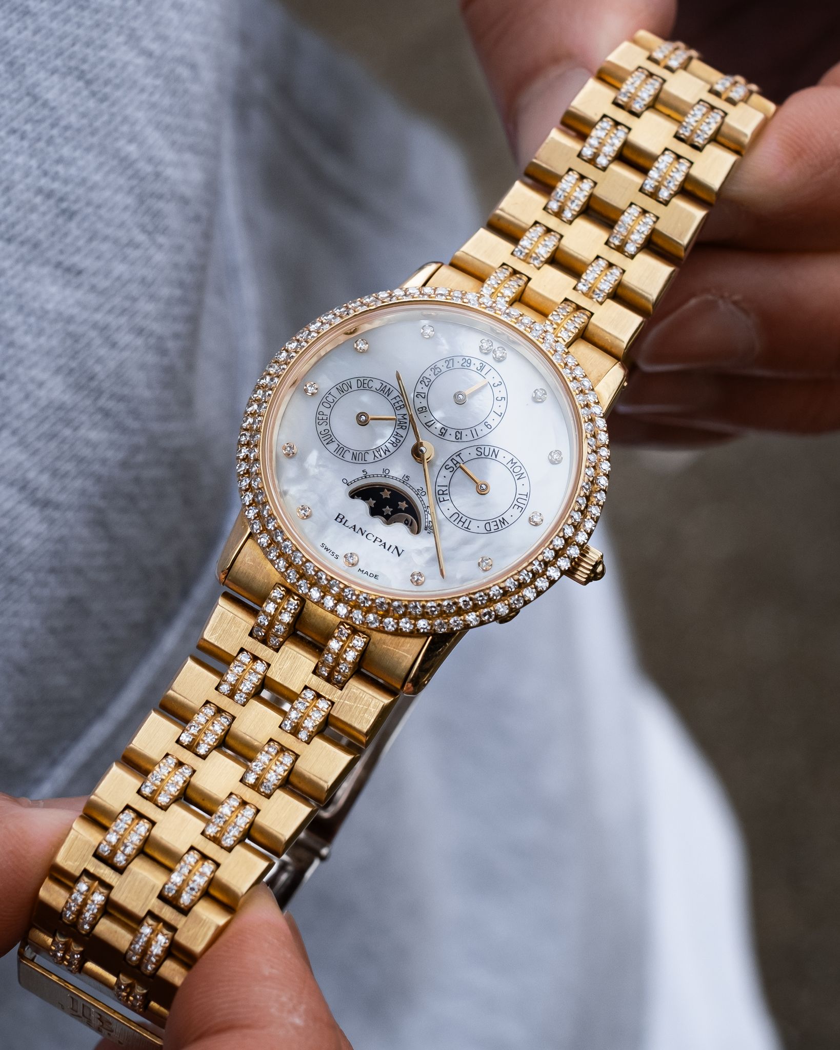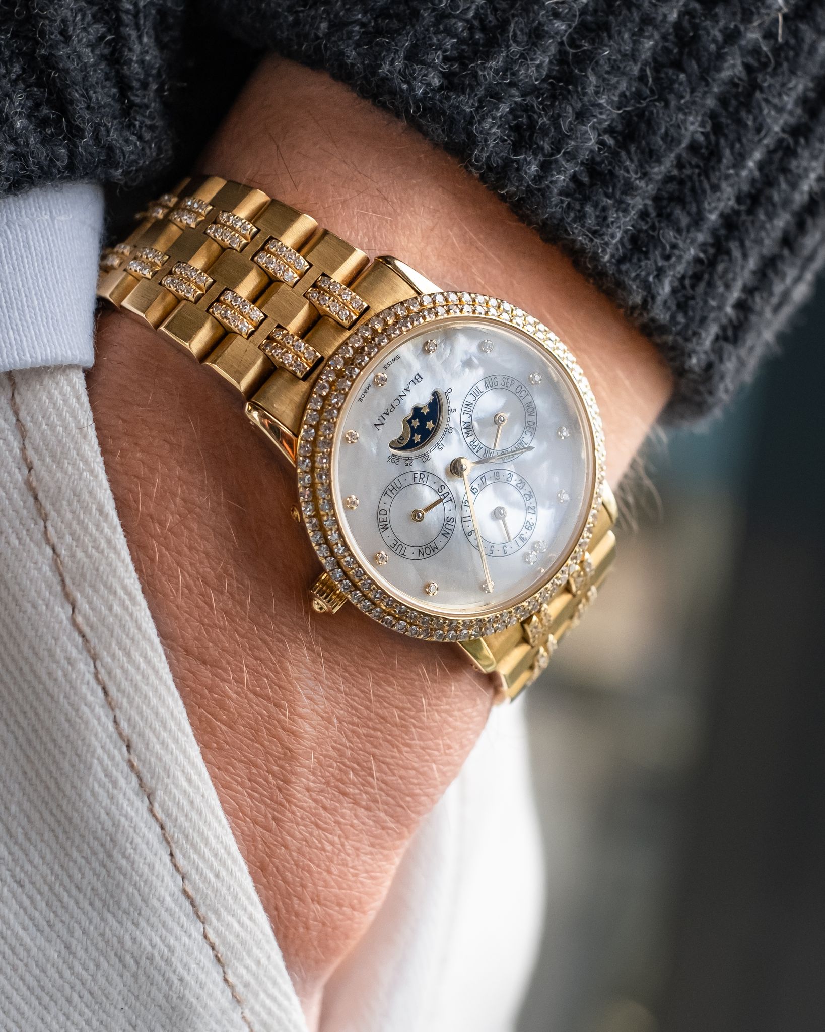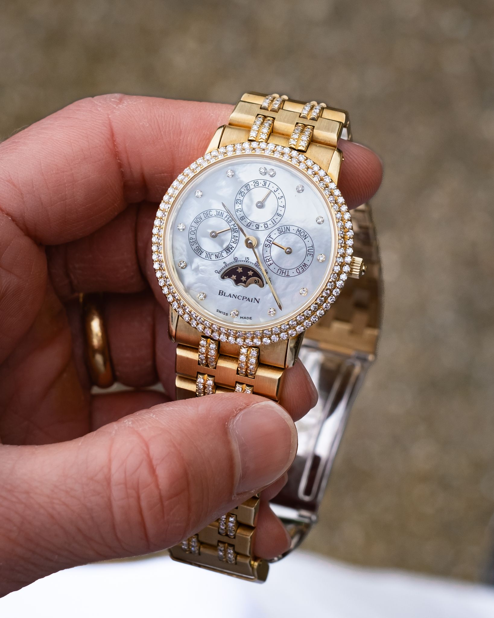 What you should know — The handset has been changed at service, again not my decision but luckily they are NOS tritium period correct so there is a silver lining. Finally it is very much worth noting that this is the only ref. 5395 I’ve ever seen in this configuration with the MOP dial and diamond setting, I am obsessed with it! The watch comes with Blancpain's own 2yr international warranty.