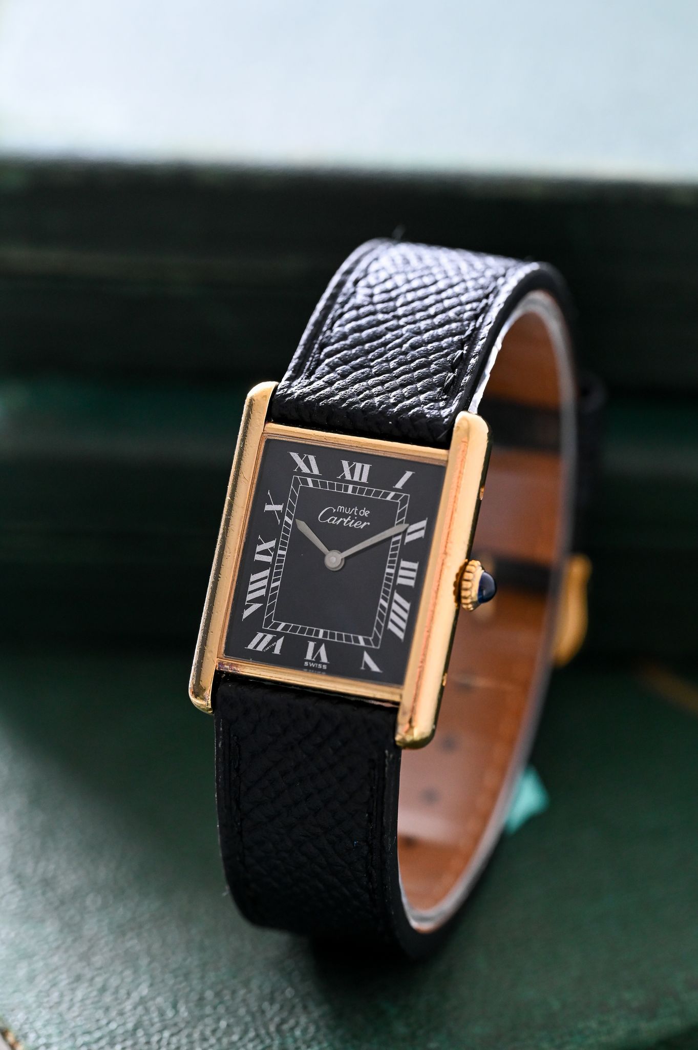 Cartier - 1980's Cartier Tank Must de cartier GM with black silver roman dial