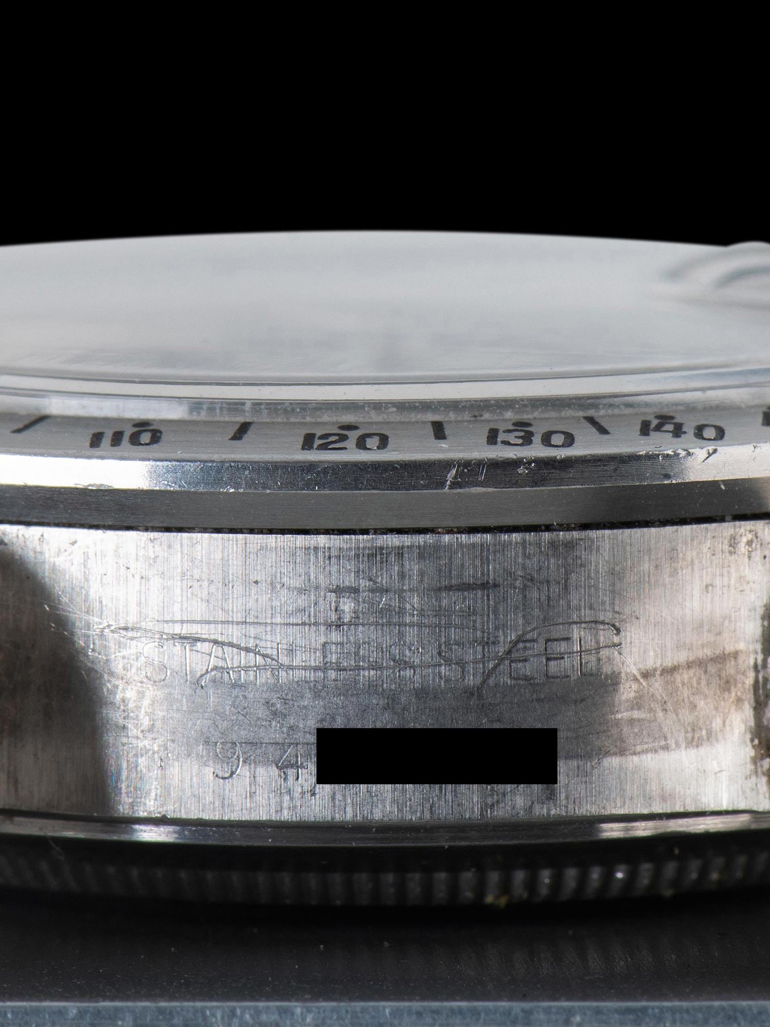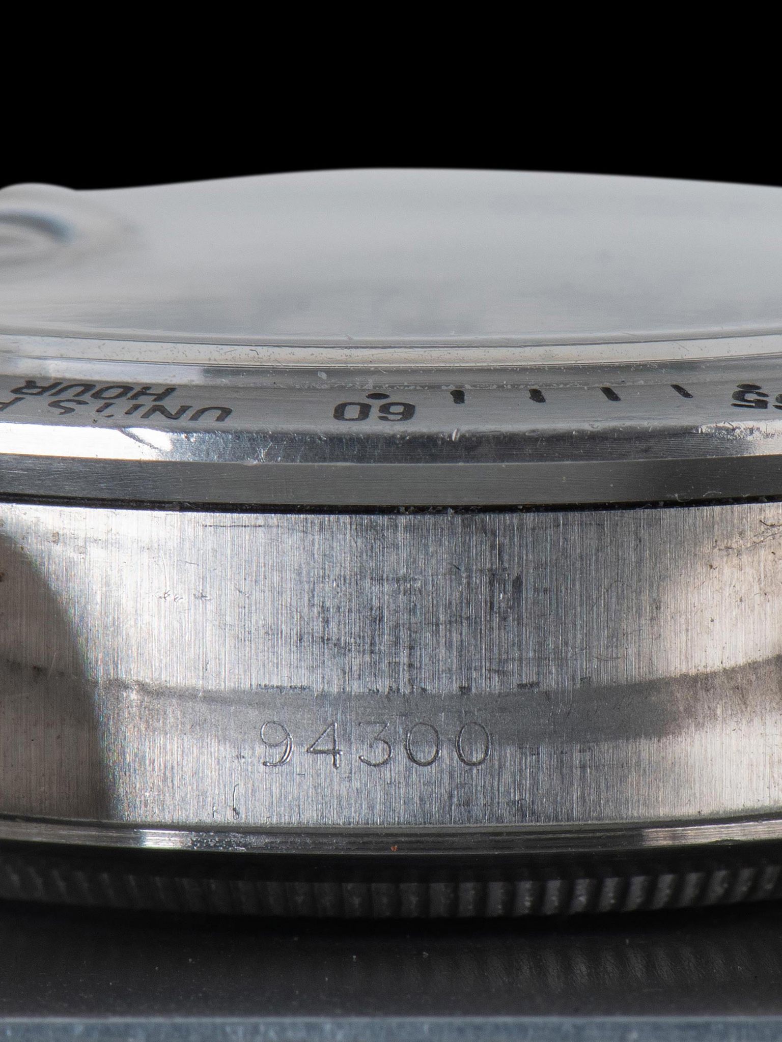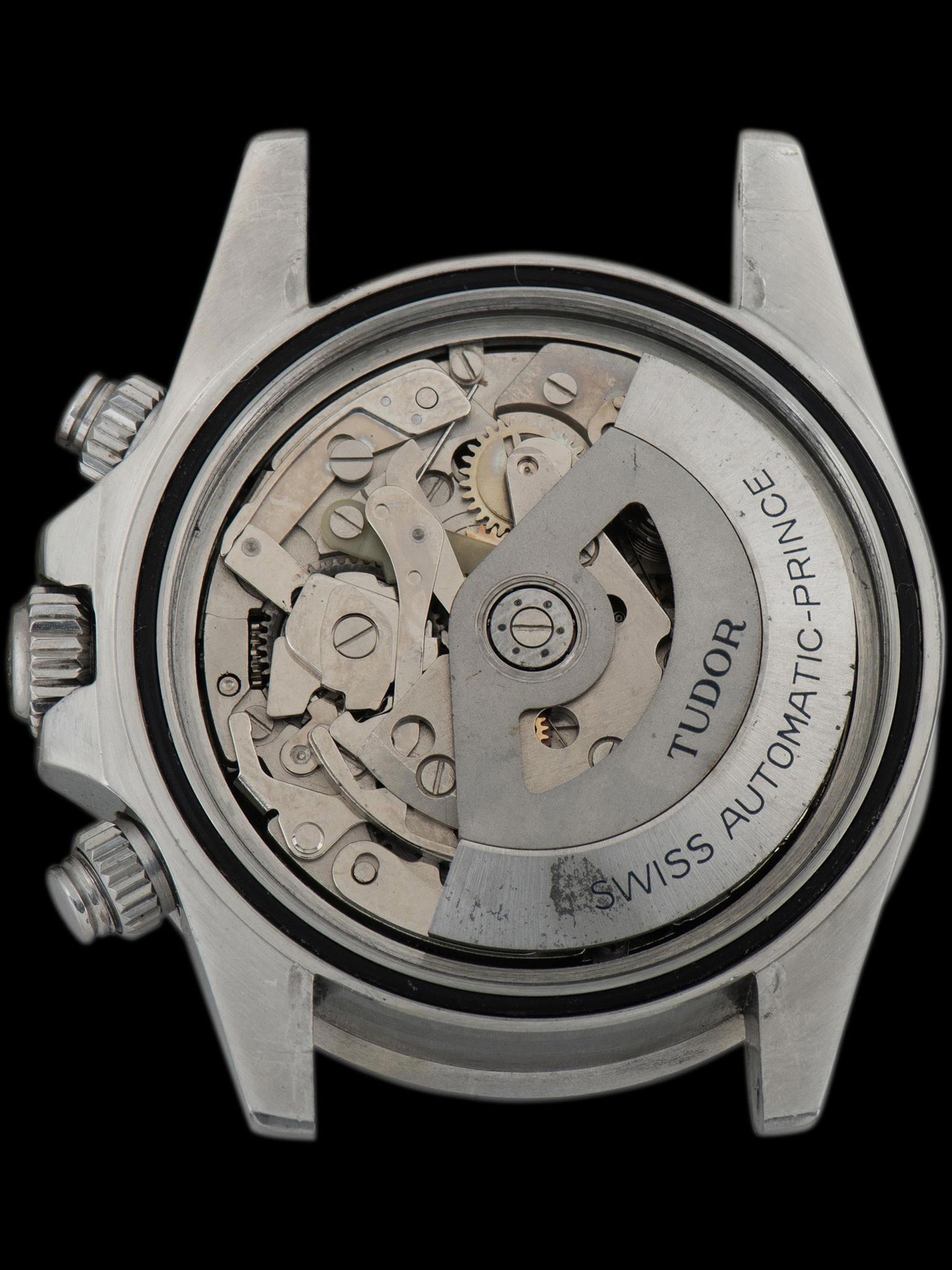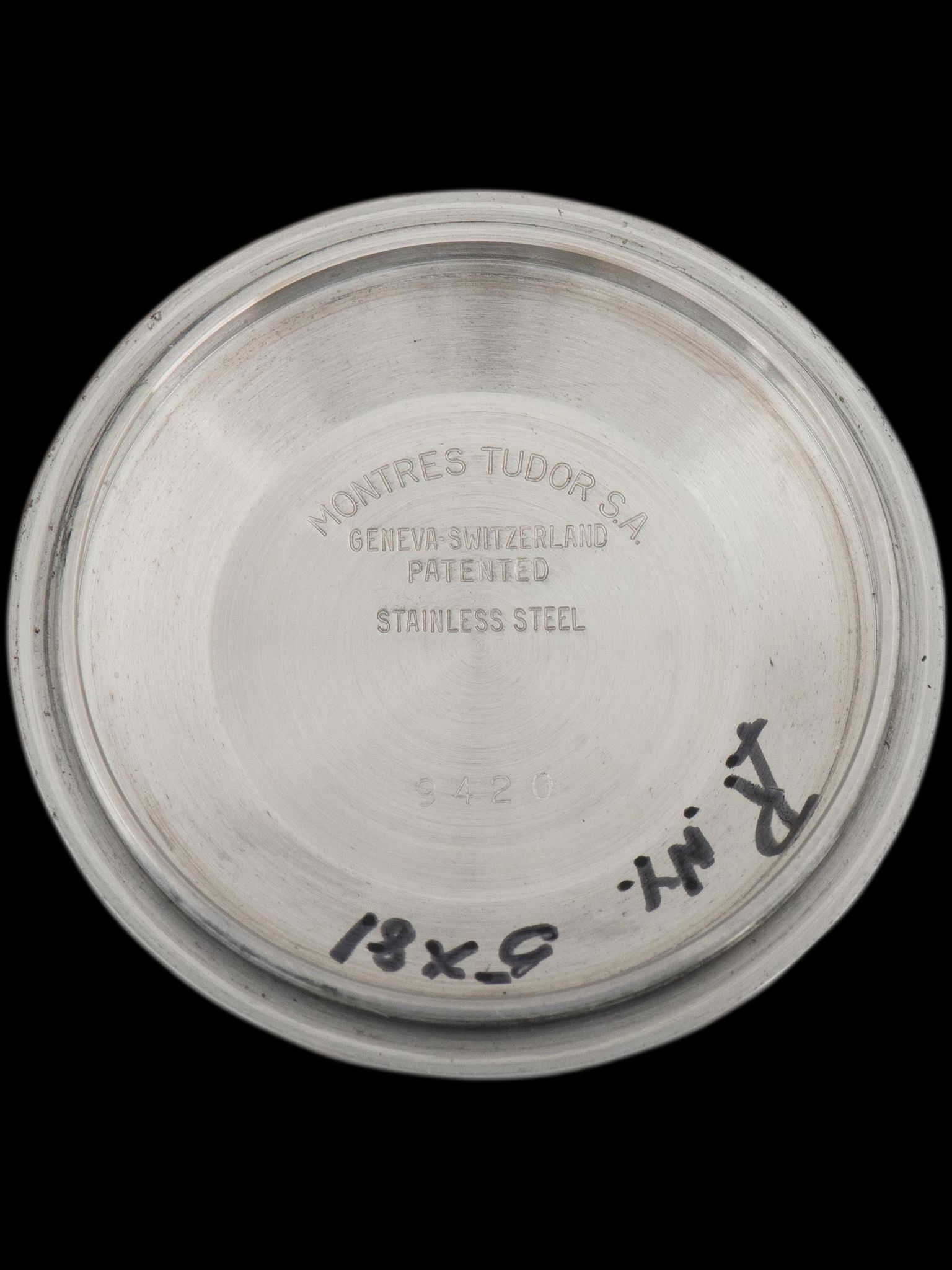 The large and well-preserved case retains full and even lugs that show light evidence of being previously polished, with minimal signs of use present. The fixed stainless steel “Units Per Hour” bezel is also in excellent condition, showing minor loss to the original black enamel with no notable wear present. The case retains its original Rolex trip-lock crown and screw-down pushers. The case back retains all of its factory markings in crisp condition. The Tudor 9315 Oyster bracelet with correct 589 end pieces was sourced with the watch and is era-correct. The bracelet retains 12 links that show minor stretch and will fit up to a 7.5-inch wrist.
