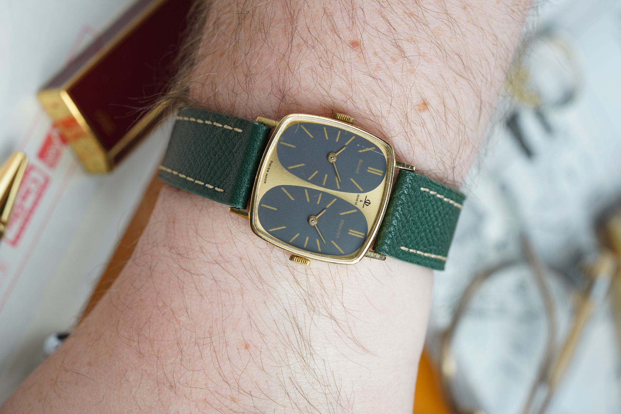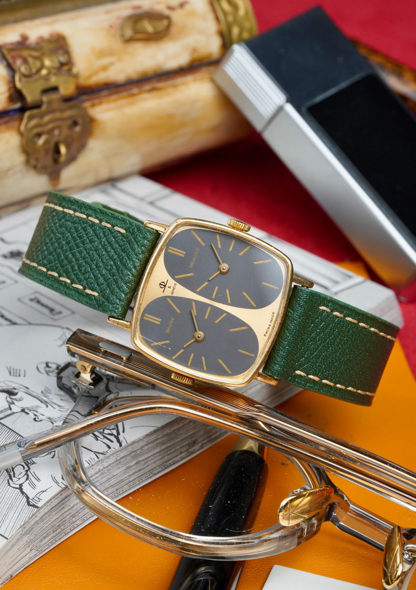A sweet 1980s Baume et Mercier Dual Time in 18K yellow gold powered by two individual manual wind calibers inside a 33mm case.