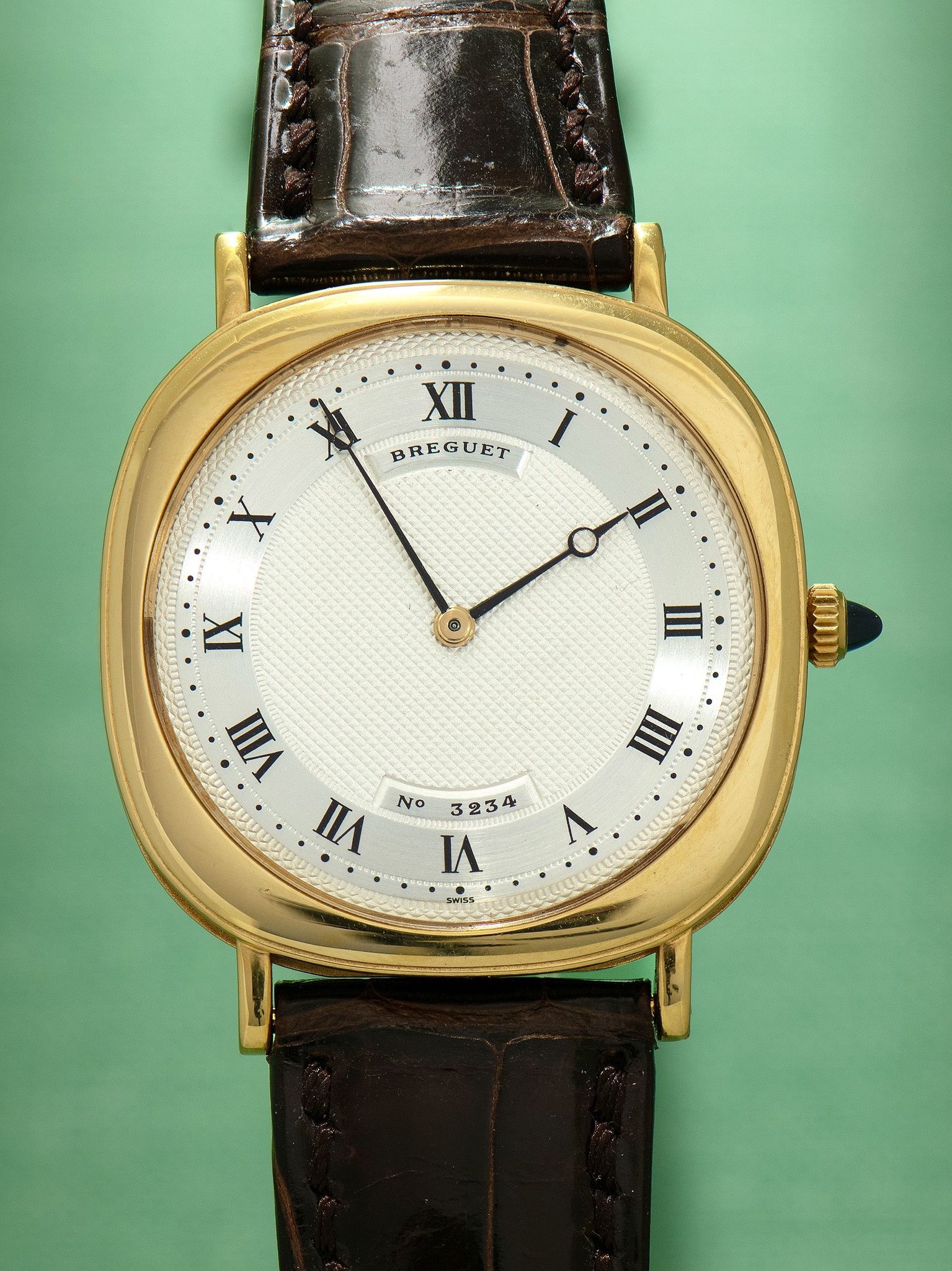 1980s Breguet Classique Cushion 18K YG (Ref. 3560BA) Silver Guilloche Dial