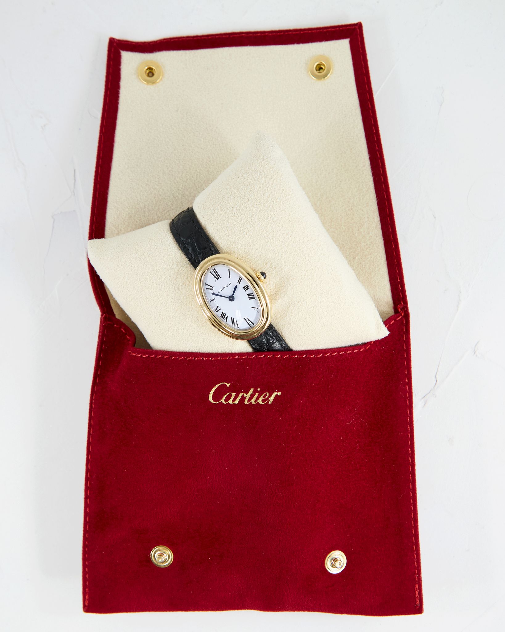 Cartier - Paris Dial Cartier Baignoire 78094 in Yellow Gold with Deployant Clasp and Cartier Pouch