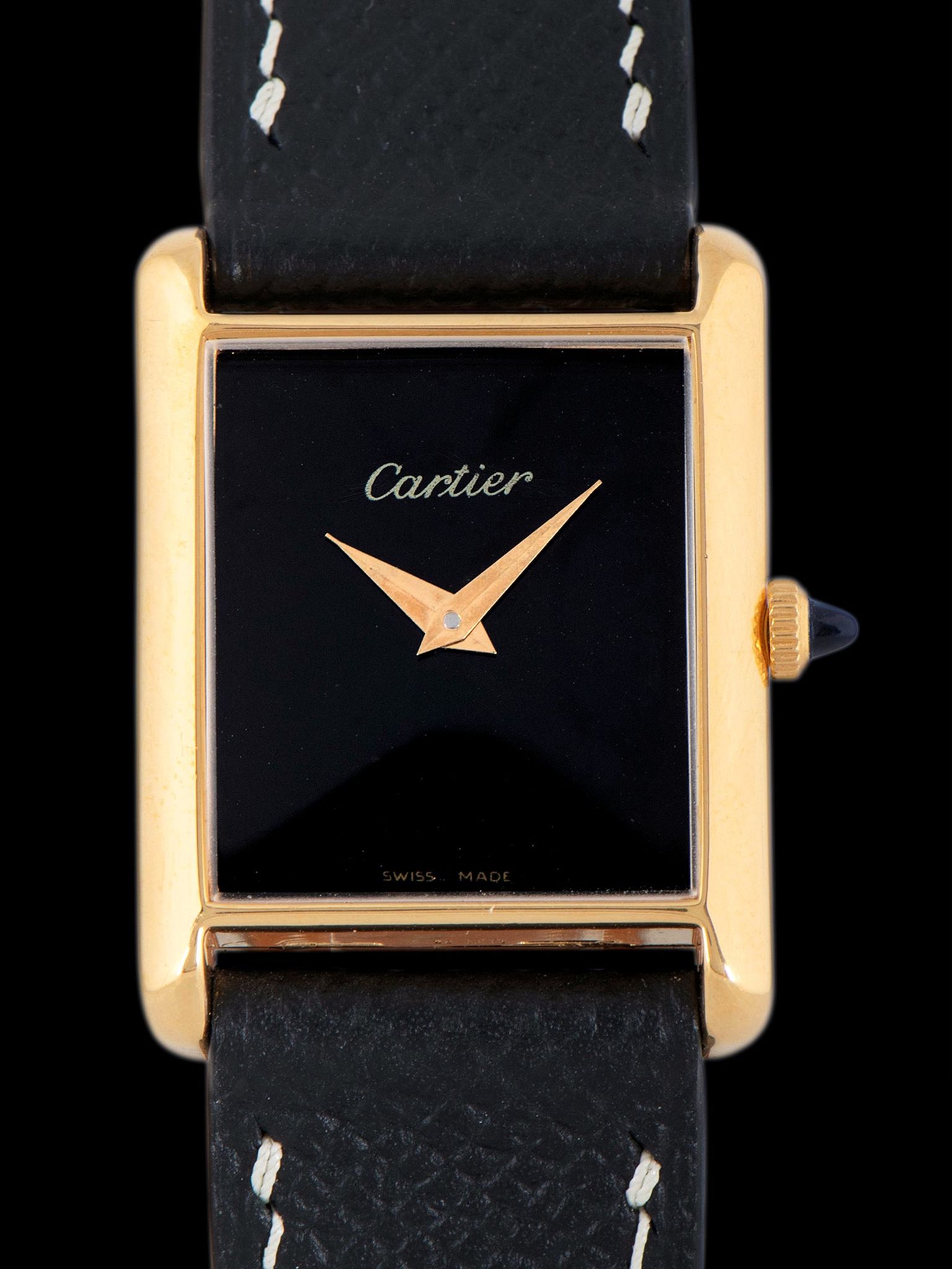 1980s Cartier Tank Manual Wind '18K Gold-Plated' Black Dial