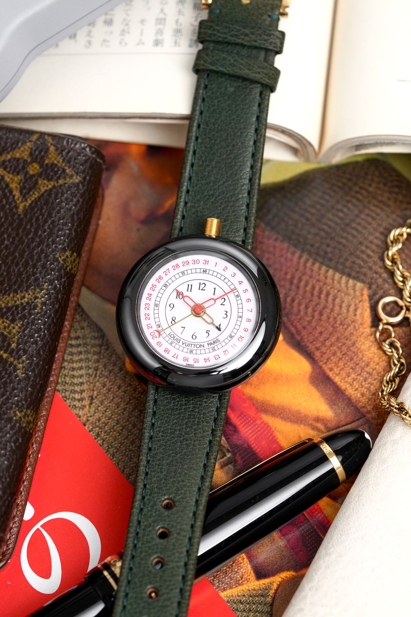 An elusive and funky 1980s Louis Vuitton Monterey II, the first wristwatch from the Maison, in a 37mm black ceramic case, a complete full set with box, papers, Louis Vuitton strap and buckle powered by an IWC quartz caliber.
