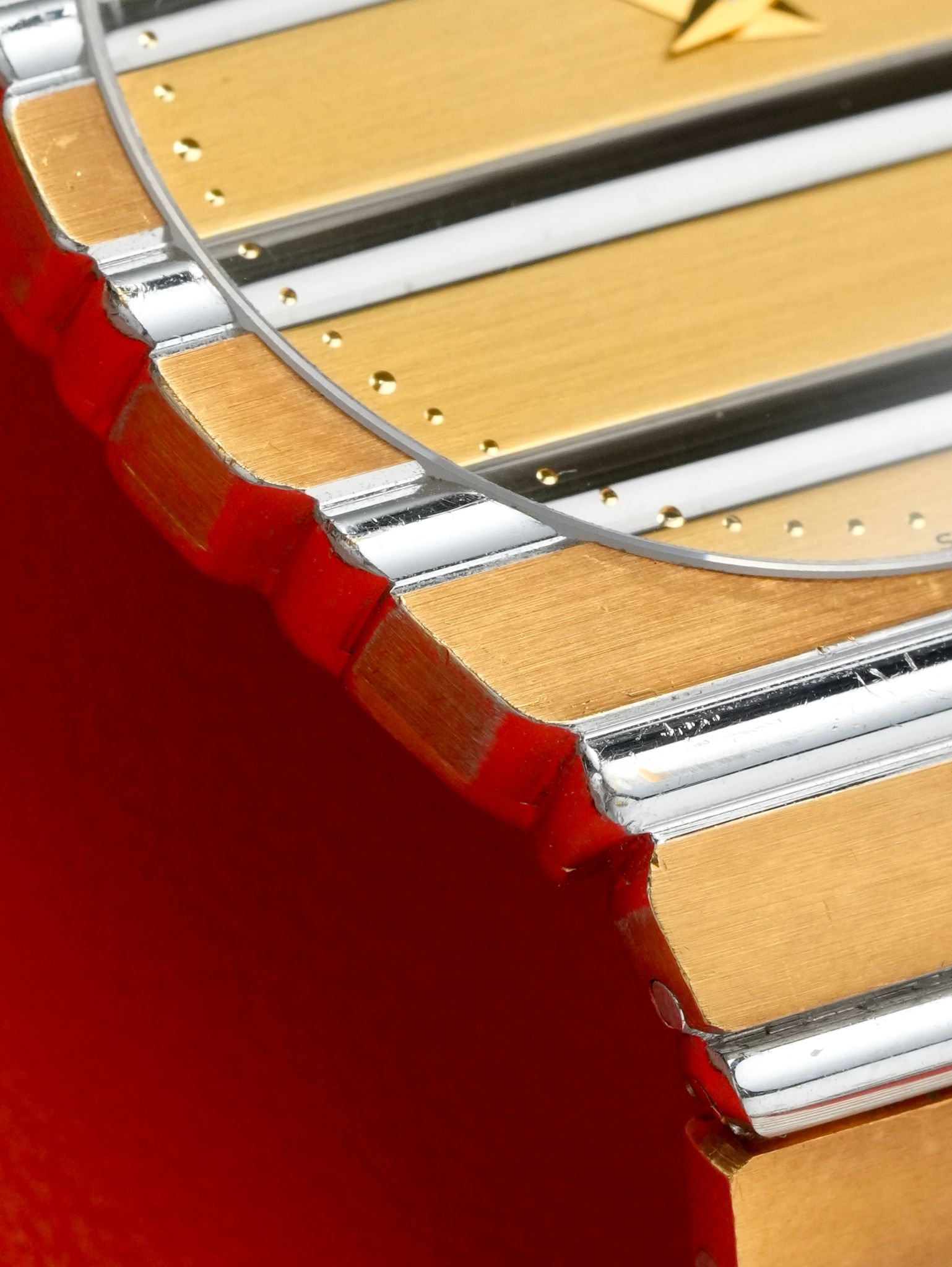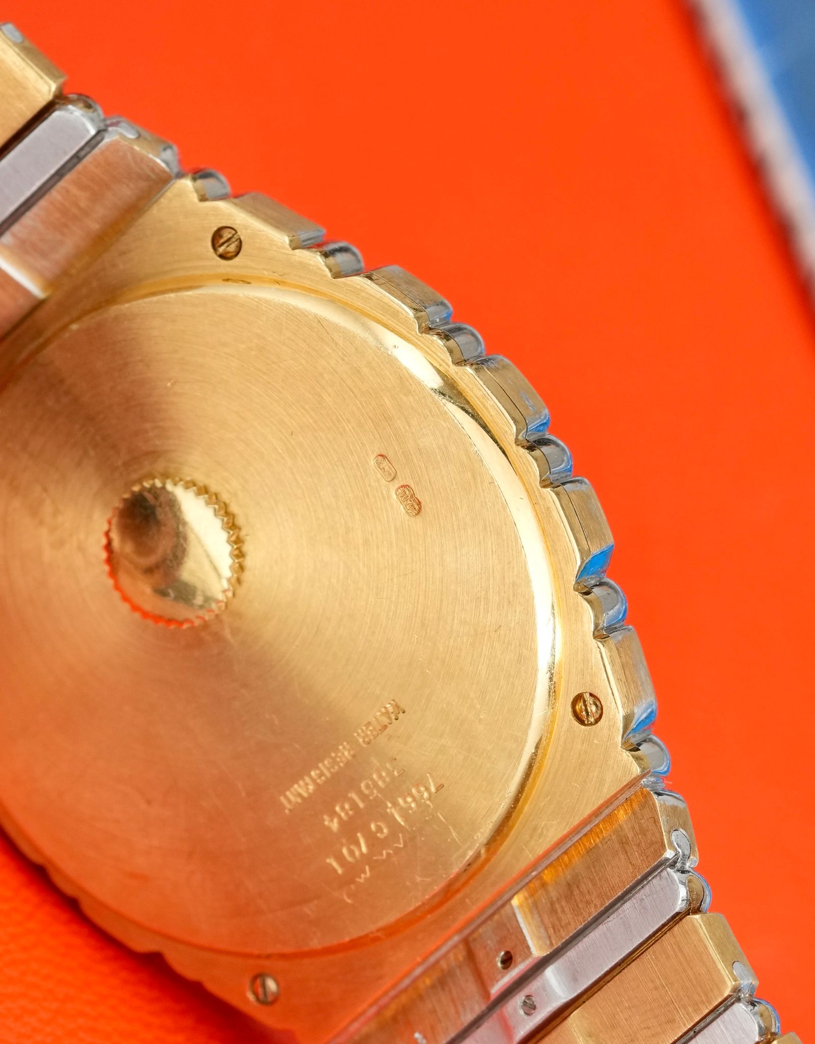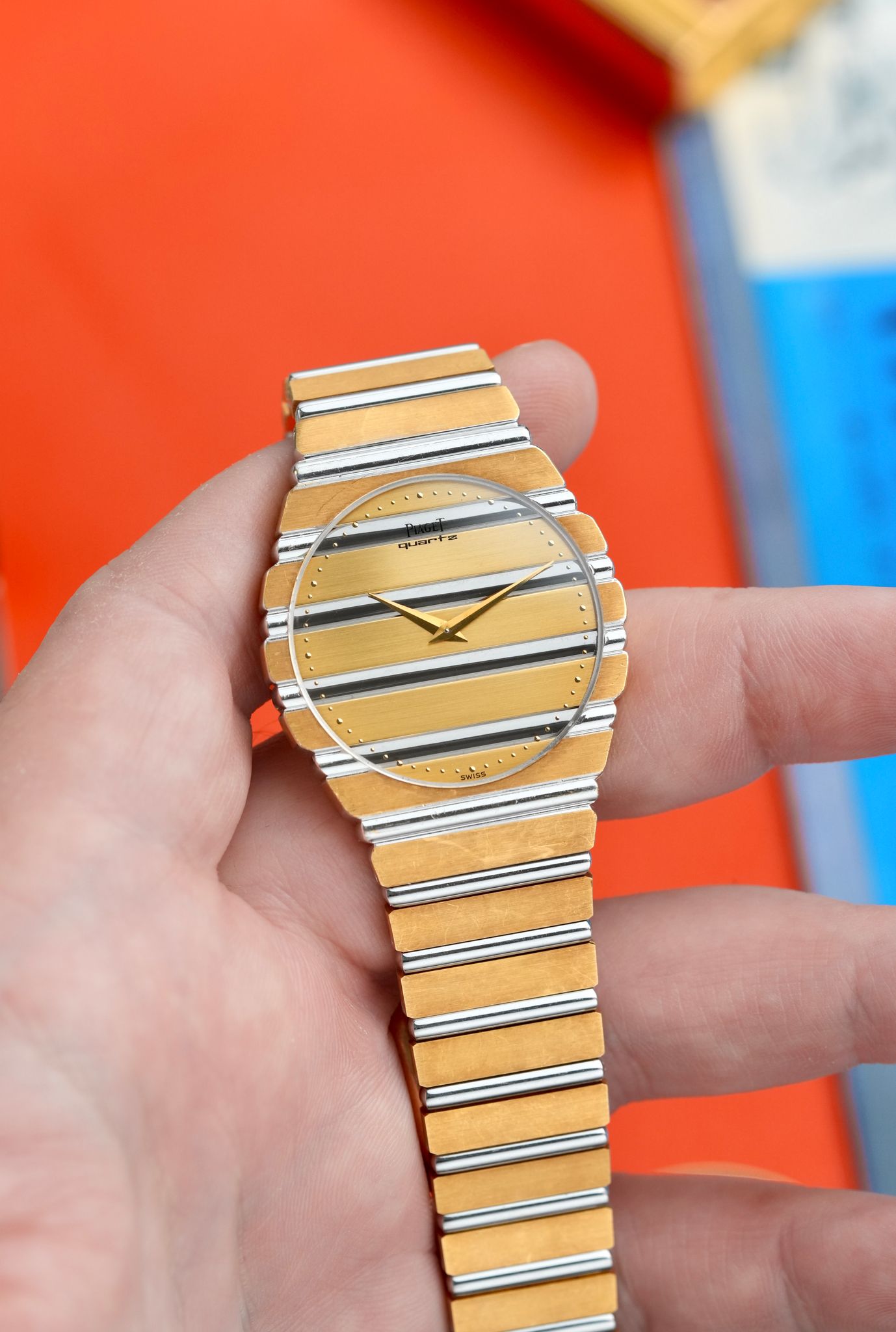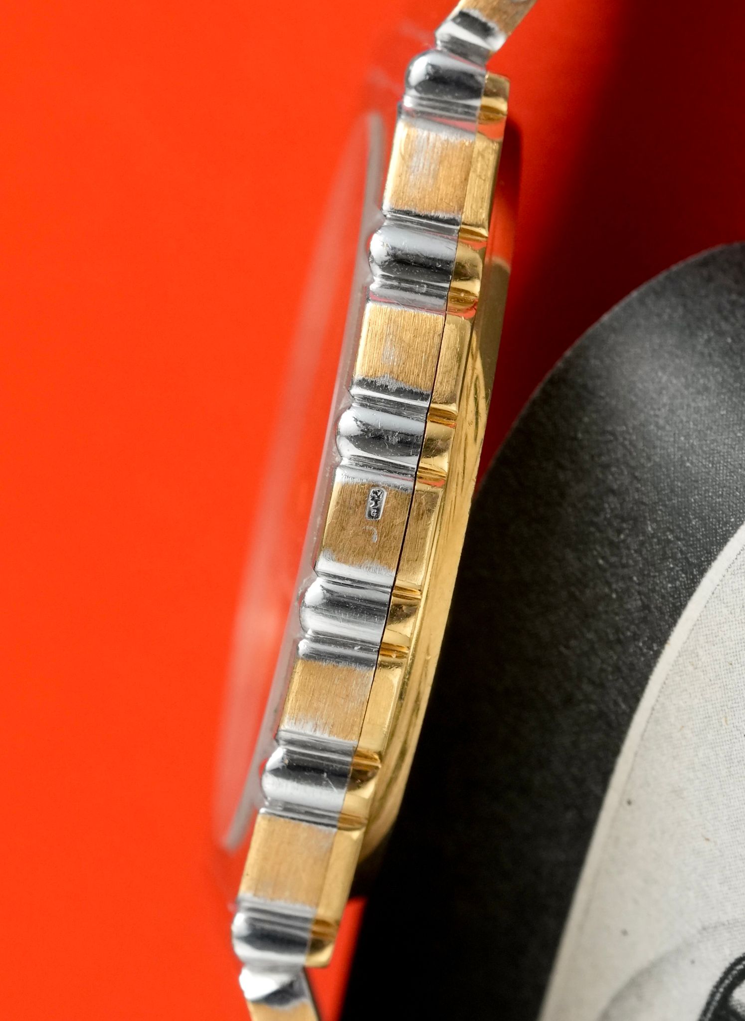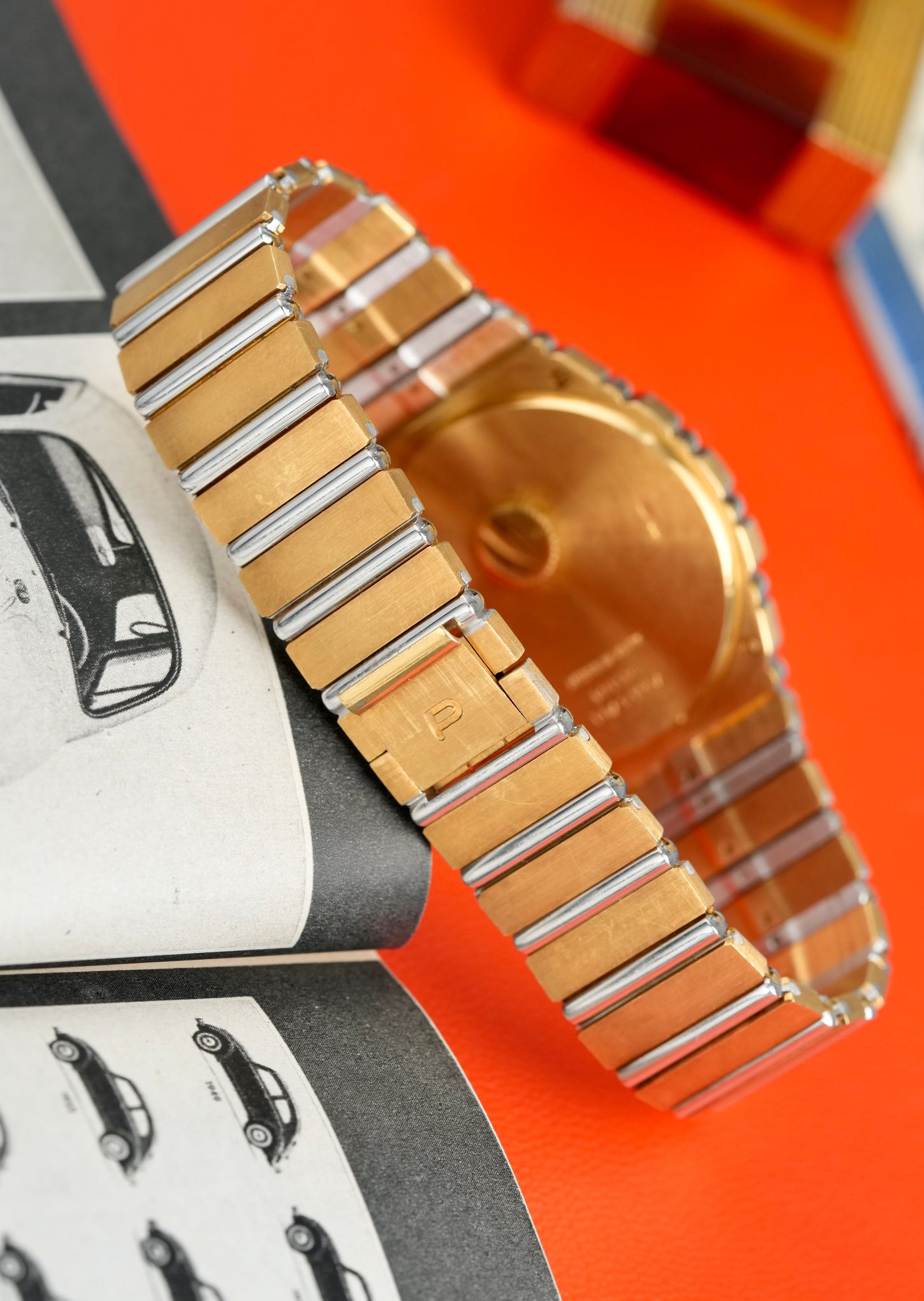 An outstanding and rare iteration of the classic, a Plaget Polo ref. 7661 "Jumbo Duex Or" from the 1980s in 18K yellow and white gold, one of my favorite takes on bi-metal design, this example in unpolished condition and exactly how one wants to find a Polo, with sharp angles present and brushing in tact.